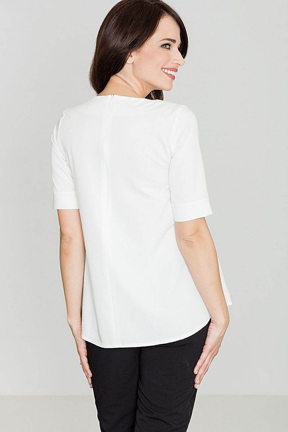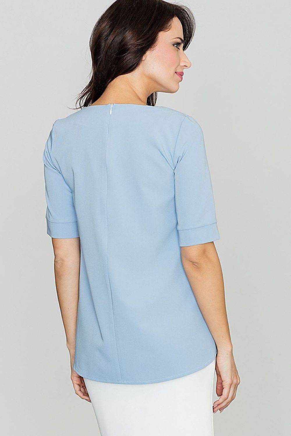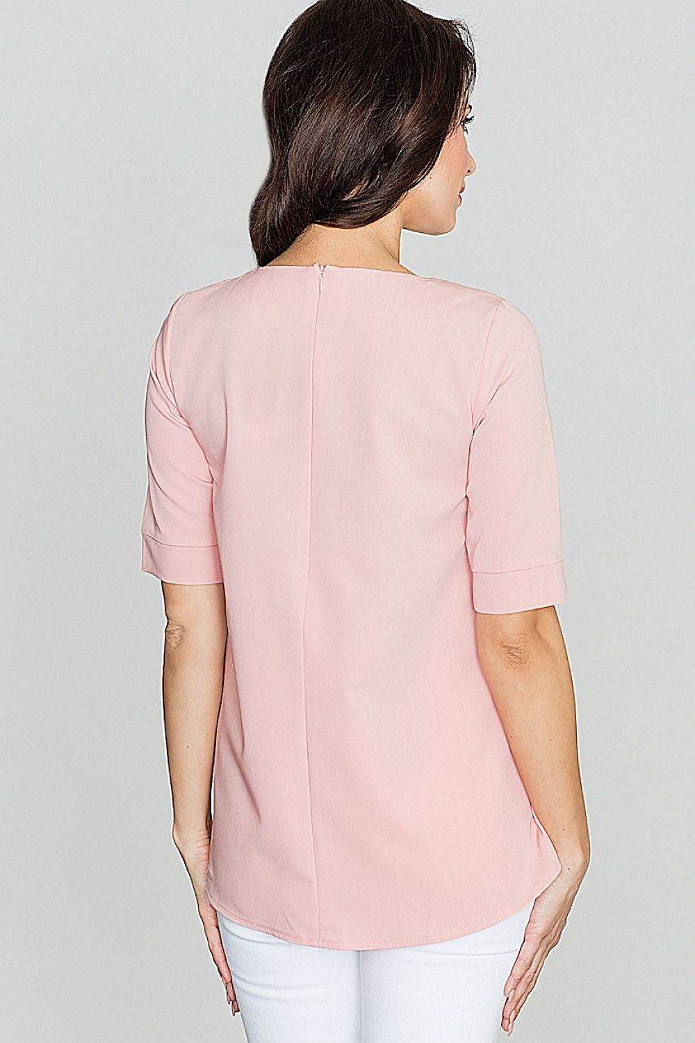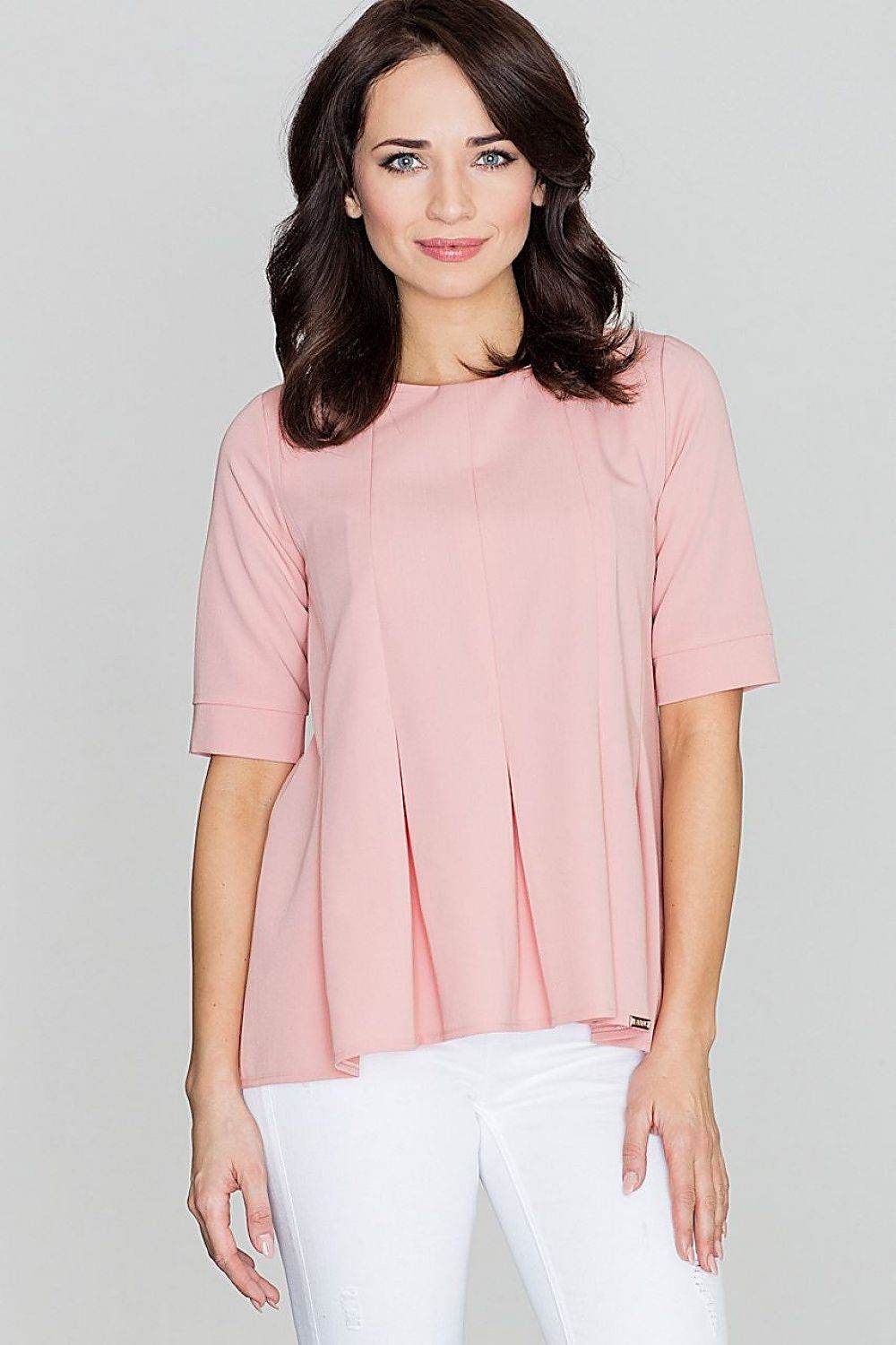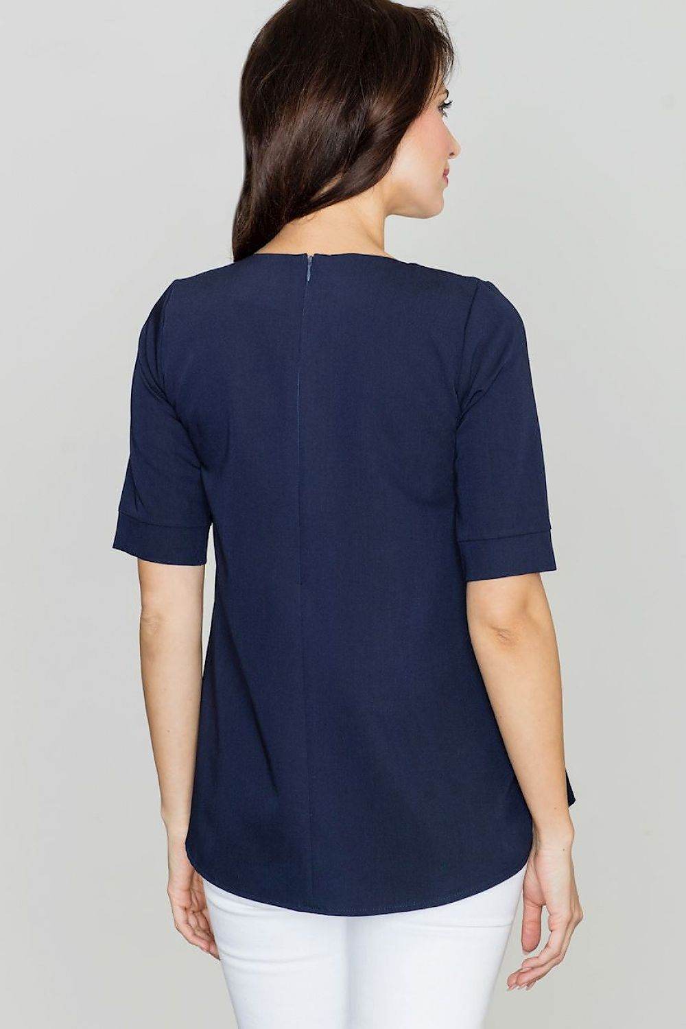 Blusa holgada con cuello redondo, pliegues delanteros y cierre de cremallera en la espalda