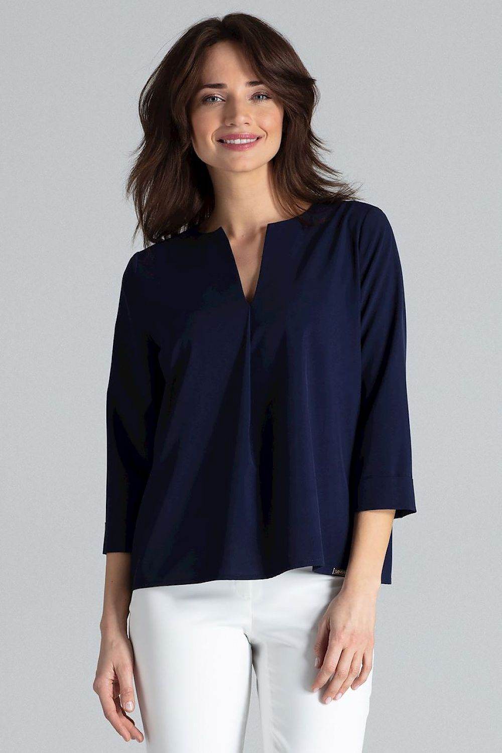 Blusa sencilla y holgada con mangas largas terminadas en puño. Escote Serek. Pliegues en contraste en la parte delantera. Elastano... Leer más...