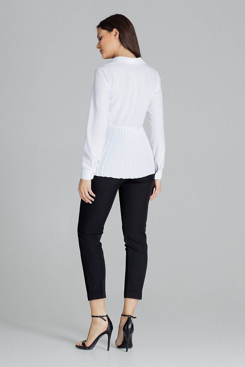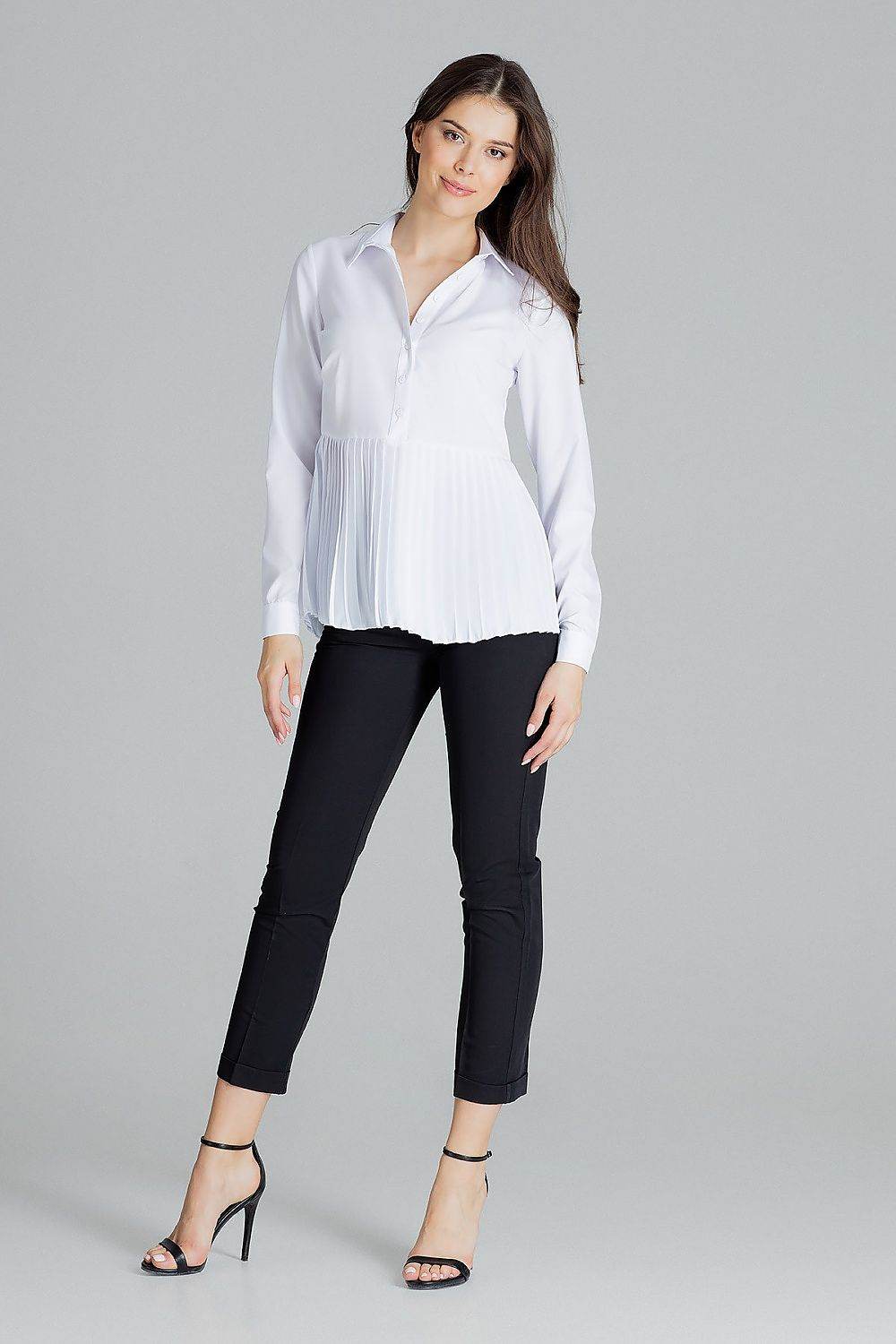Blusa blanca elegante con mangas con puños y media cremallera con botones