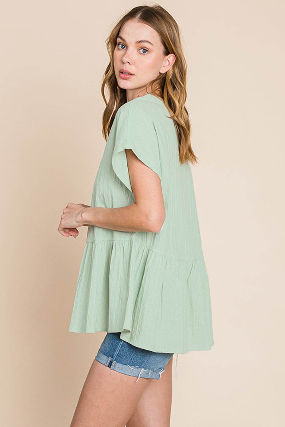Blusa de manga corta con muescas y fruncido de Cotton Bleu by Nu Lab