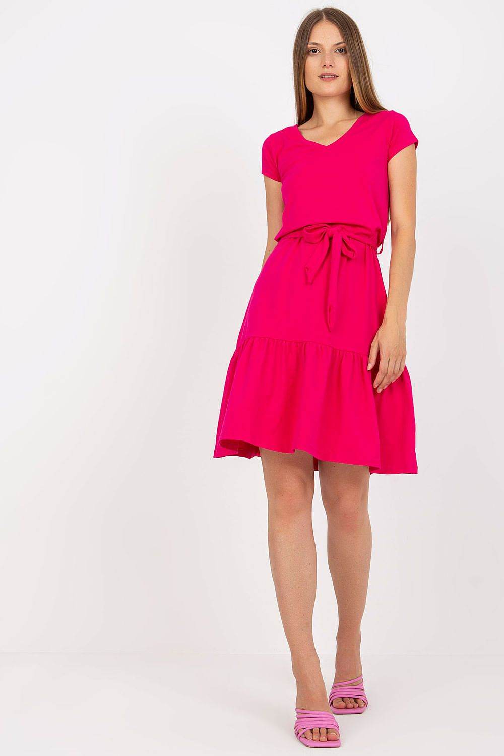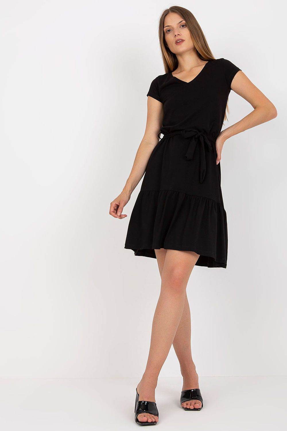 Vestido de verano de corte ligeramente evasé y manga corta. Tiene escote en V, volante en el bajo y se... Leer más...