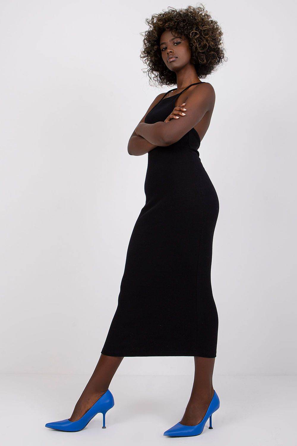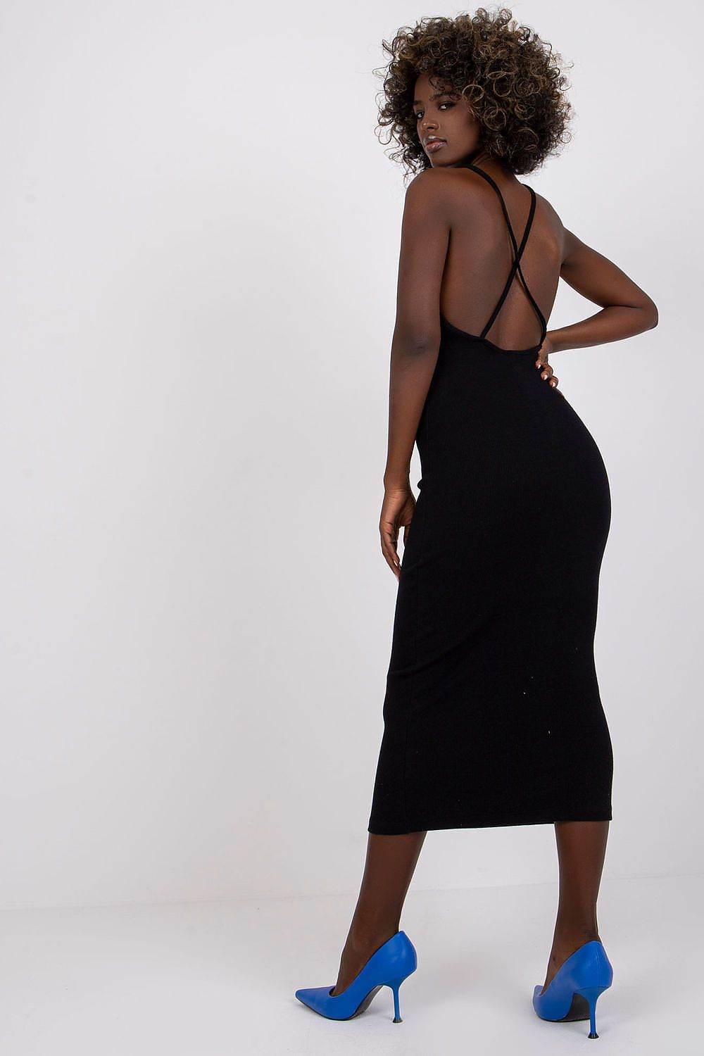 Vestido tubo midi de algodón acanalado con escote cuadrado