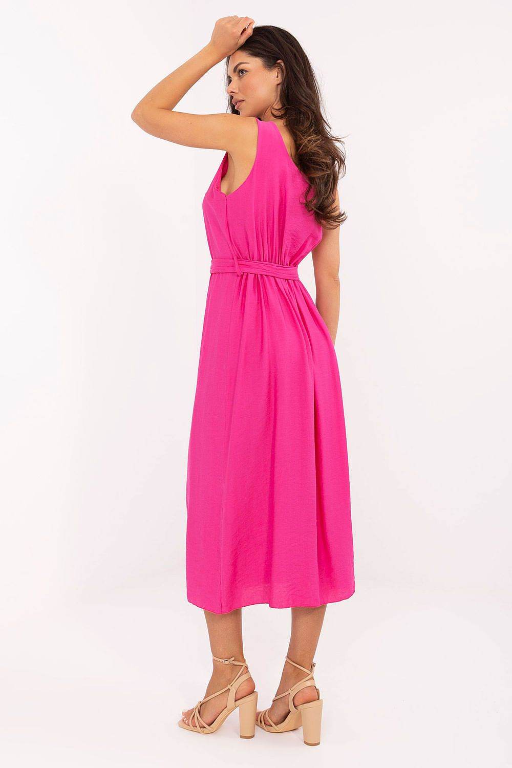 Vestido midi de verano acampanado con detalle de botones y lazo en la cintura
