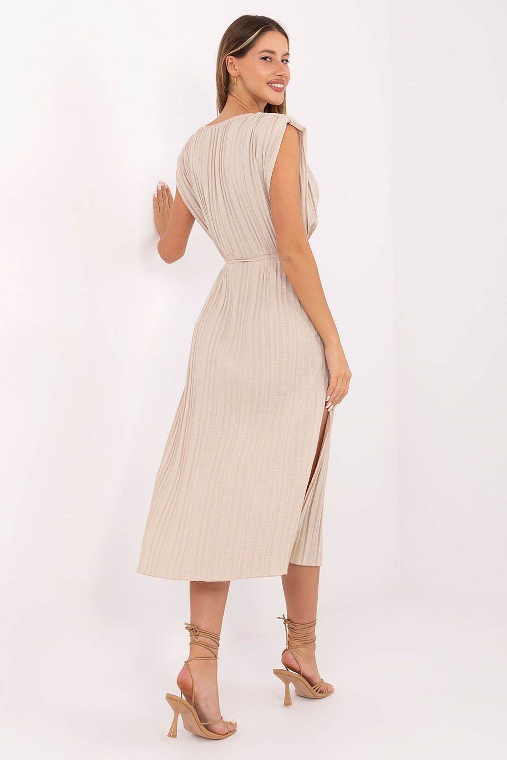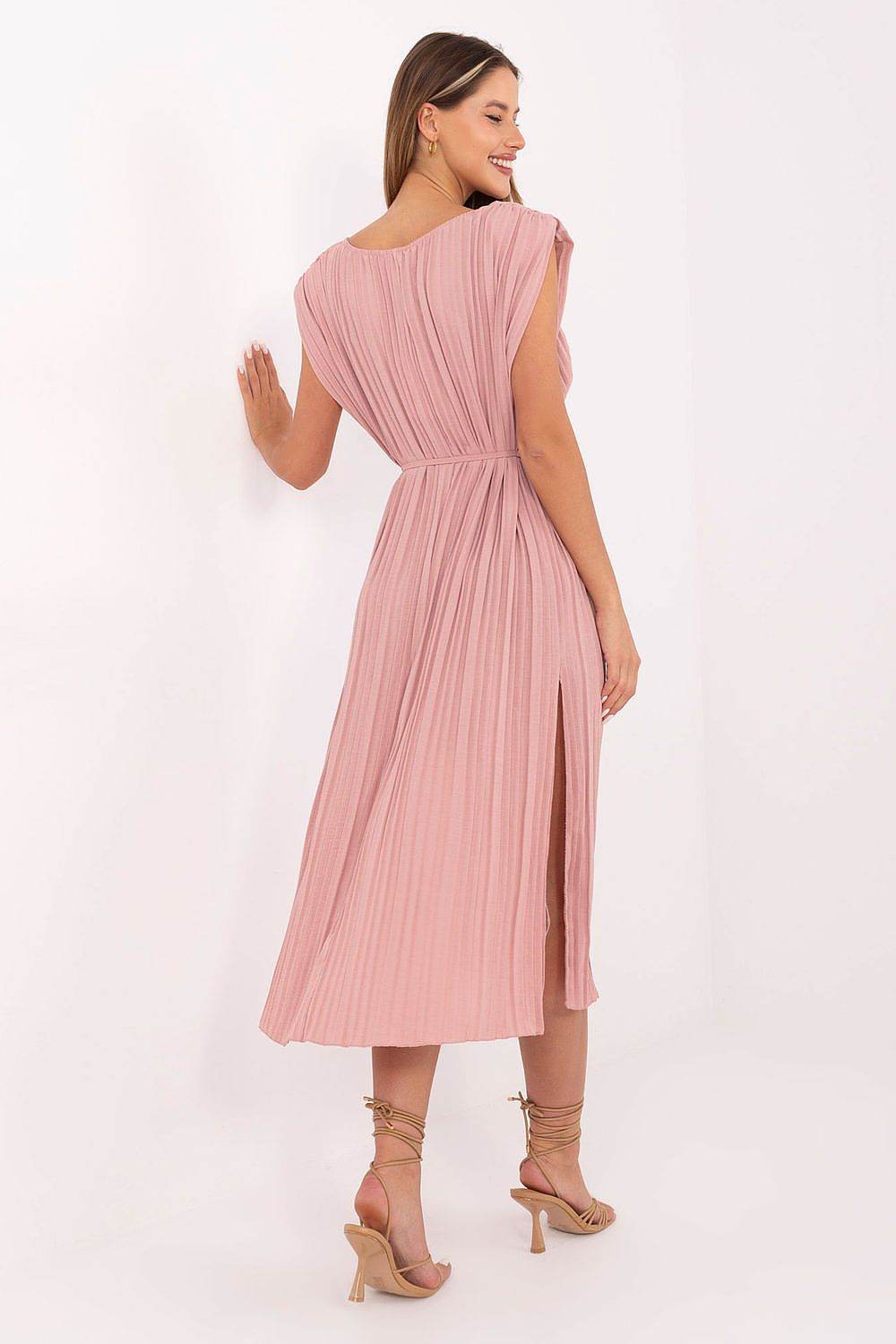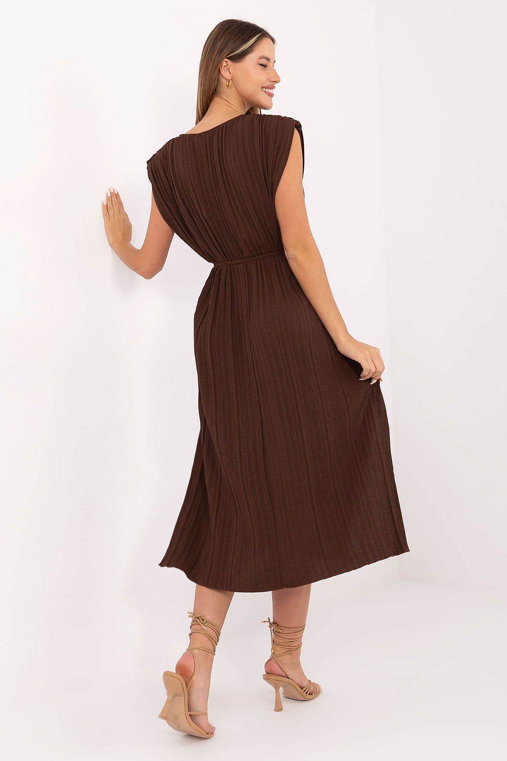 Vestido midi plisado de verano sin mangas con lazo en la cintura