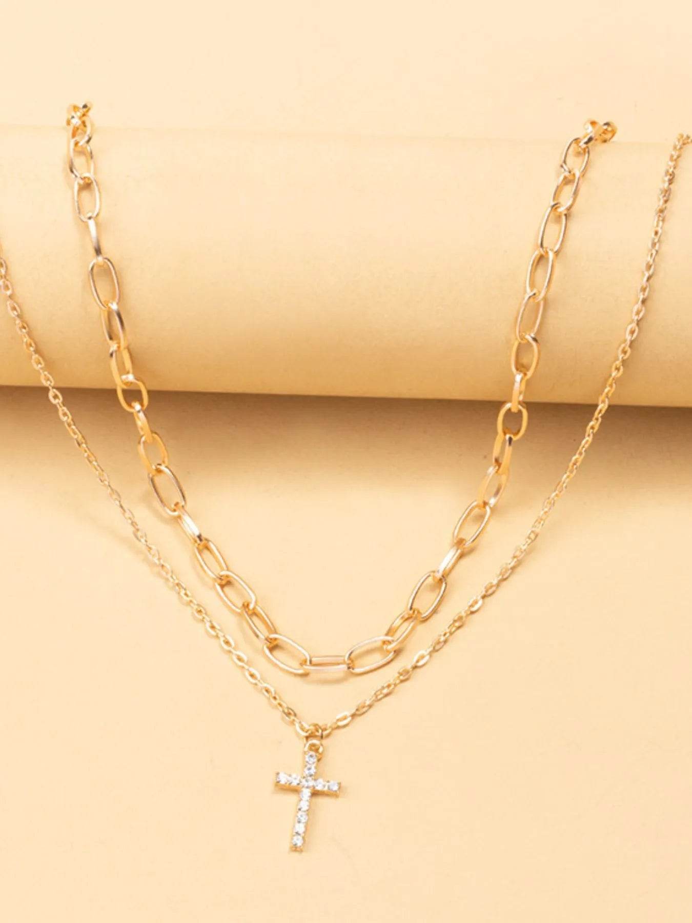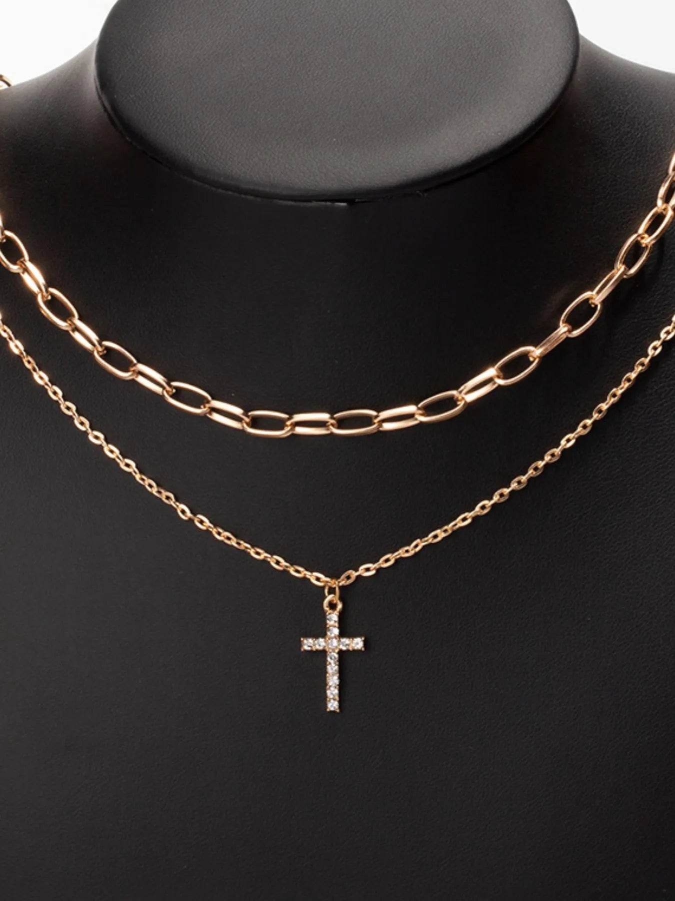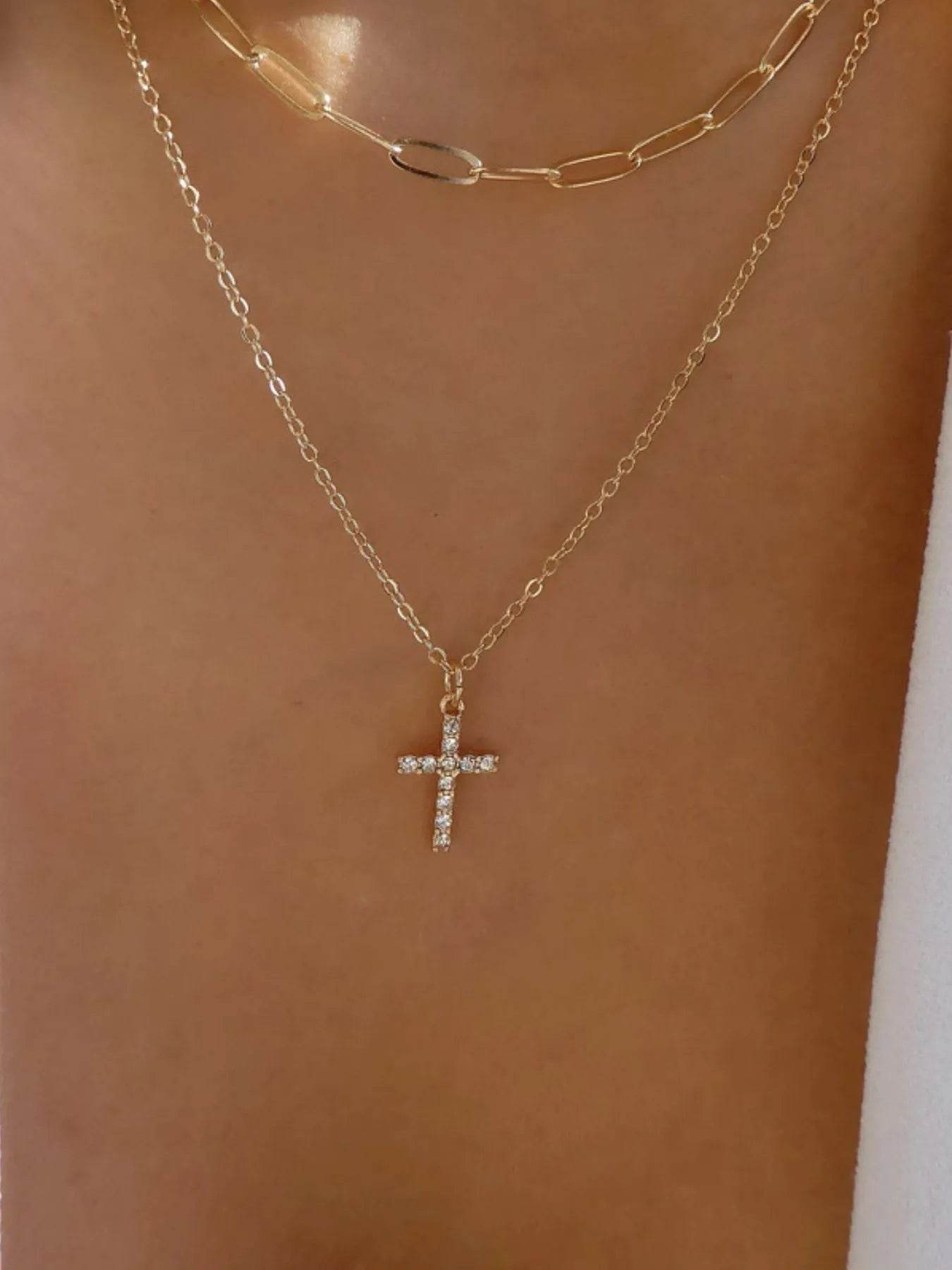 Collar con colgante de cruz de circonita con incrustaciones de doble capa