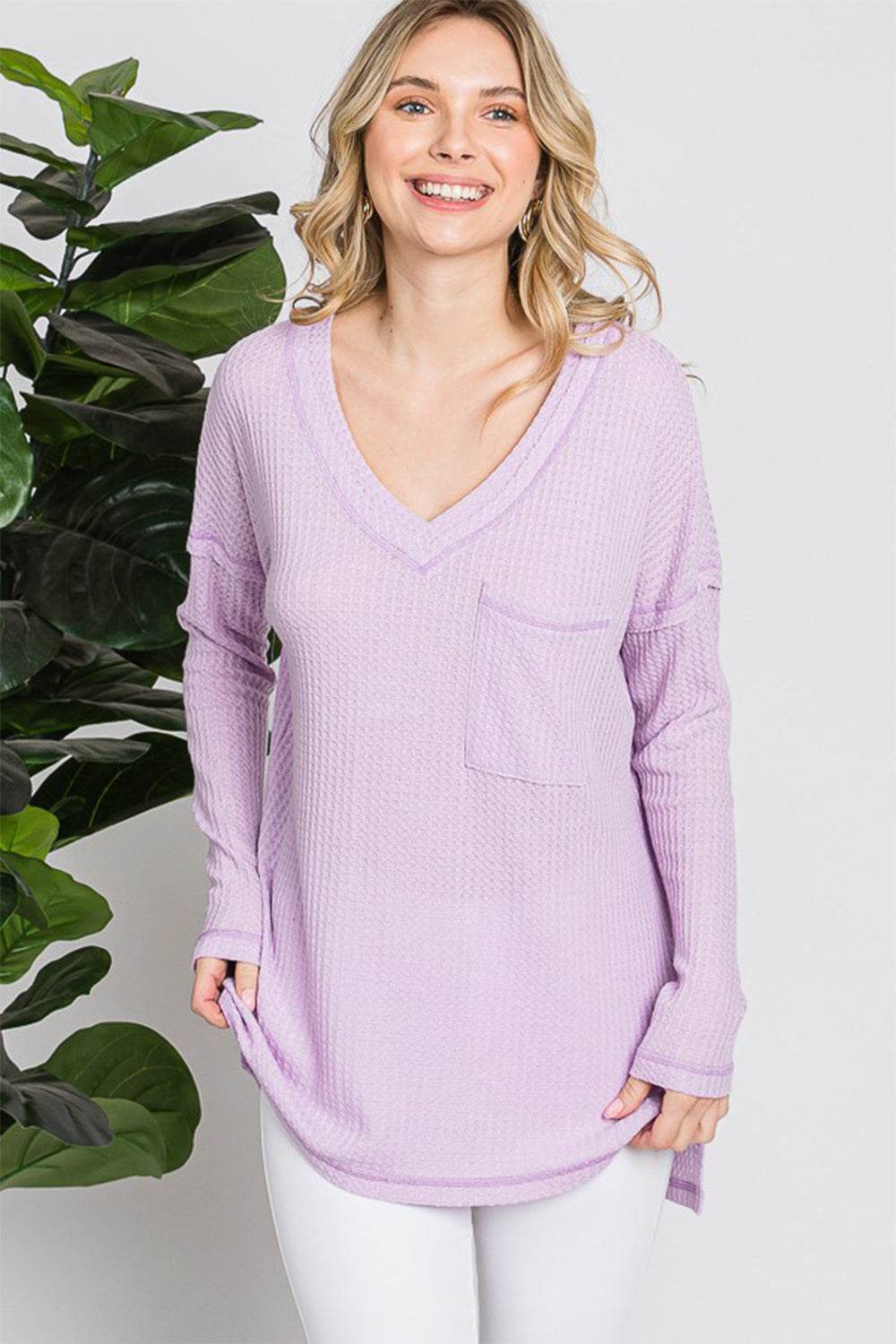 Camiseta de manga larga con cuello en V y tejido gofre Reborn J