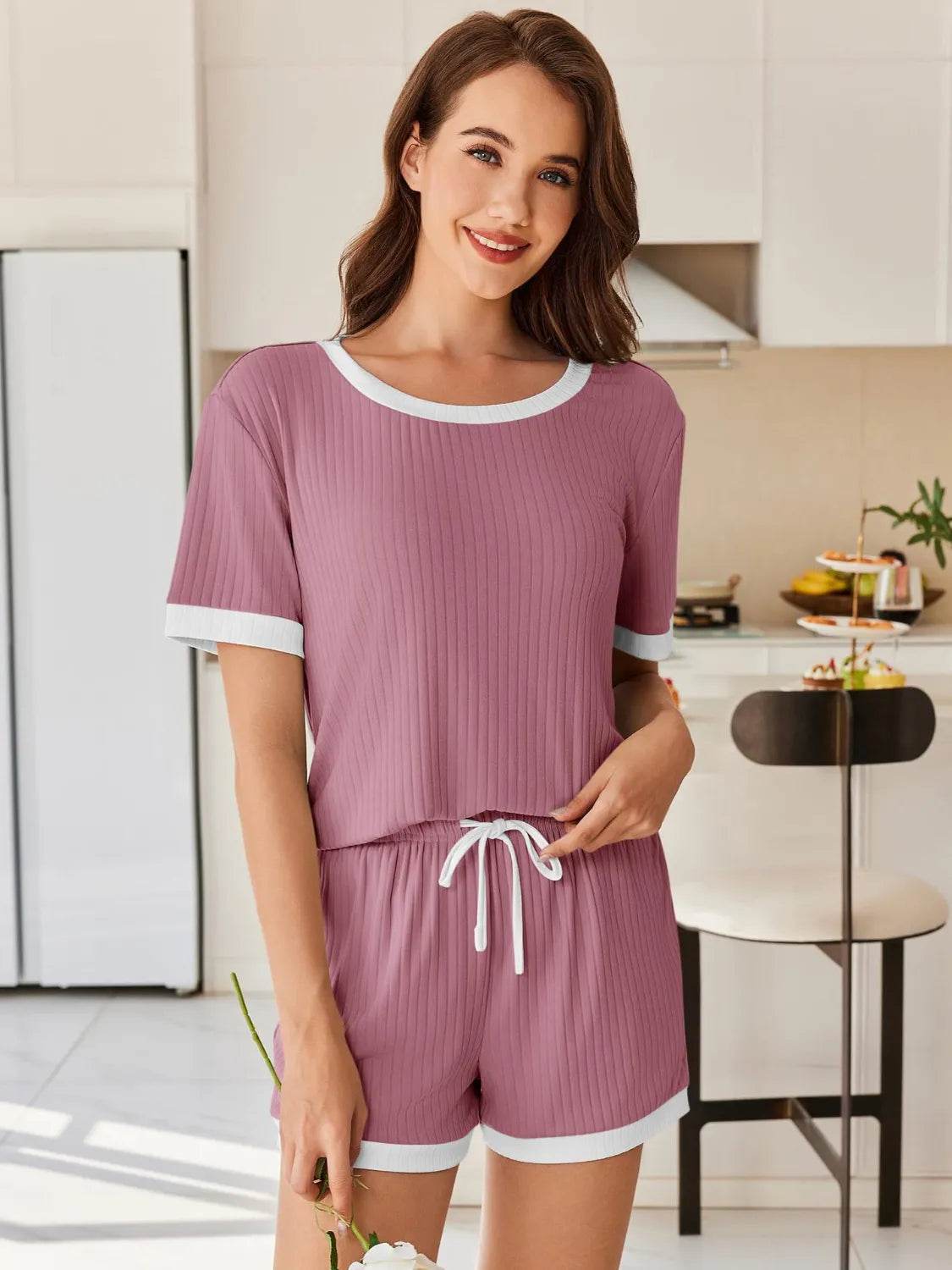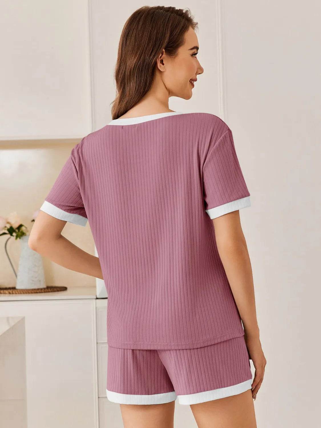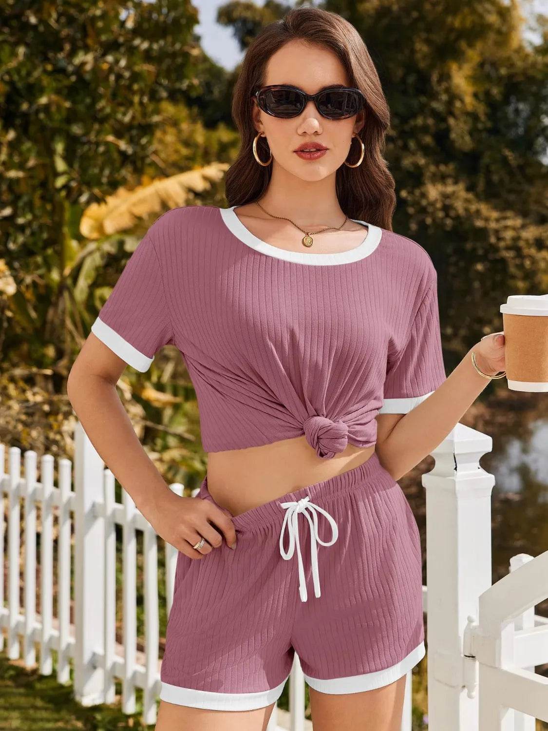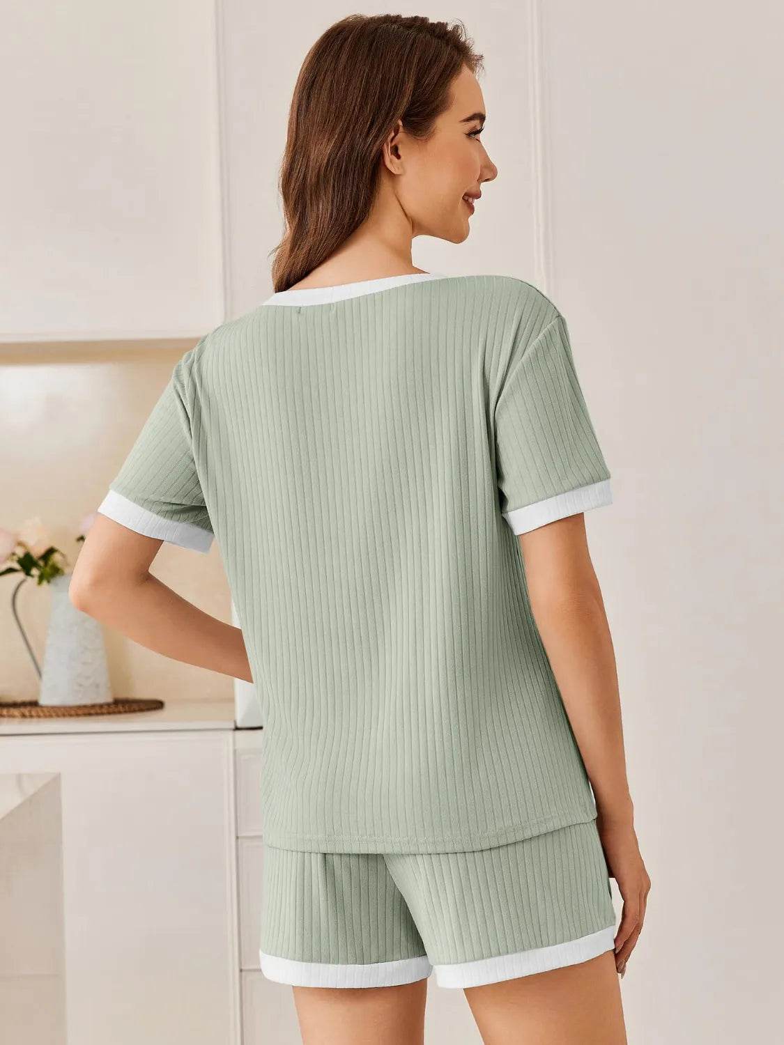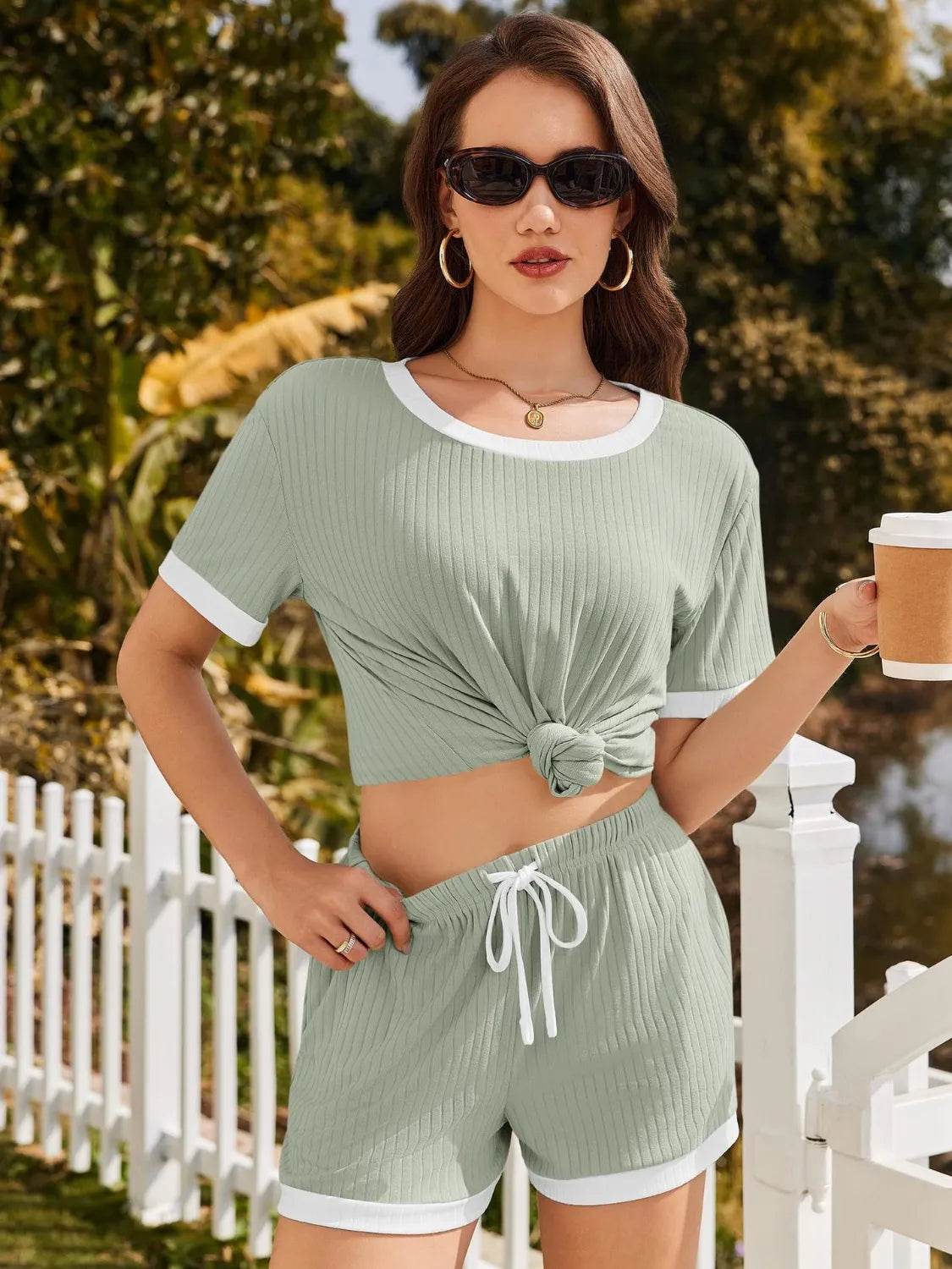 Conjunto de top y pantalones cortos de manga corta acanalados