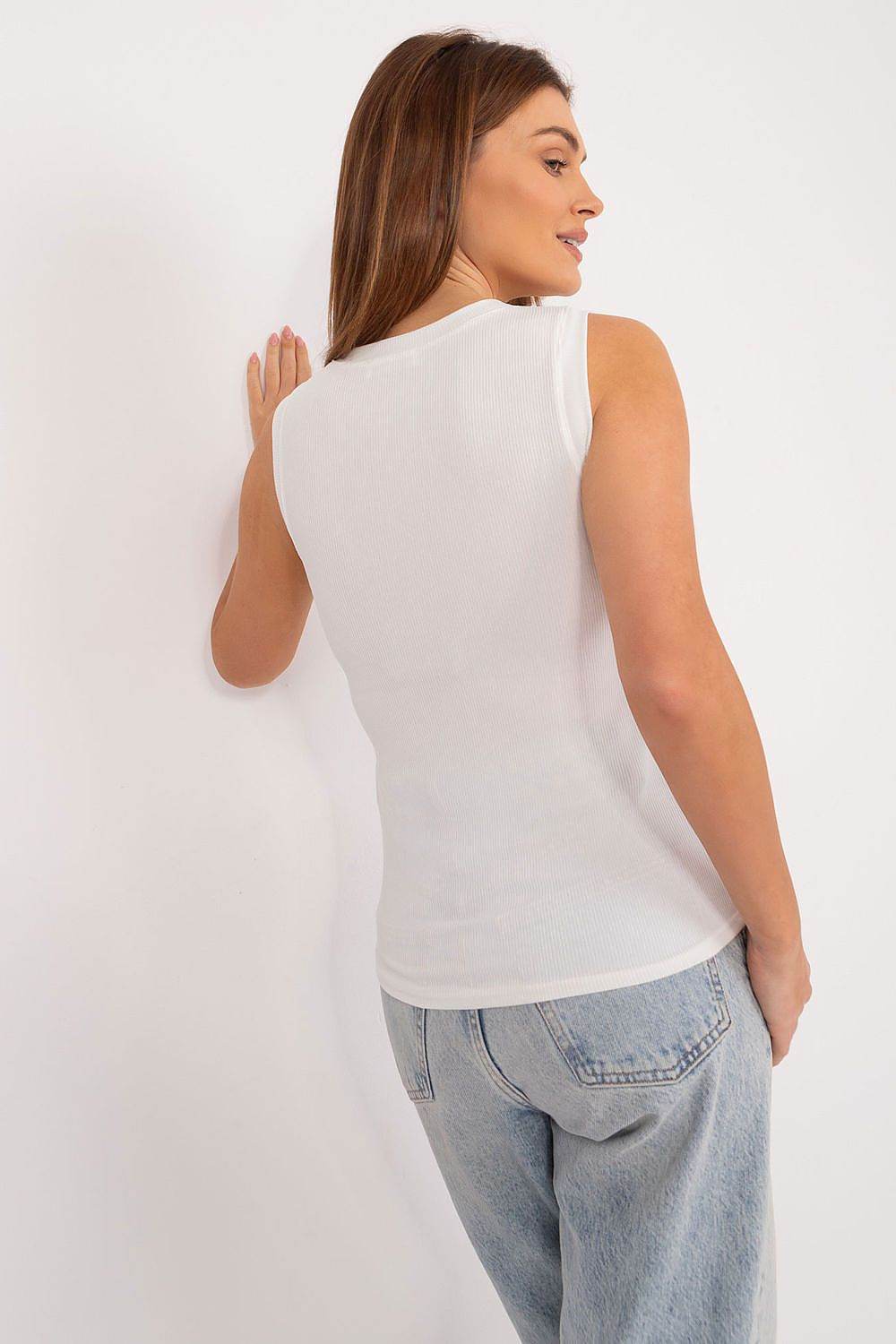 Top de canalé sin mangas con flor de tela – Elegancia informal