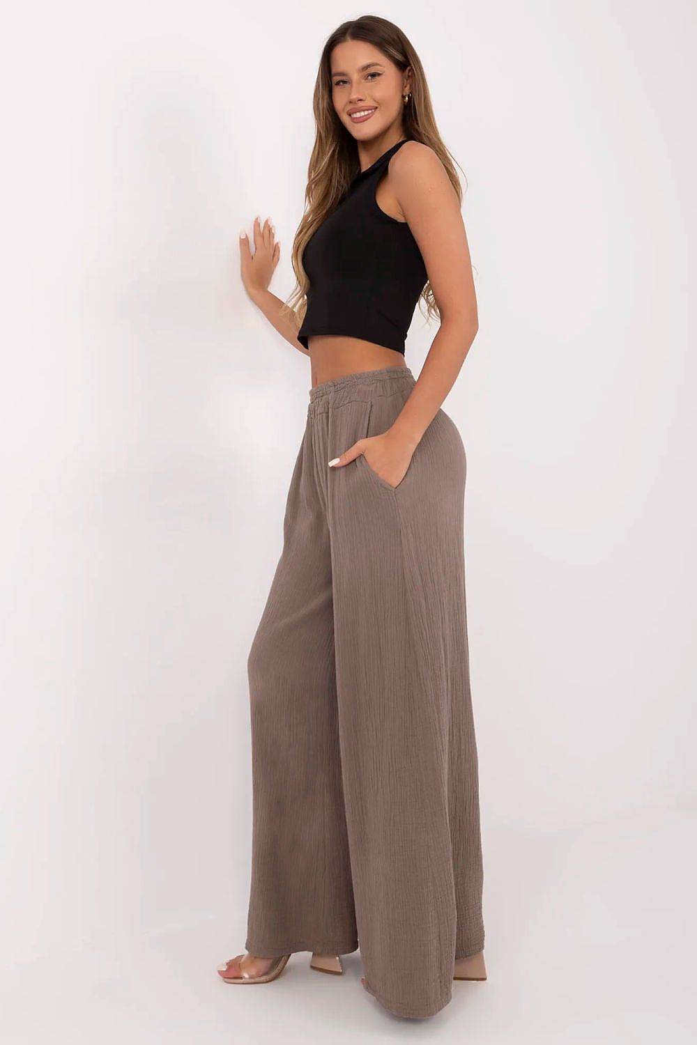 Pantalones Palazzo de Muselina de Algodón Ligero: Pantalones de Pierna Ancha, Cintura Alta y Bolsillos