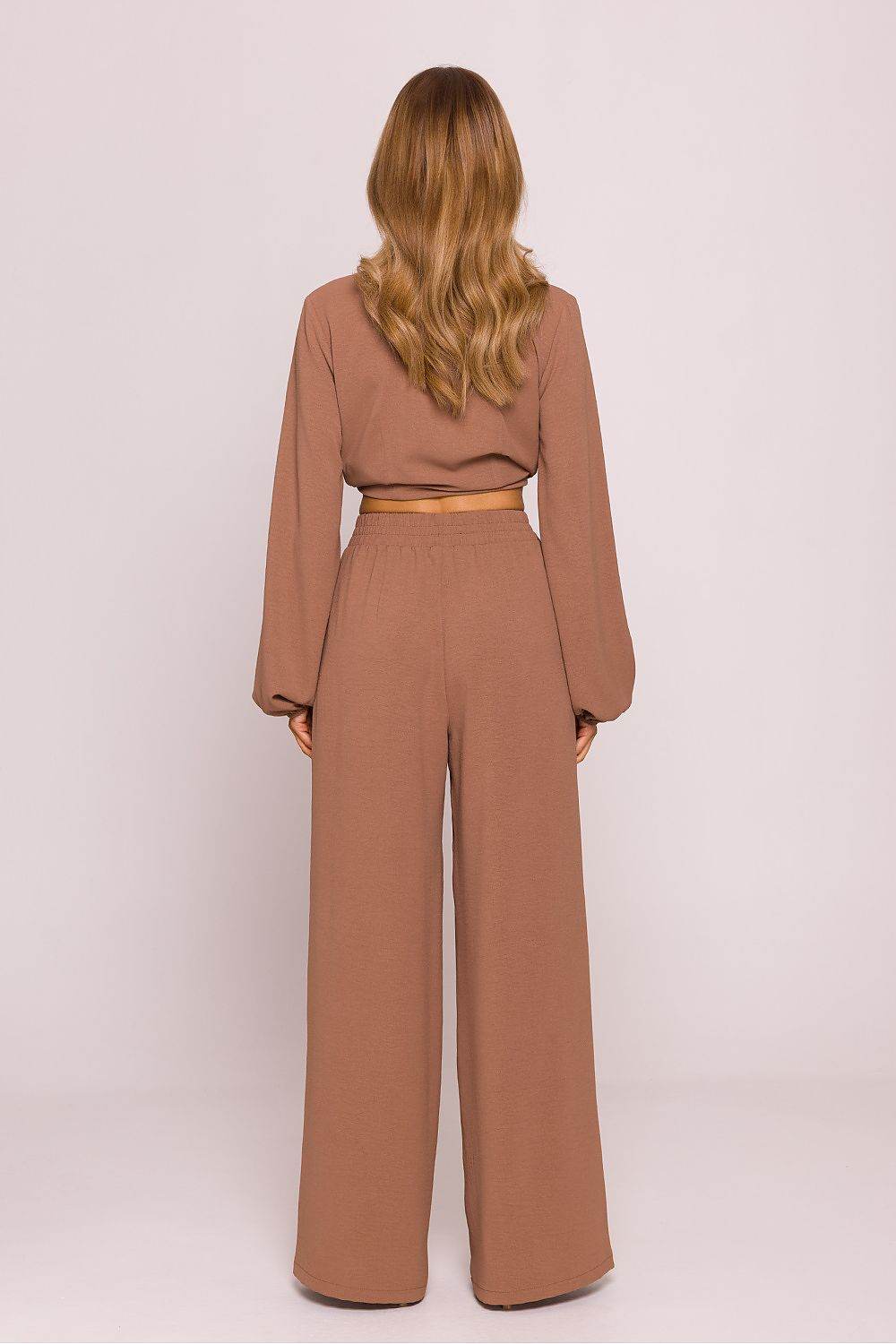 Pantalones elegantes y cómodos confeccionados en tejido ligero con una distintiva textura de crepé y acabado mate. Su corte holgado... Leer más...