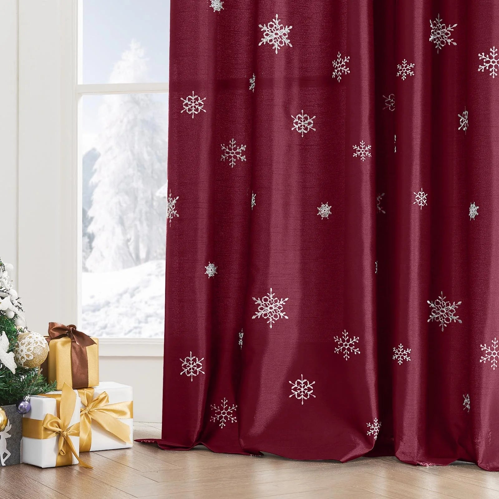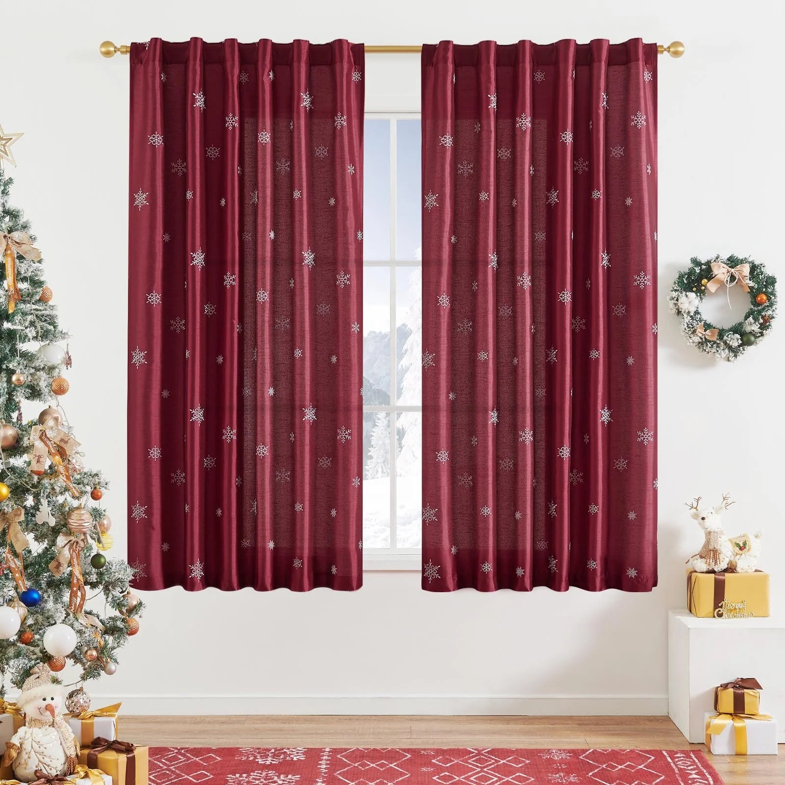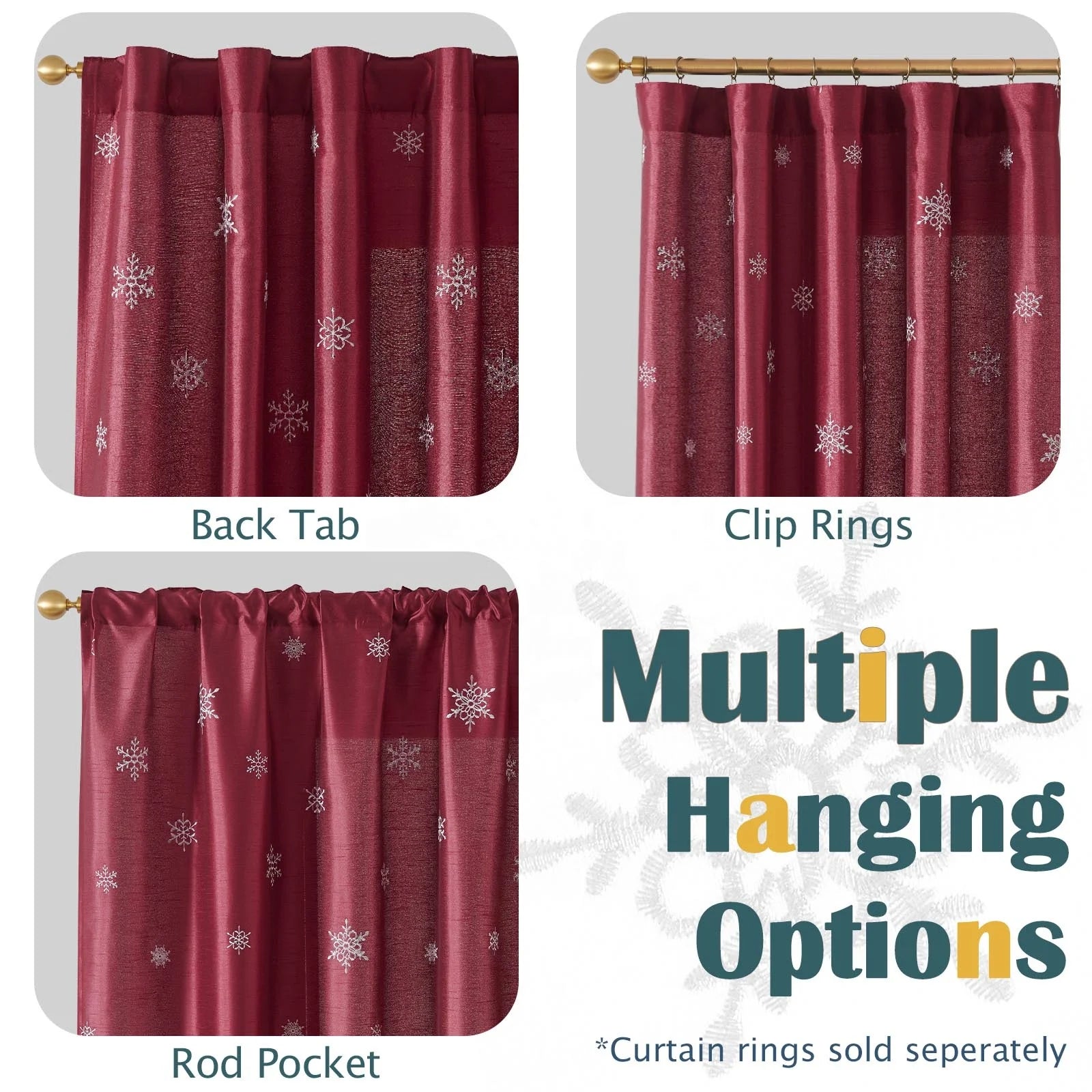 63-Inch 2-Panel Set Long Light Gold Christmas Embroidered Holiday Decor Curtains