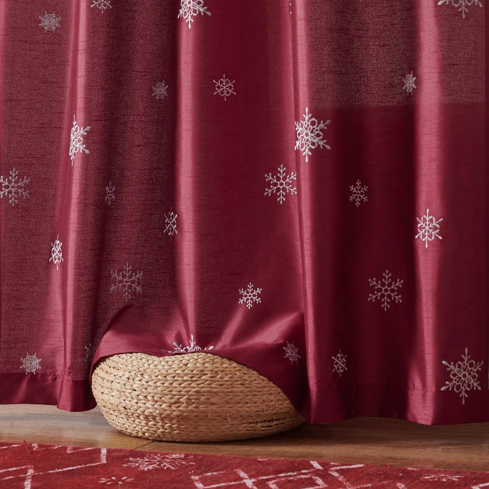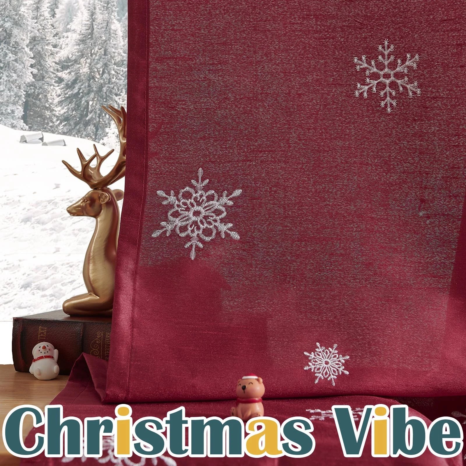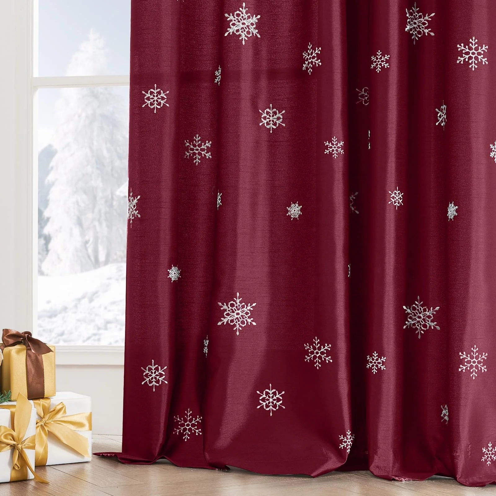 63-Inch 2-Panel Set Long Light Gold Christmas Embroidered Holiday Decor Curtains