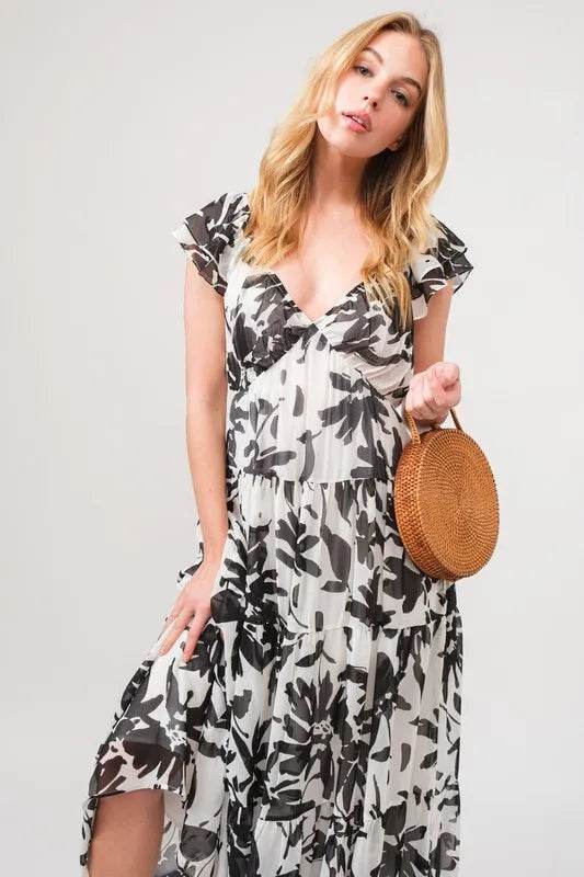 And The Why Ruffled Sleeve Tiered Floral Print Maxi Dress