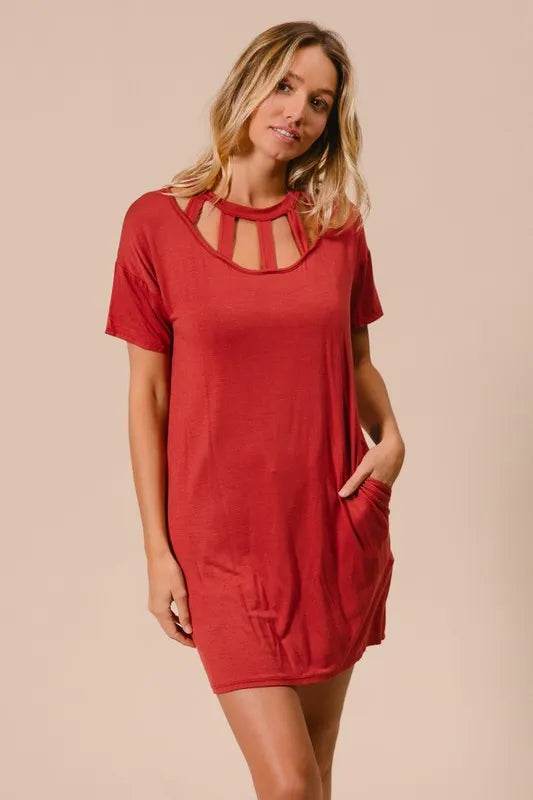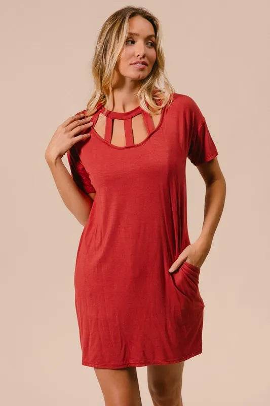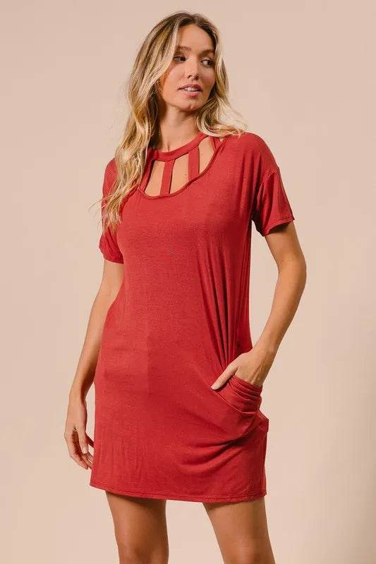 BiBi Front Cutout Mini Tee Dress with Pockets
