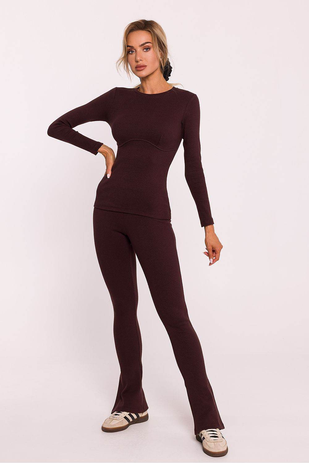 Ribbed Corset-Style Cotton Blouse with Long Fitted Sleeves