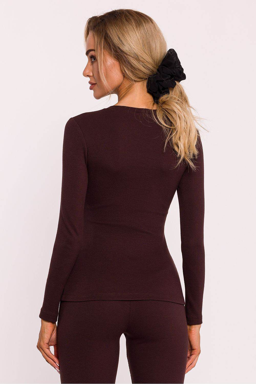 The blouse with long, narrow sleeves, made of ribbed cotton knit fabric, perfectly adapts to the figure, emphasizing its shapes.... Read more