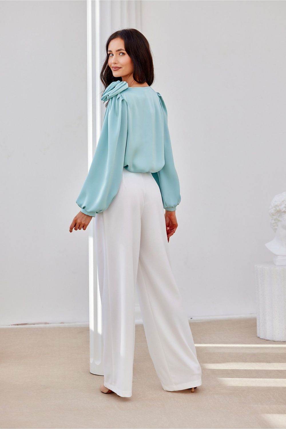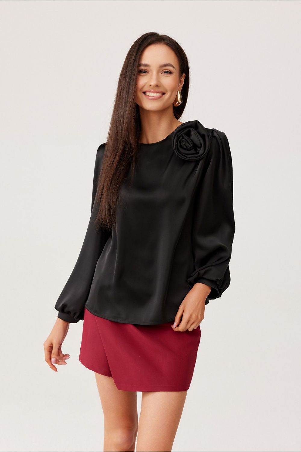 Satin Blouse with Rose Detail & Puffy Sleeves – Elegant & Flowy Fit