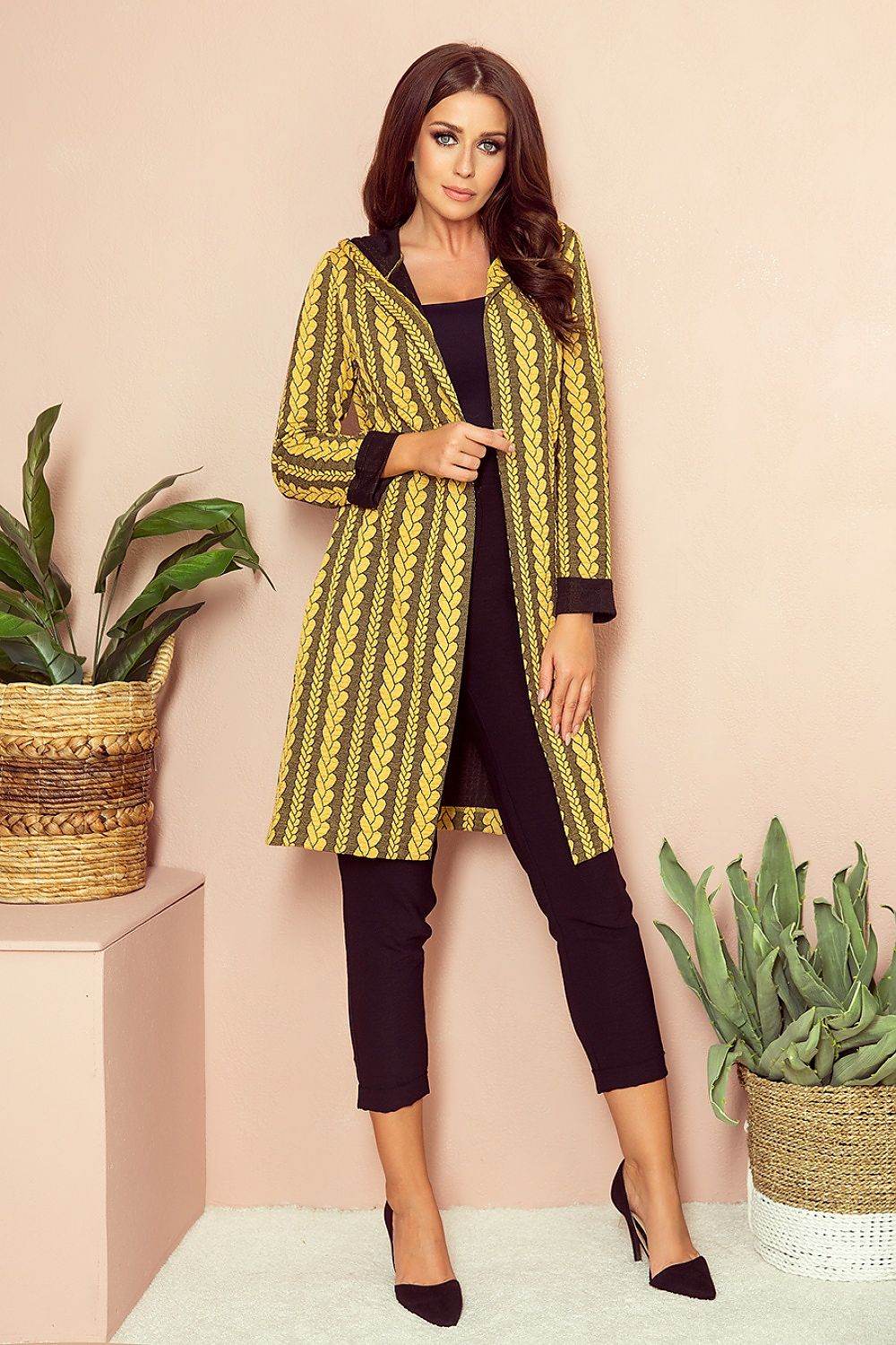Long hooded jacket with pockets, made of jacquard fabric - city pattern. Polish product. Polyester 30 % Viscose 70 %... Read more