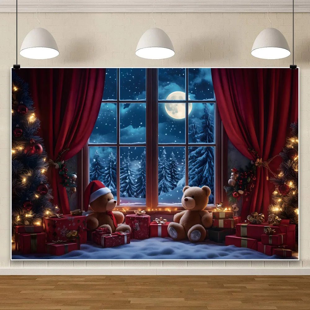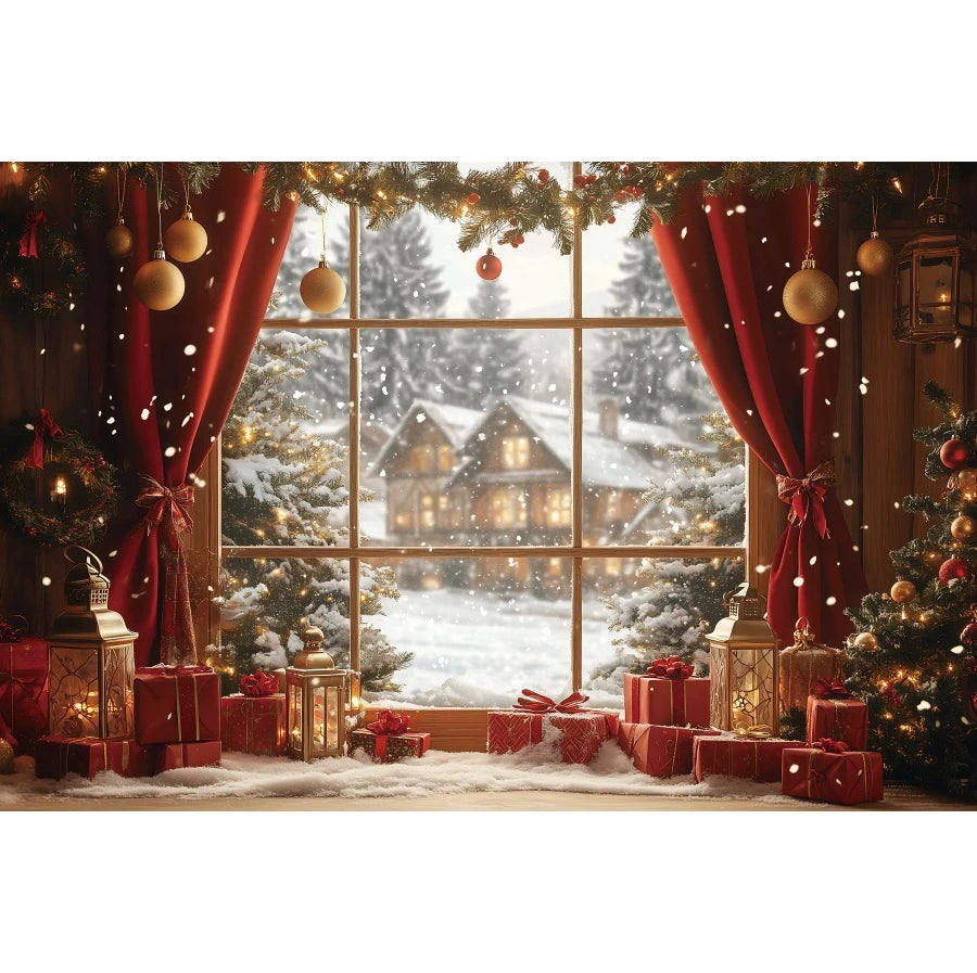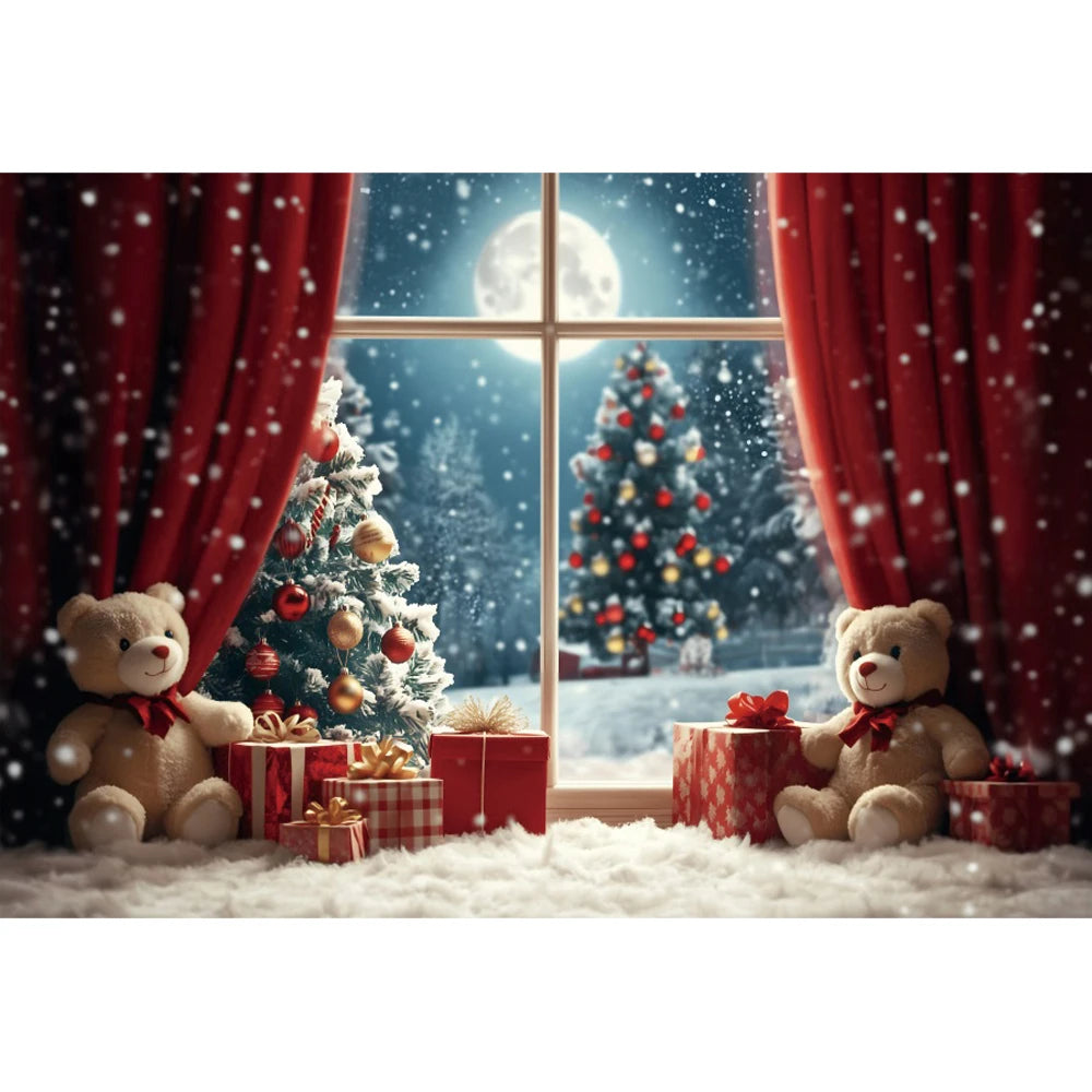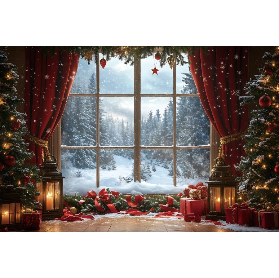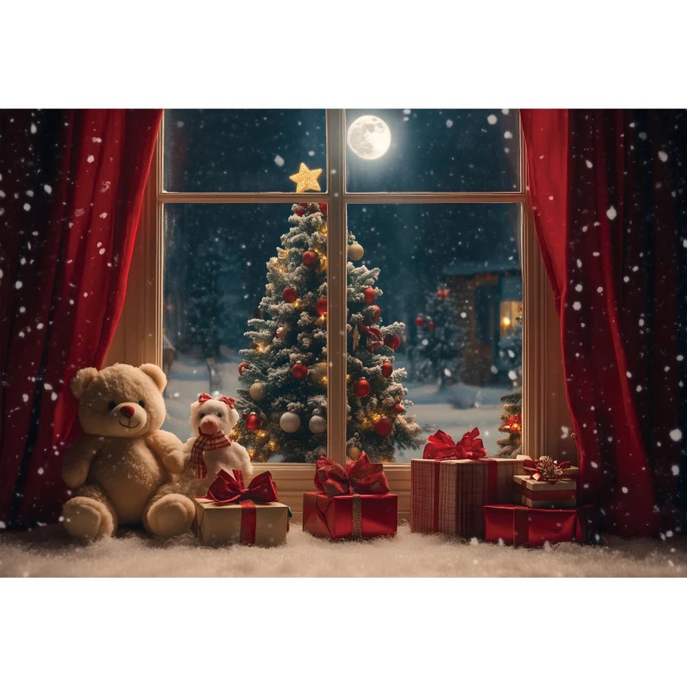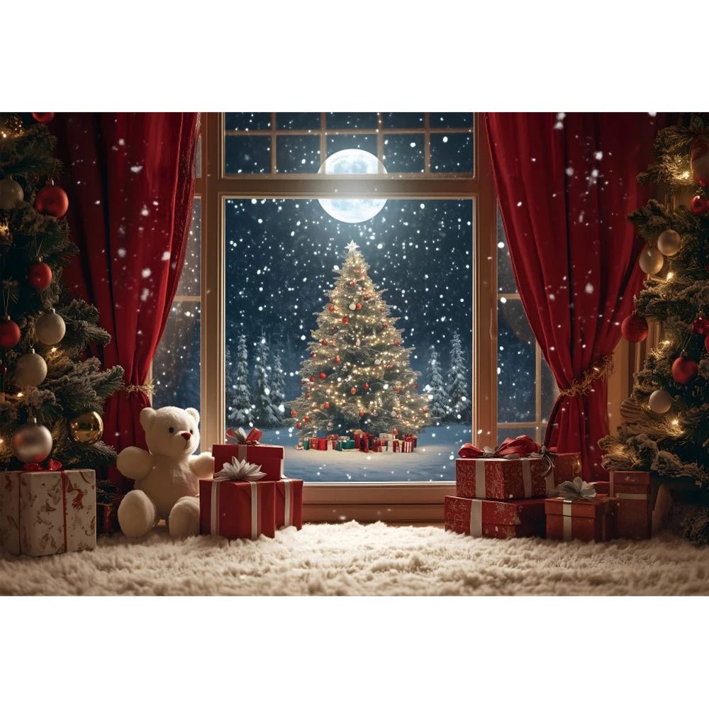 Christmas Backdrop Winter Window Xmas Tree Snowy Night