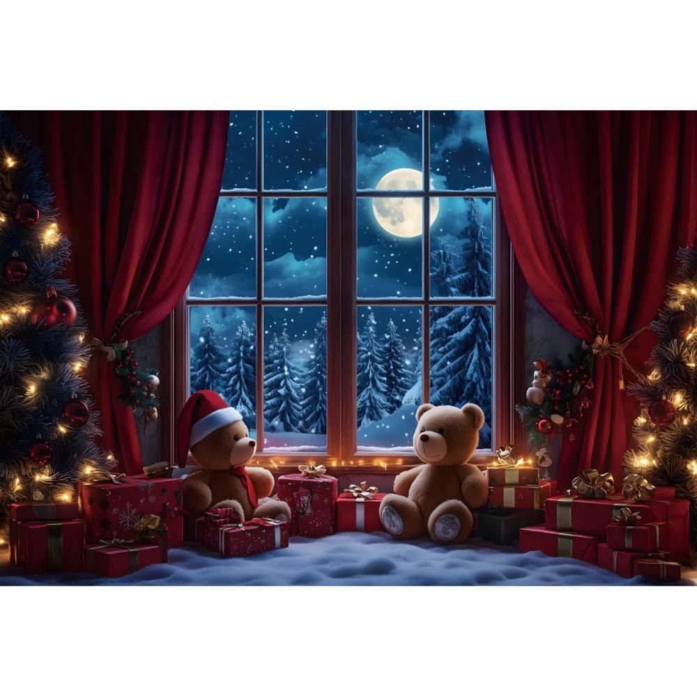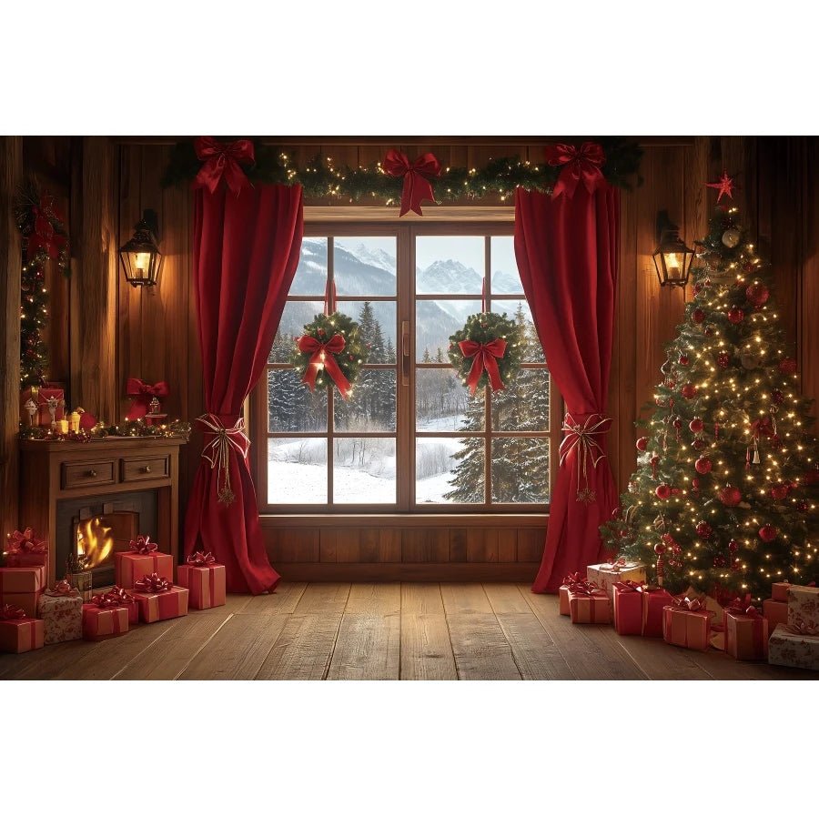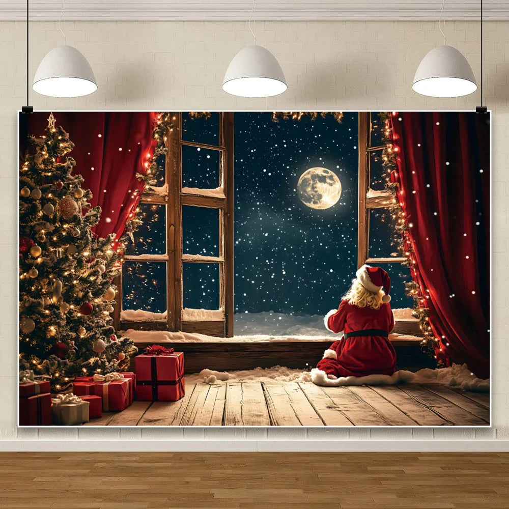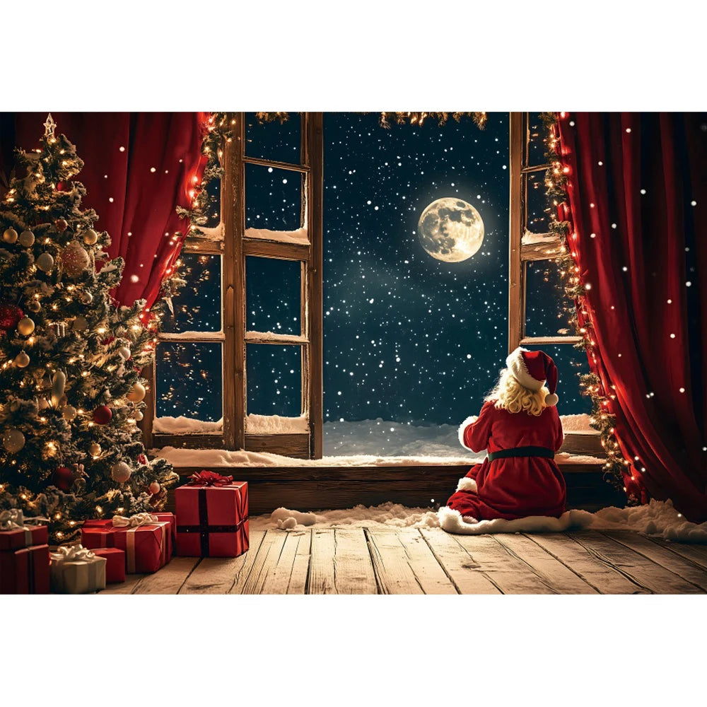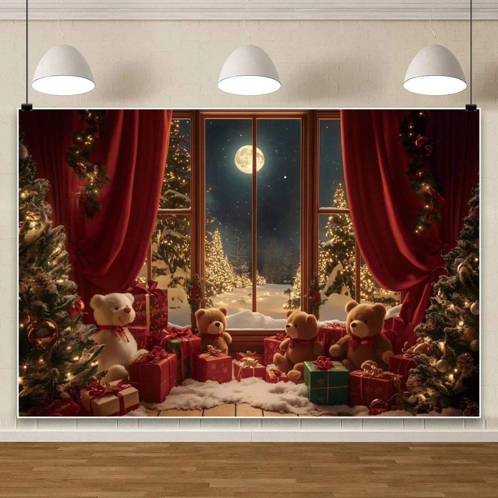 Christmas Backdrop Winter Window Xmas Tree Snowy Night
