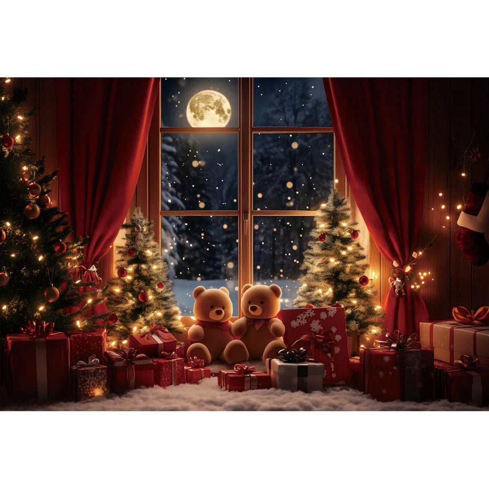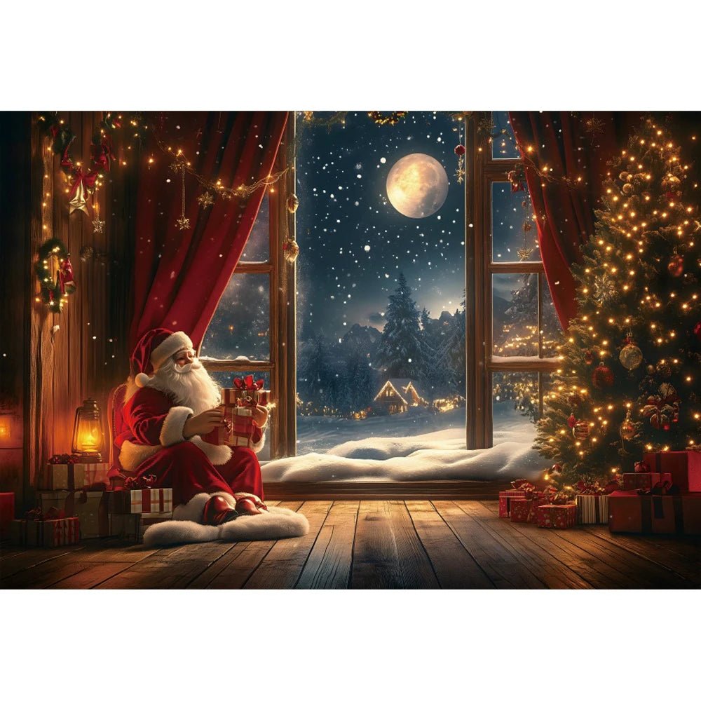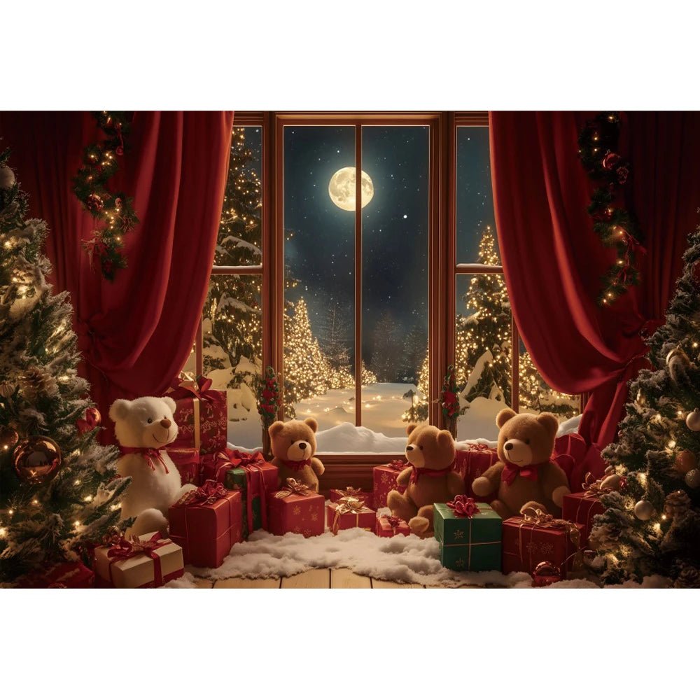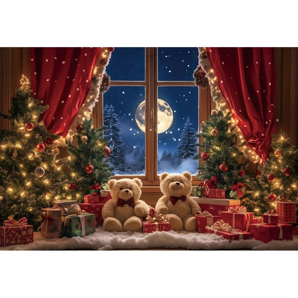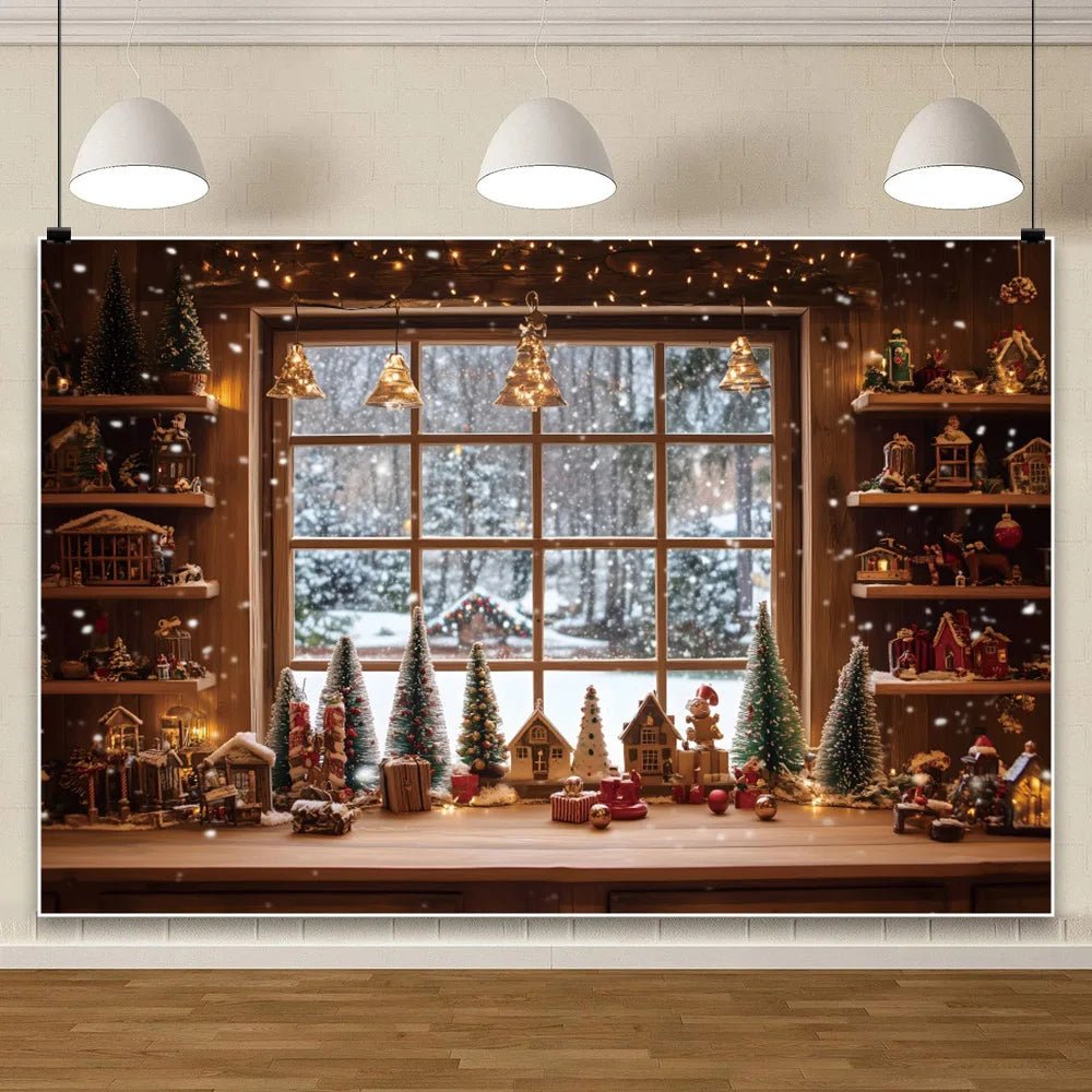 Christmas Backdrop Winter Window Xmas Tree Snowy Night