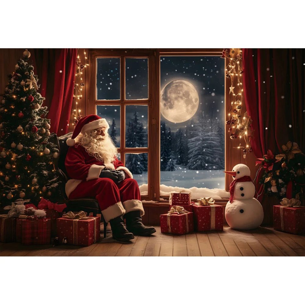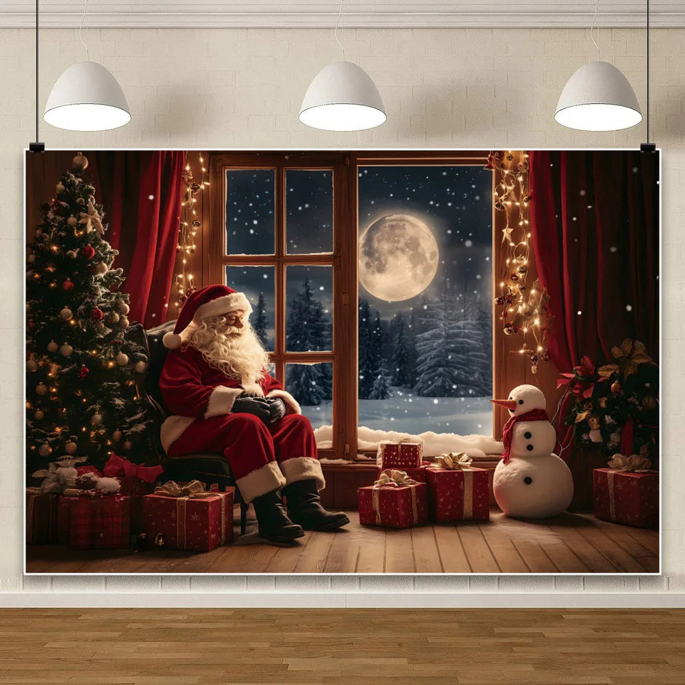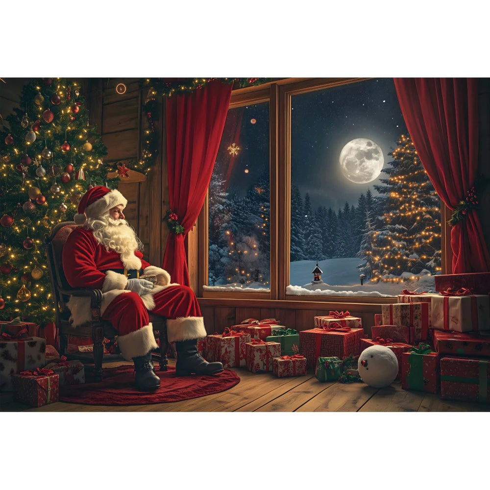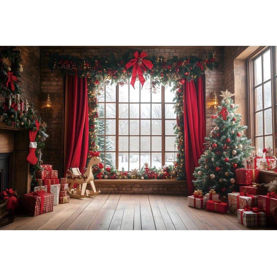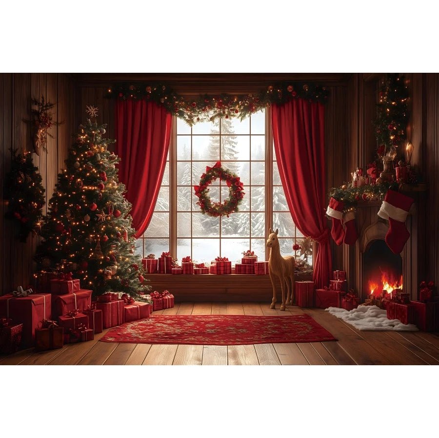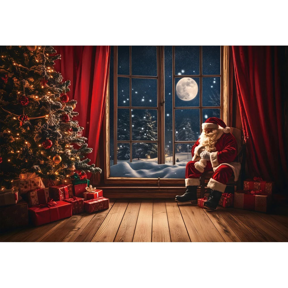 Christmas Backdrop Winter Window Xmas Tree Snowy Night