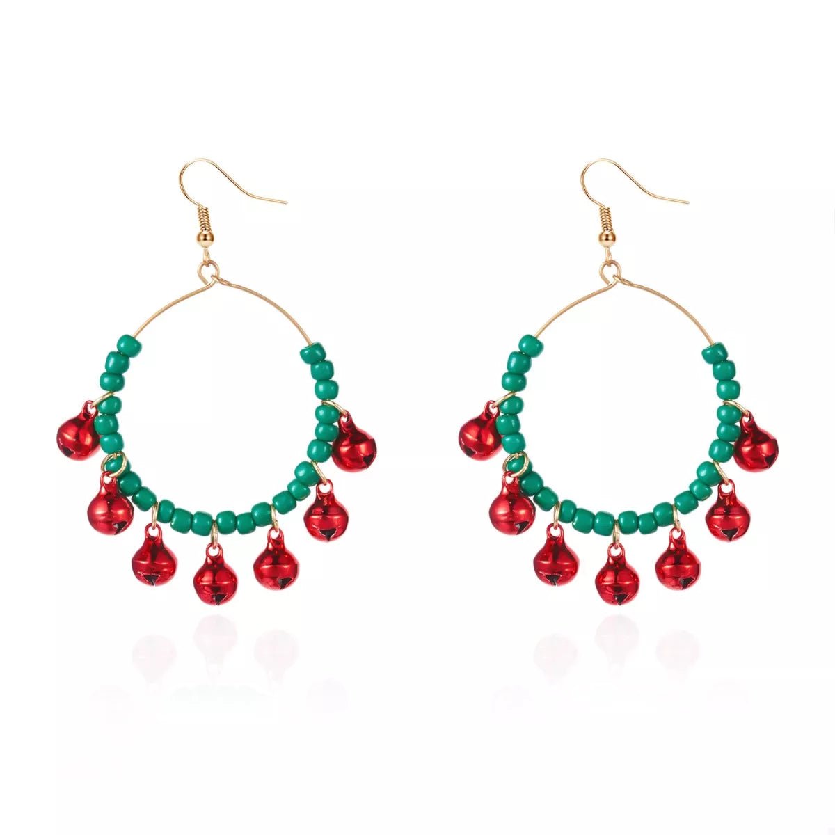 Christmas Beaded Hoop Earrings with Jingle Bells