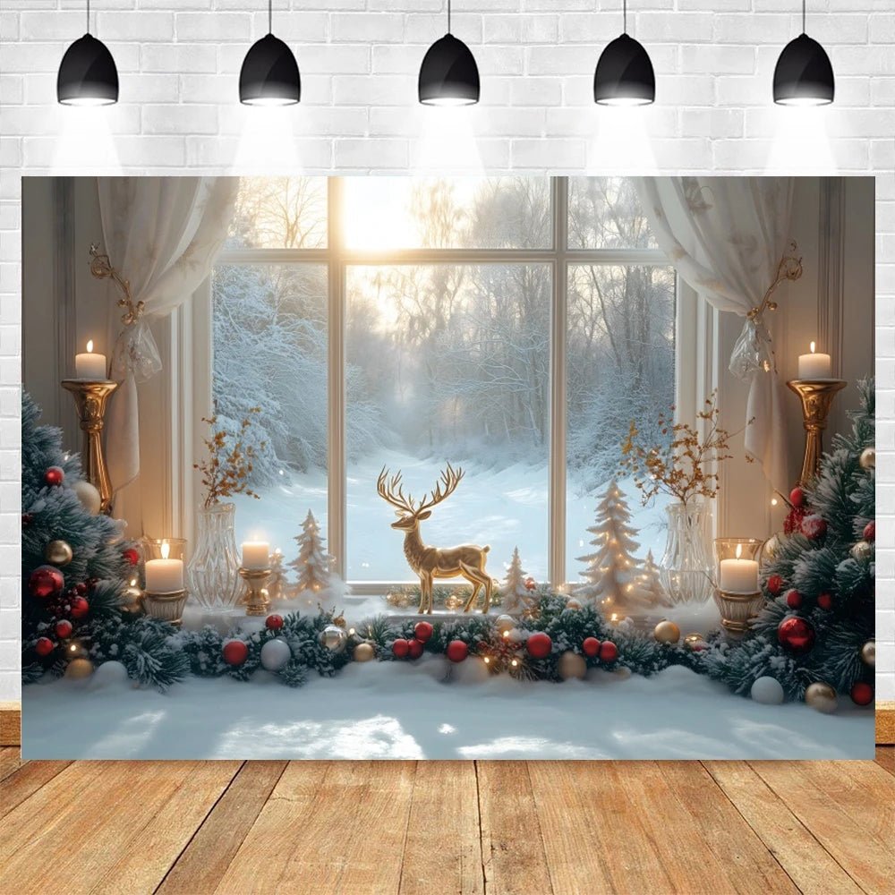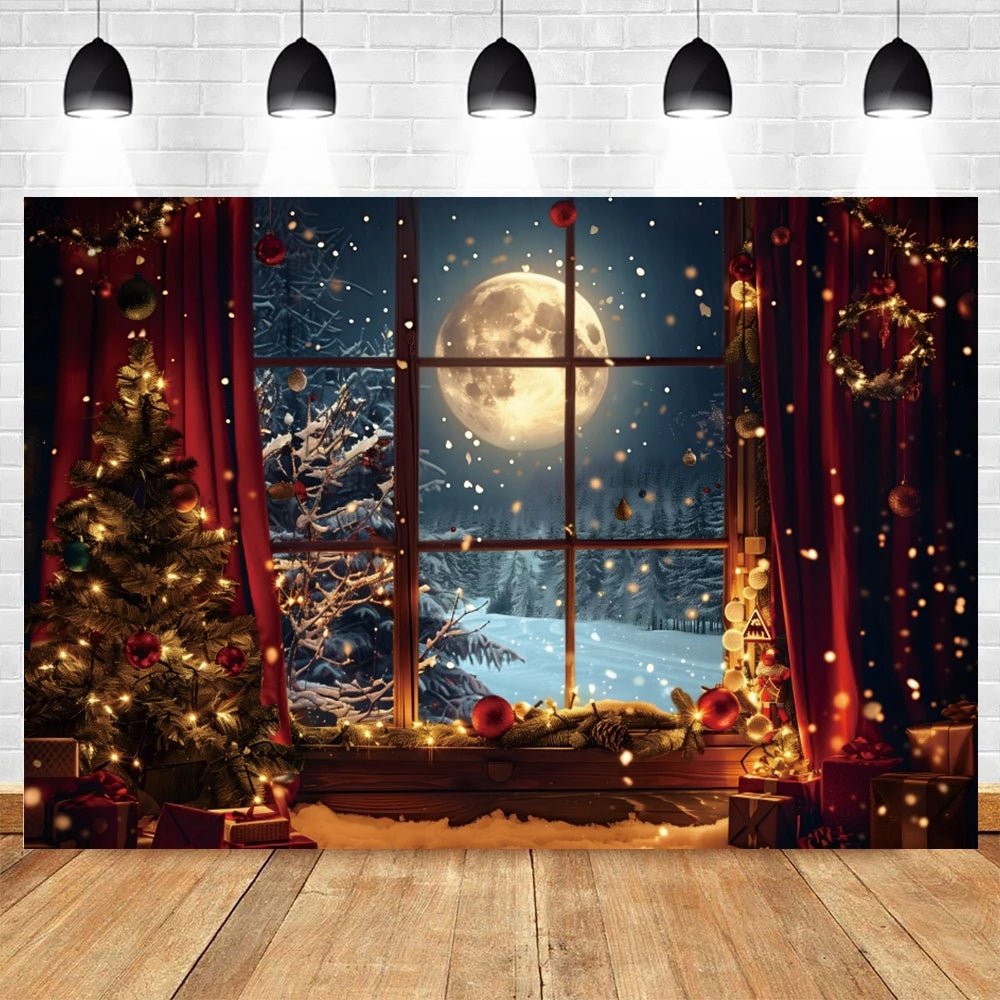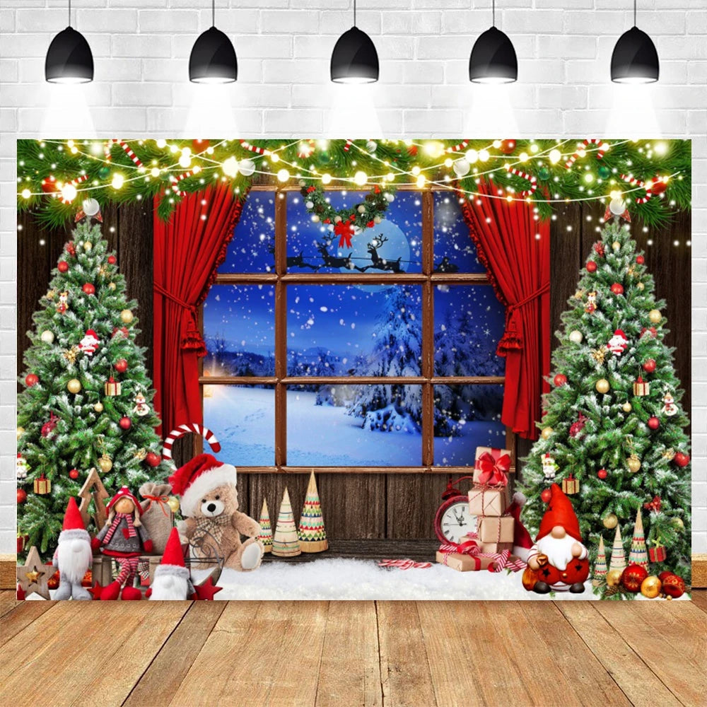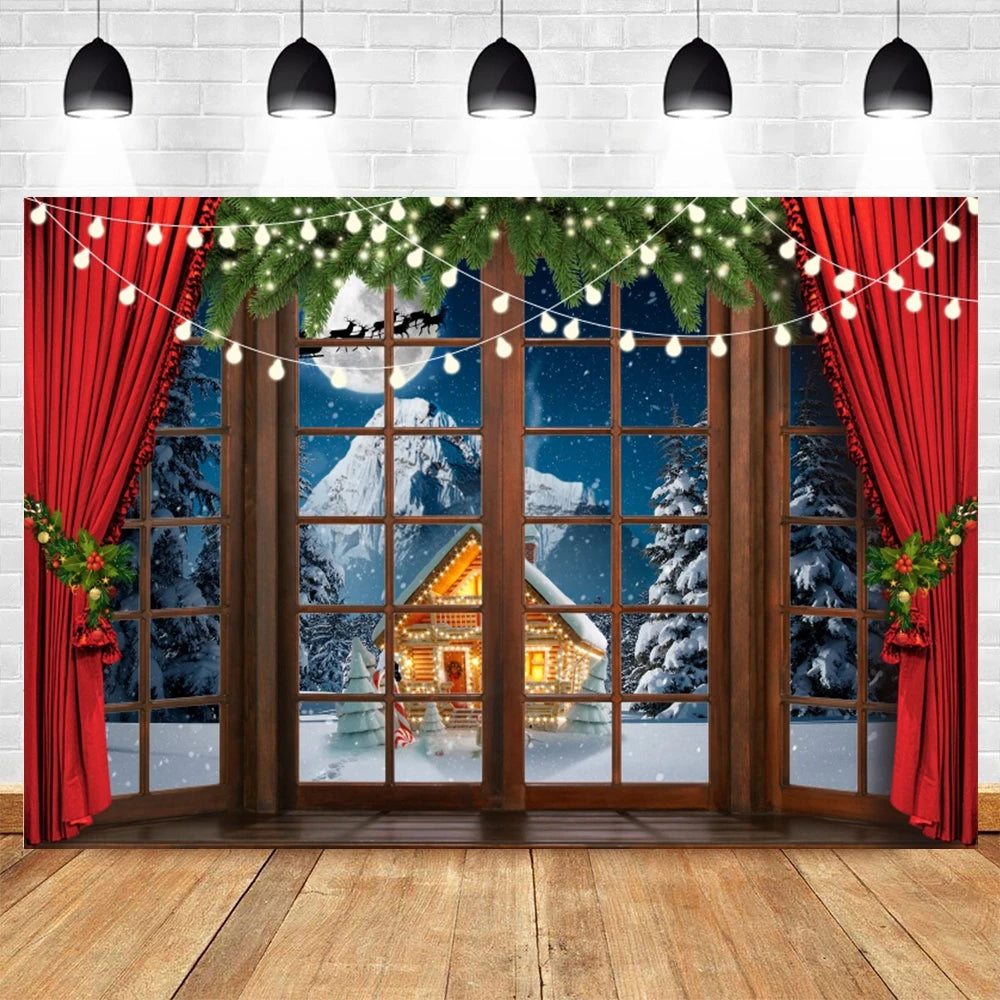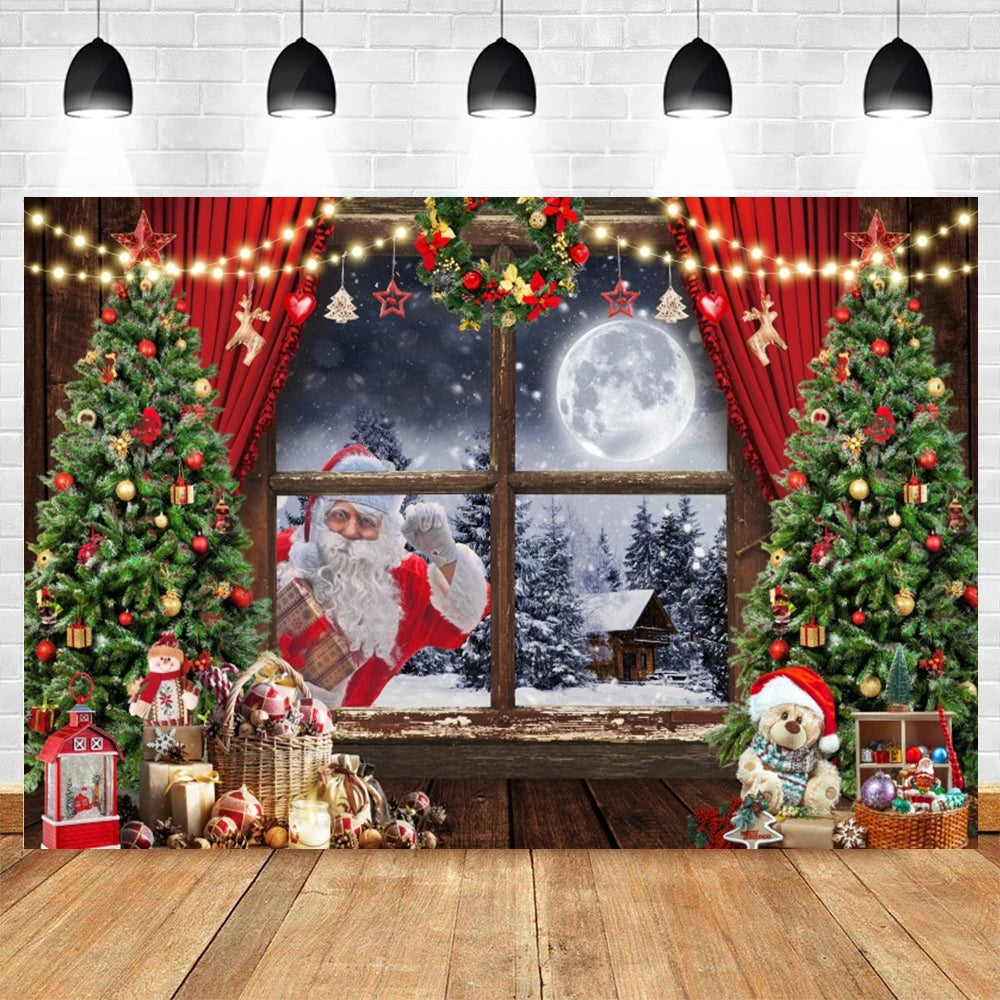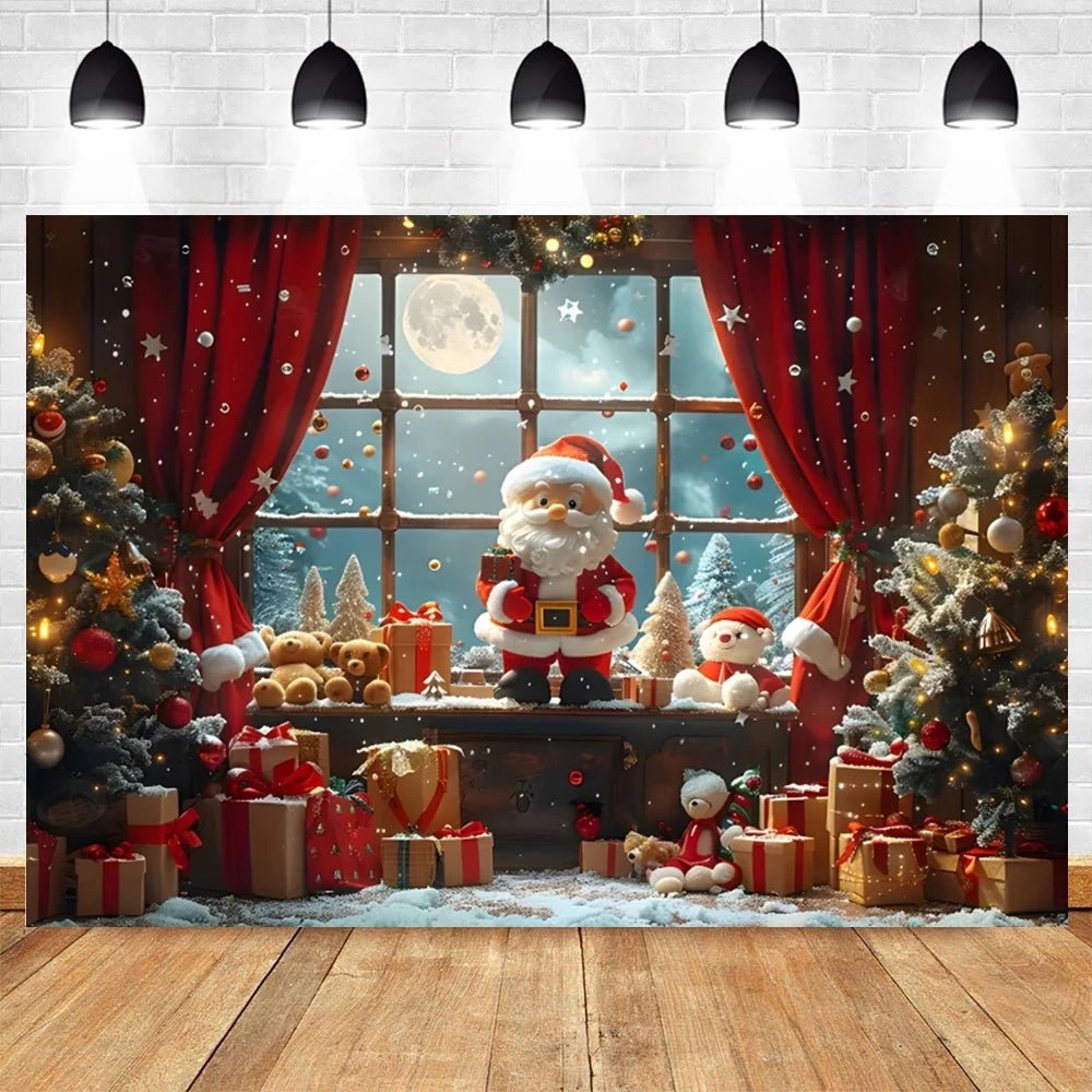 Christmas Photography Backdrop Santa Claus Window Snow Forest