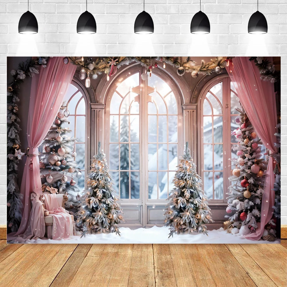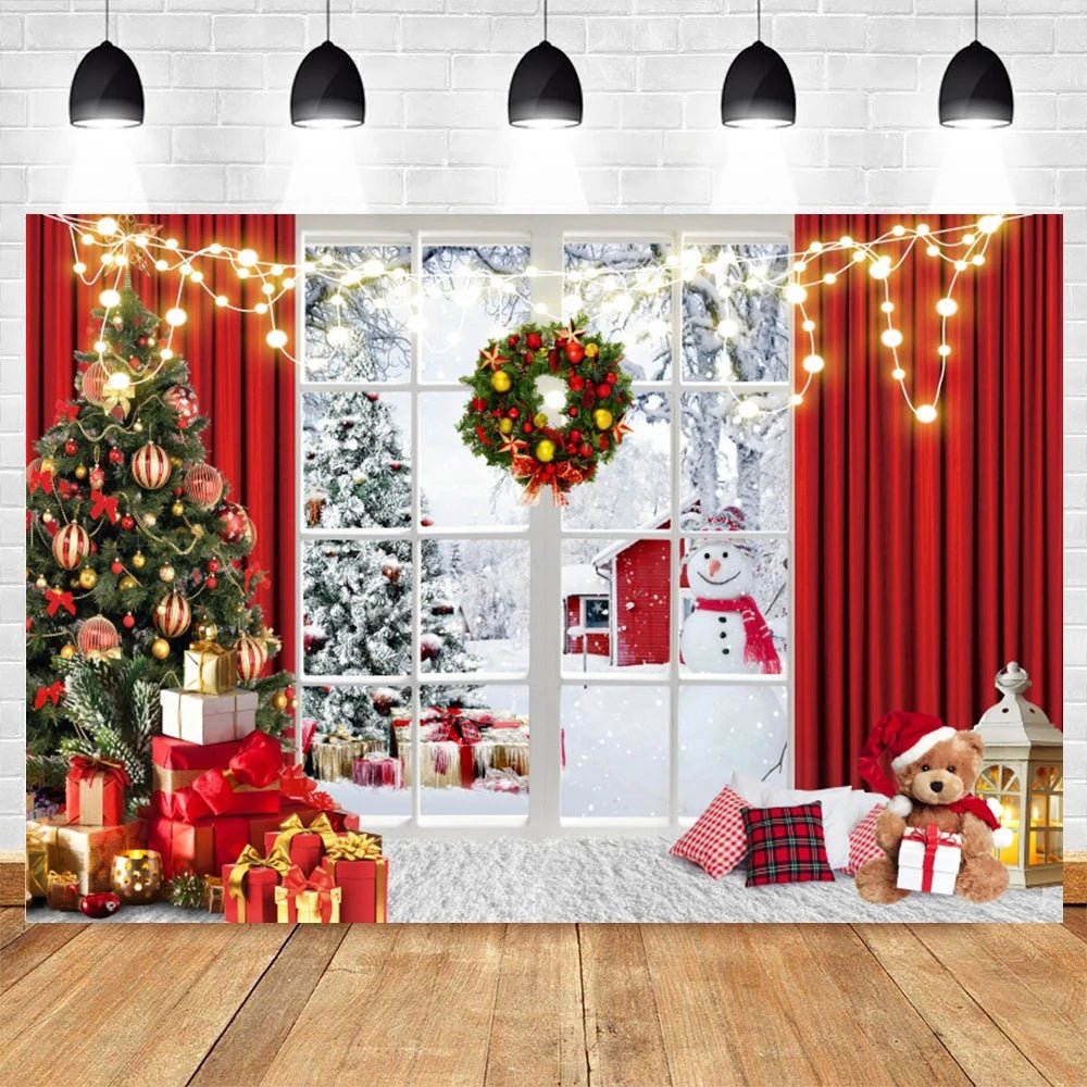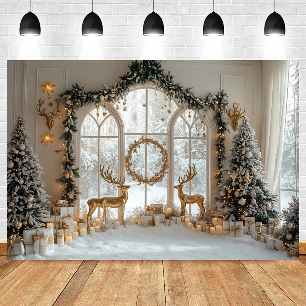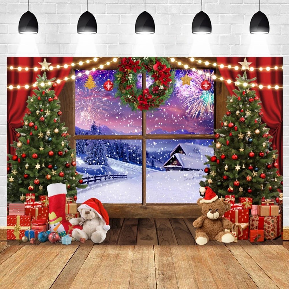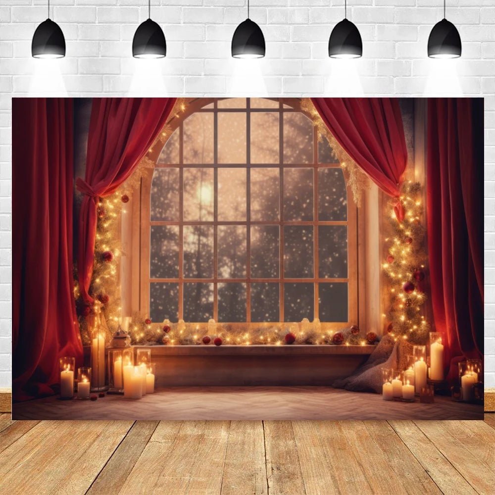 Christmas Photography Backdrop Santa Claus Window Snow Forest