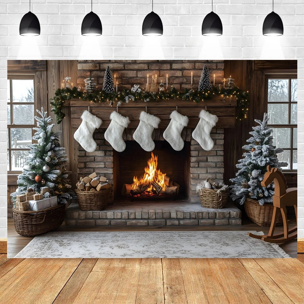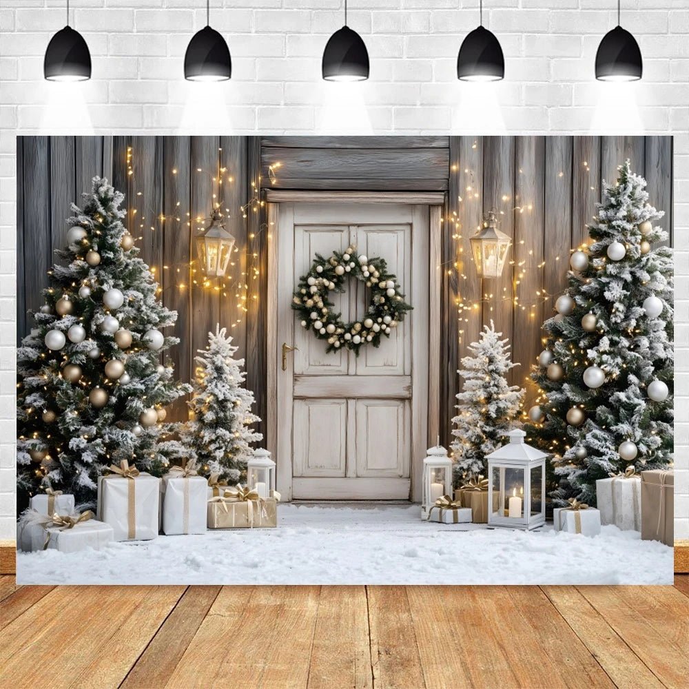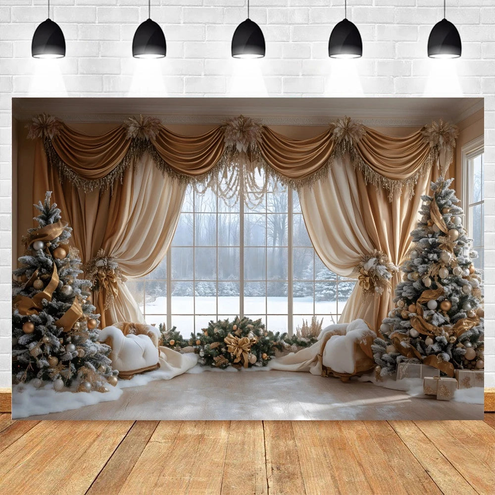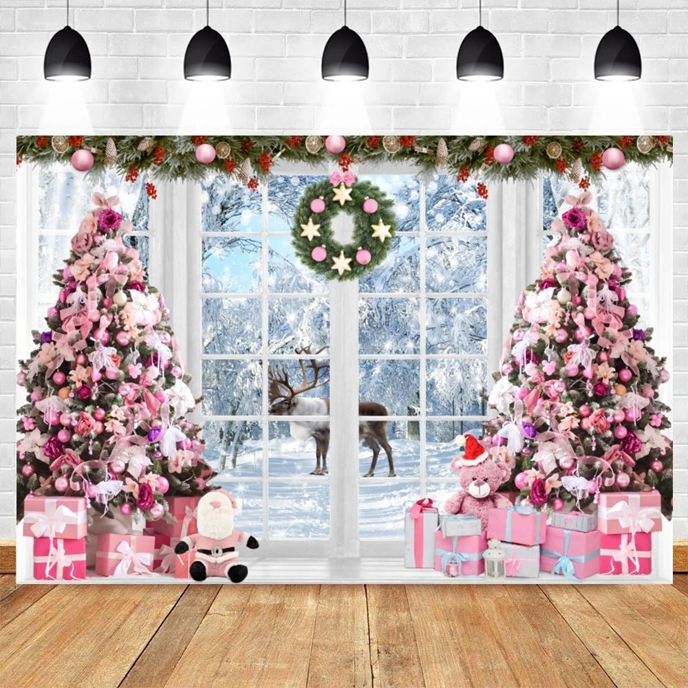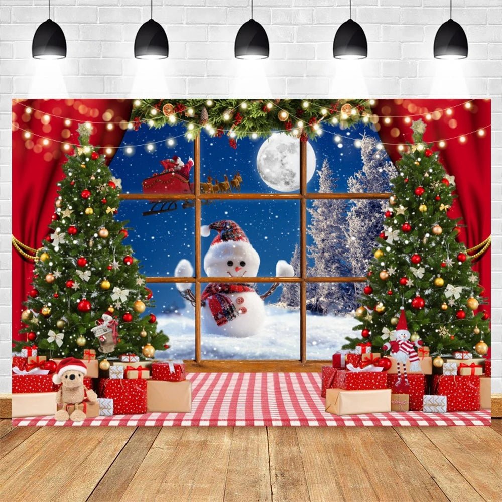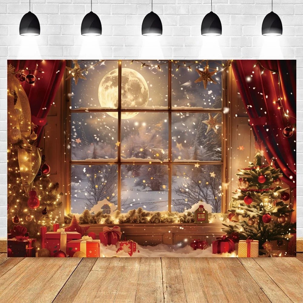 Christmas Photography Backdrop Santa Claus Window Snow Forest