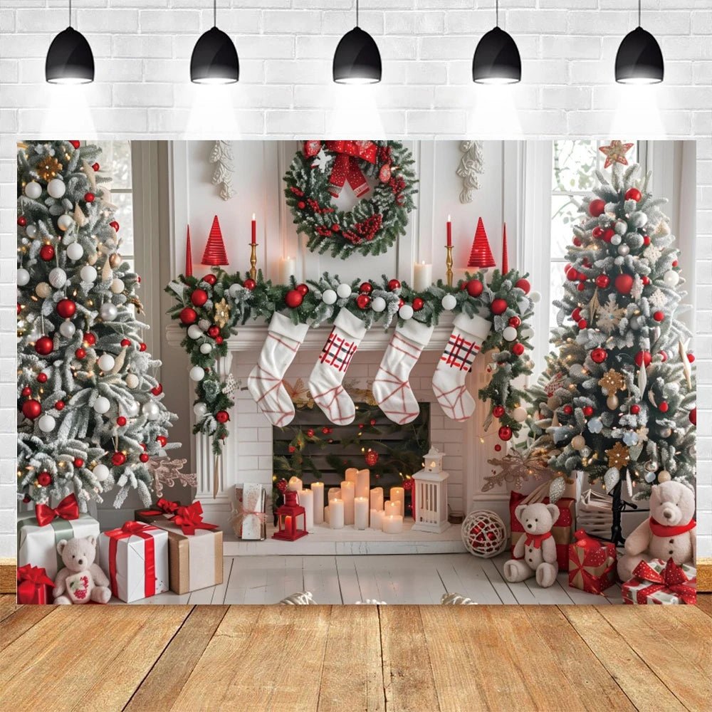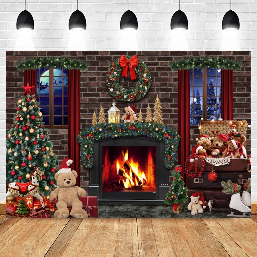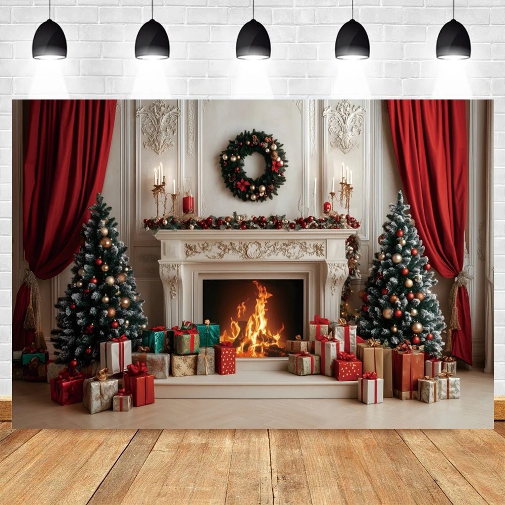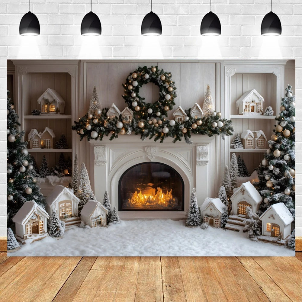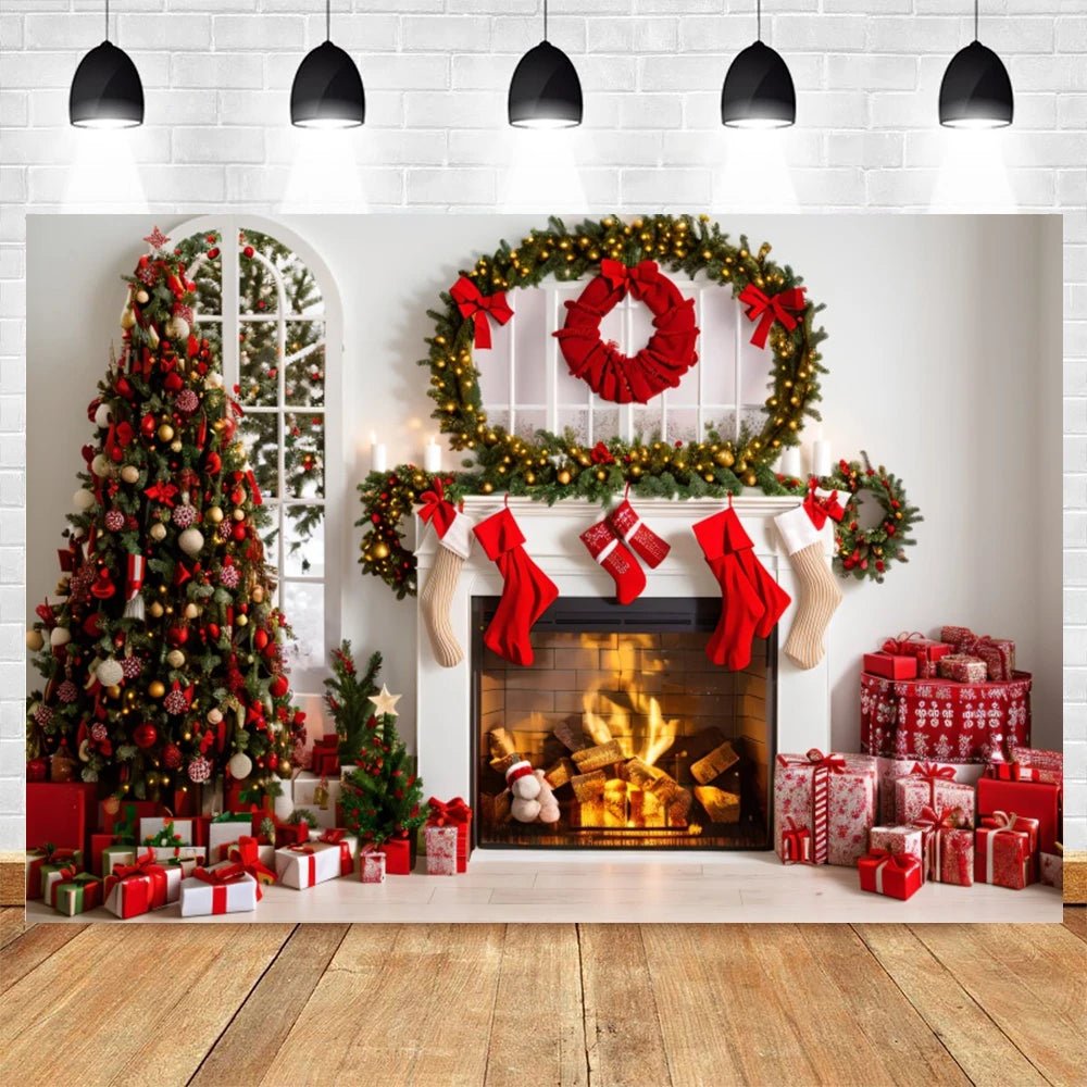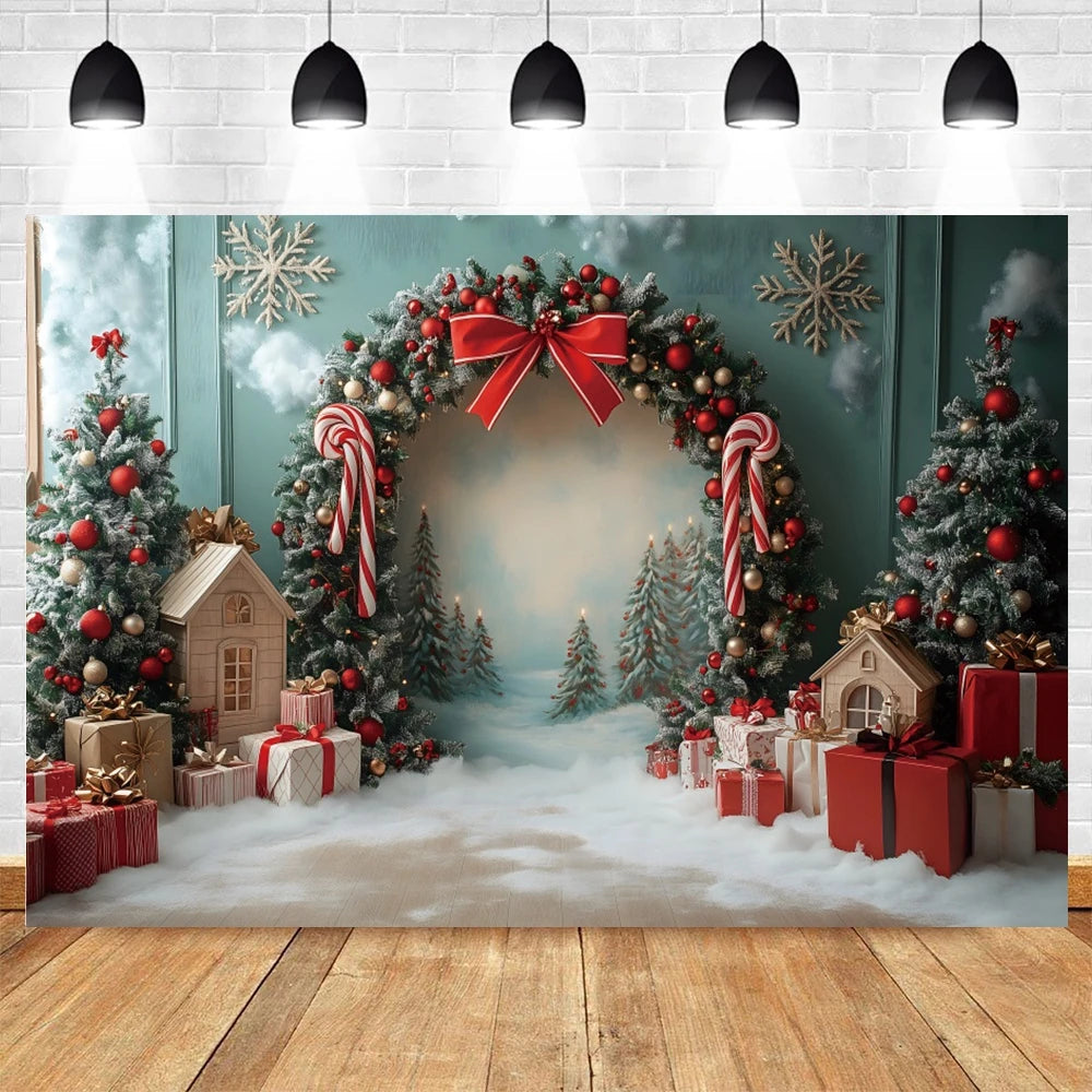 Christmas Photography Backdrop Santa Claus Window Snow Forest