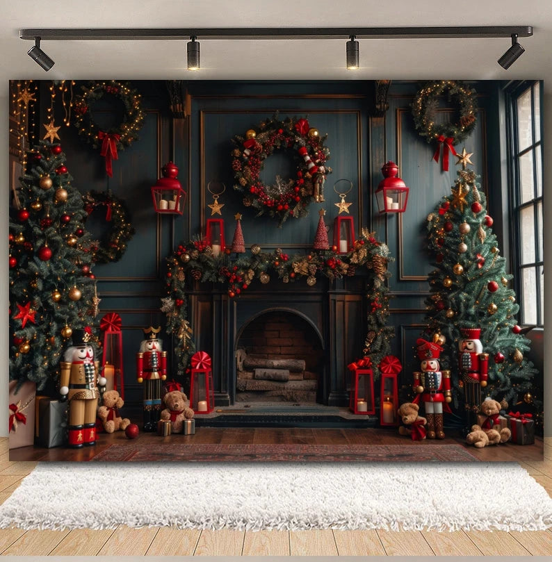 Christmas Backdrop Xmas Tree Fireplace Christmas Background
