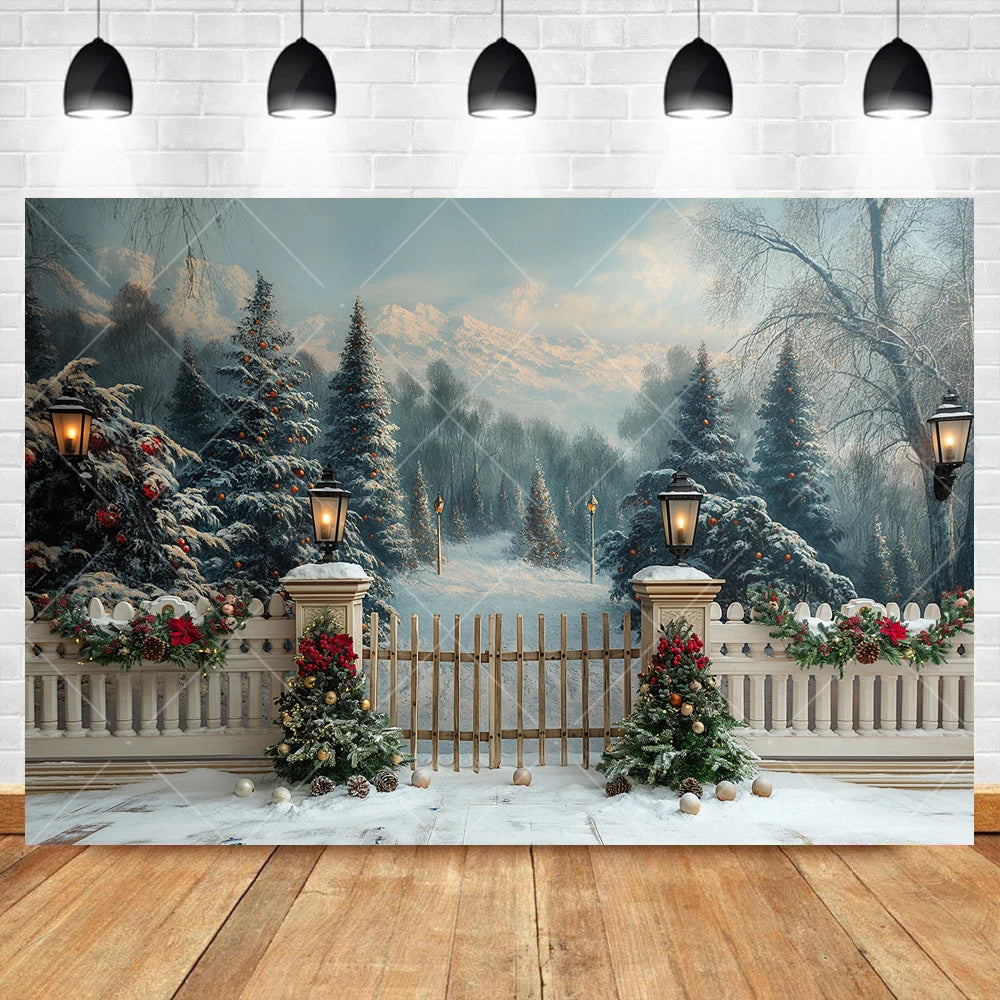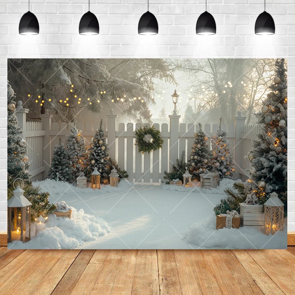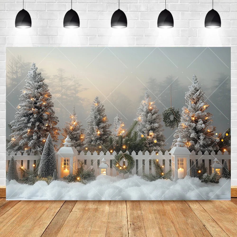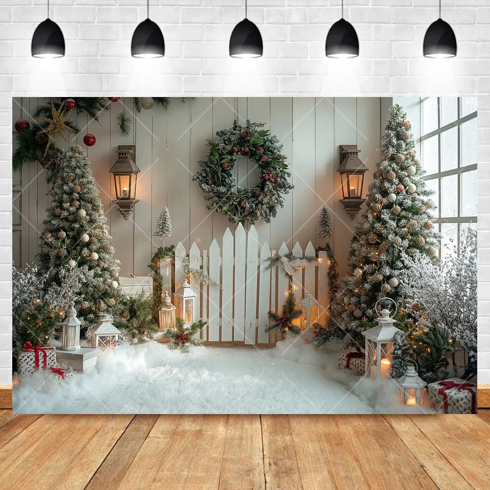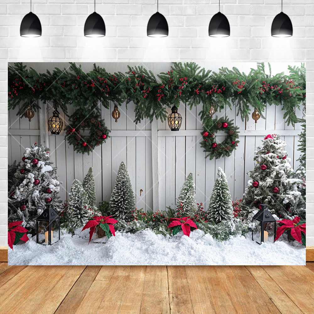 Christmas Background Custom Pine Fence Garland Christmas Tree Background