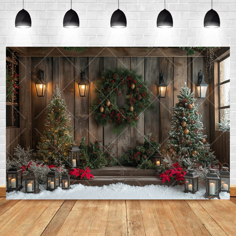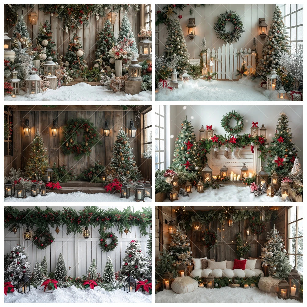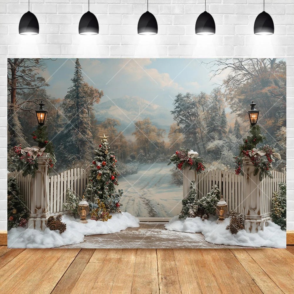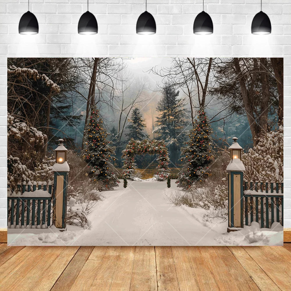 Christmas Background Custom Pine Fence Garland Christmas Tree Background