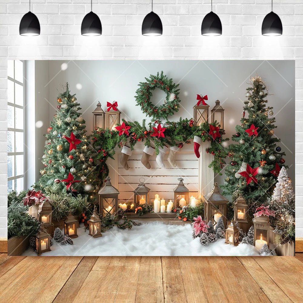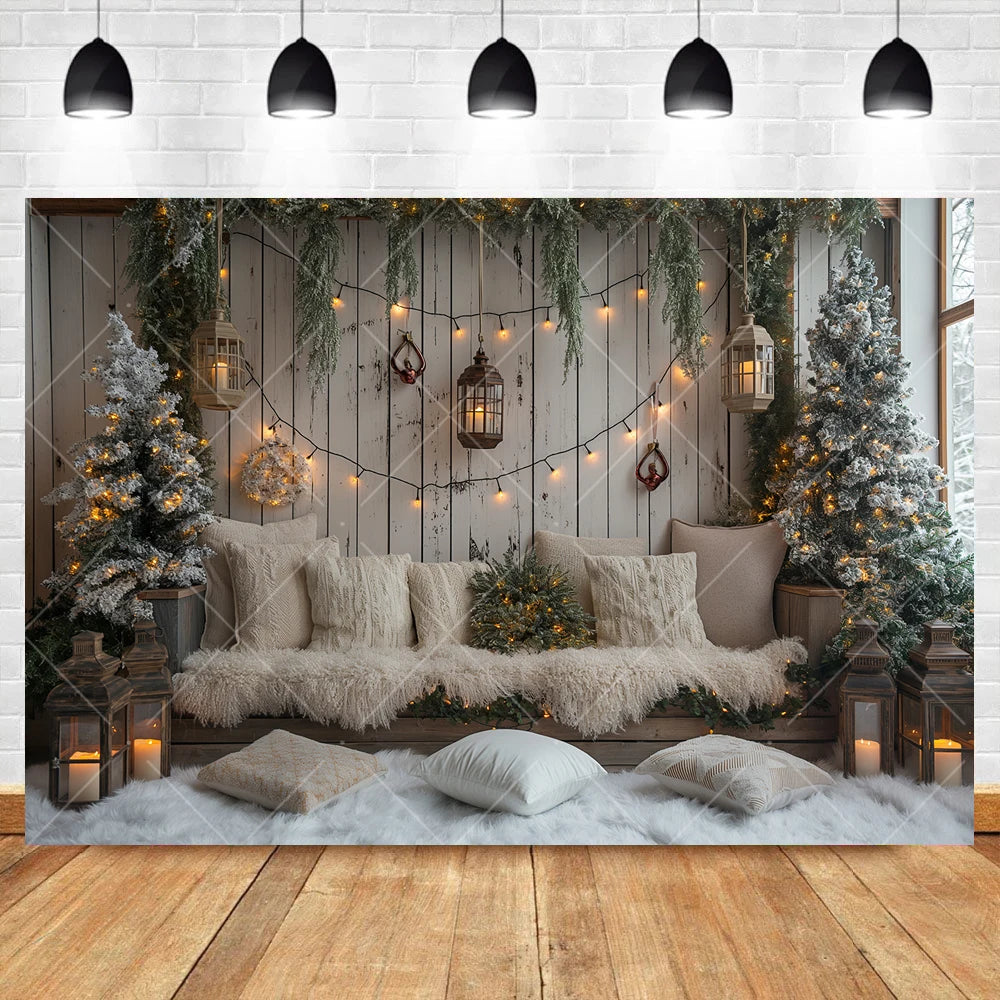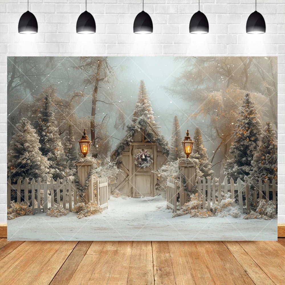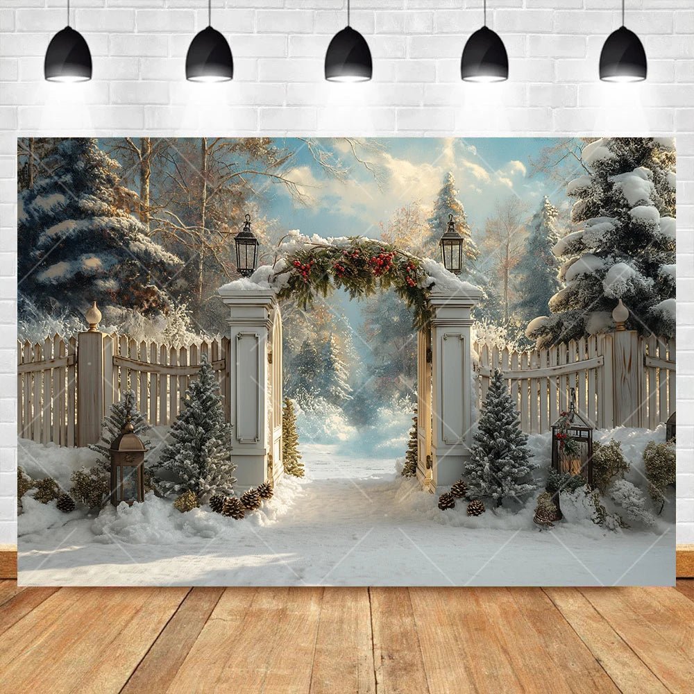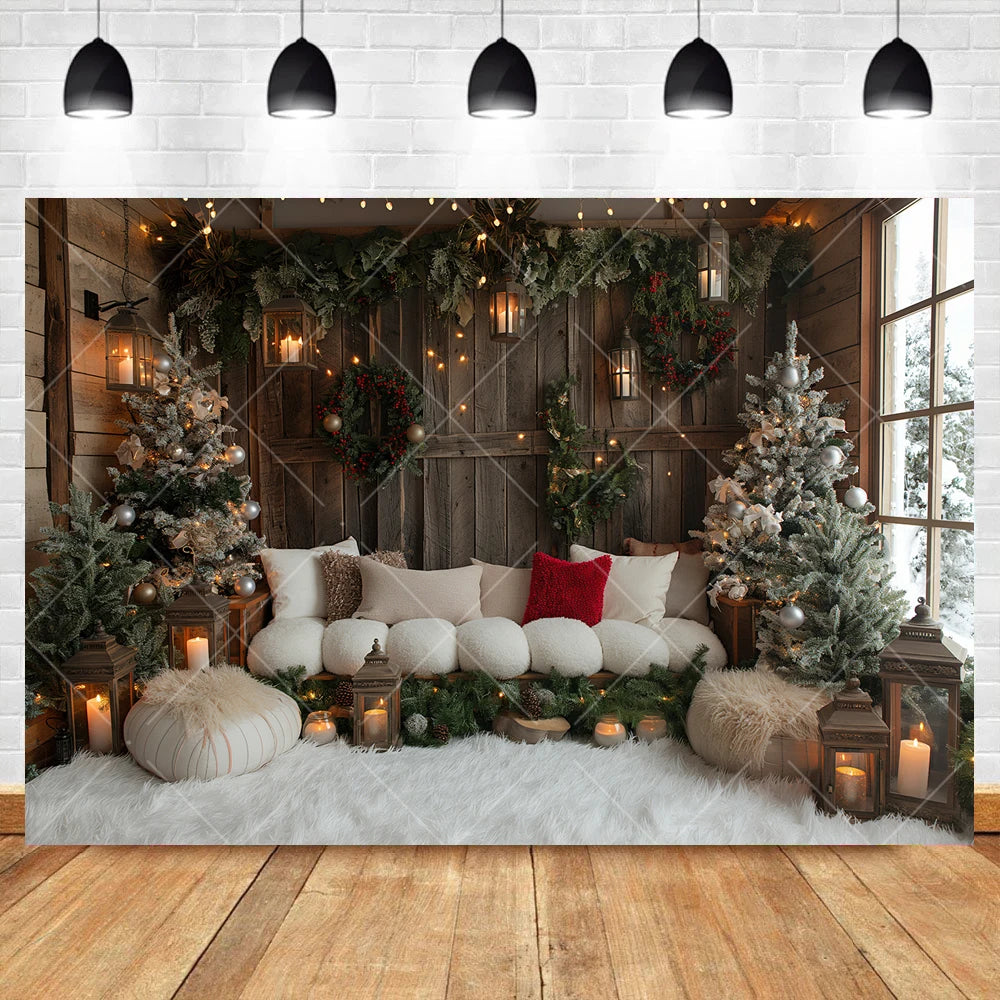 Christmas Background Custom Pine Fence Garland Christmas Tree Background