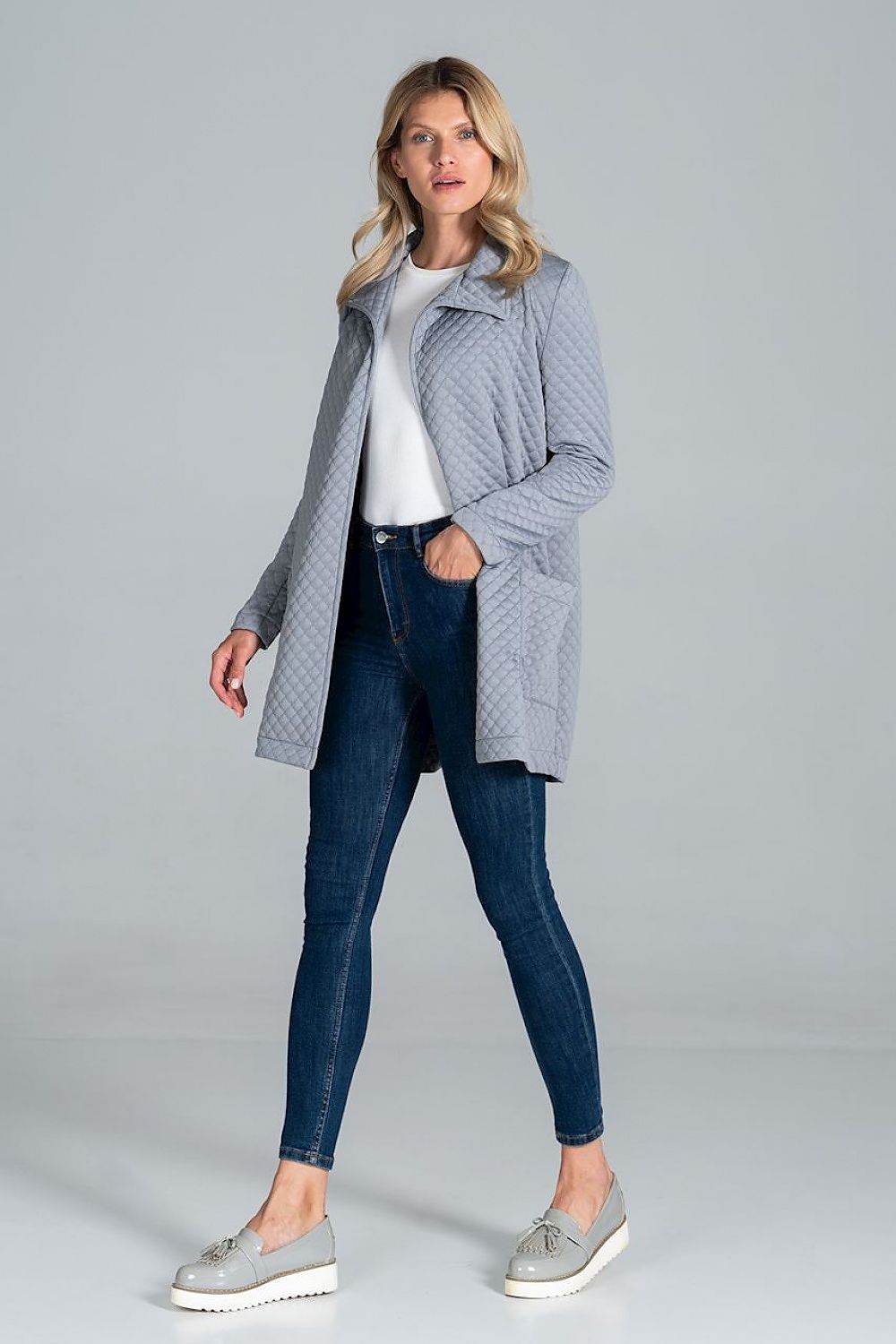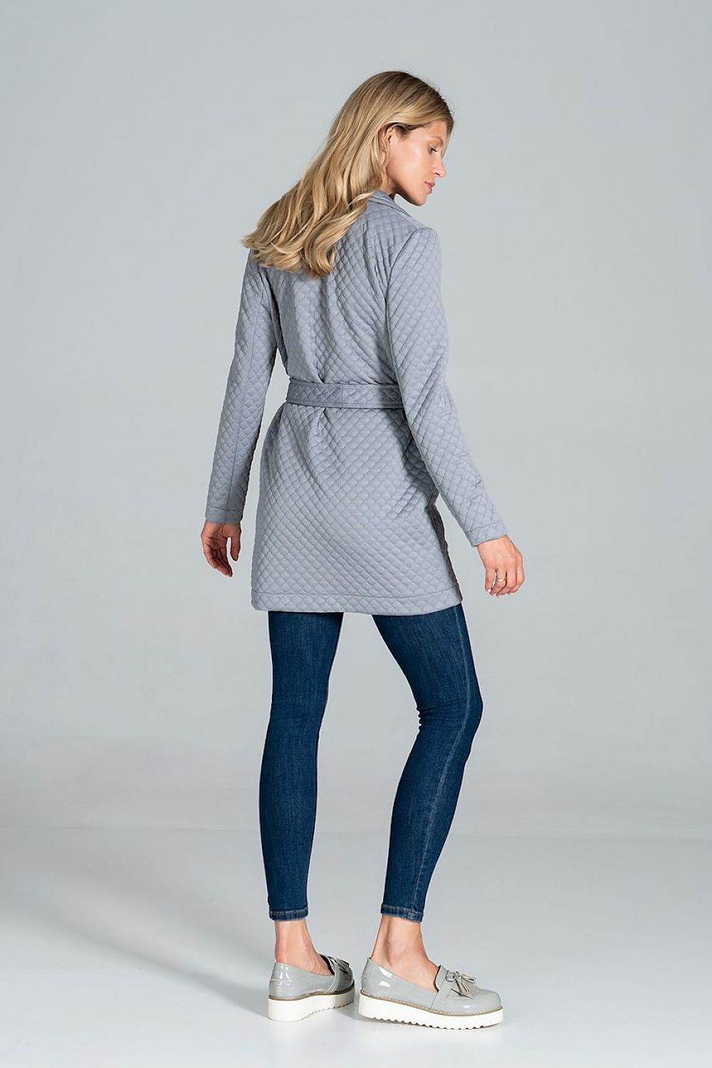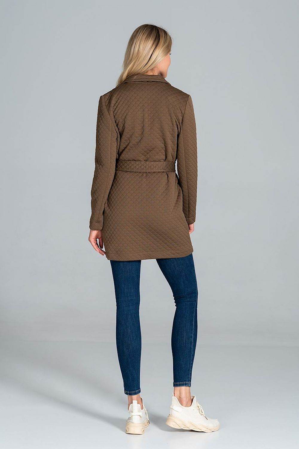 Short quilted coat, unbuttoned, tied with a belt, with a collar, patch pockets at the front, unlined. Spandex 5 %... Read more