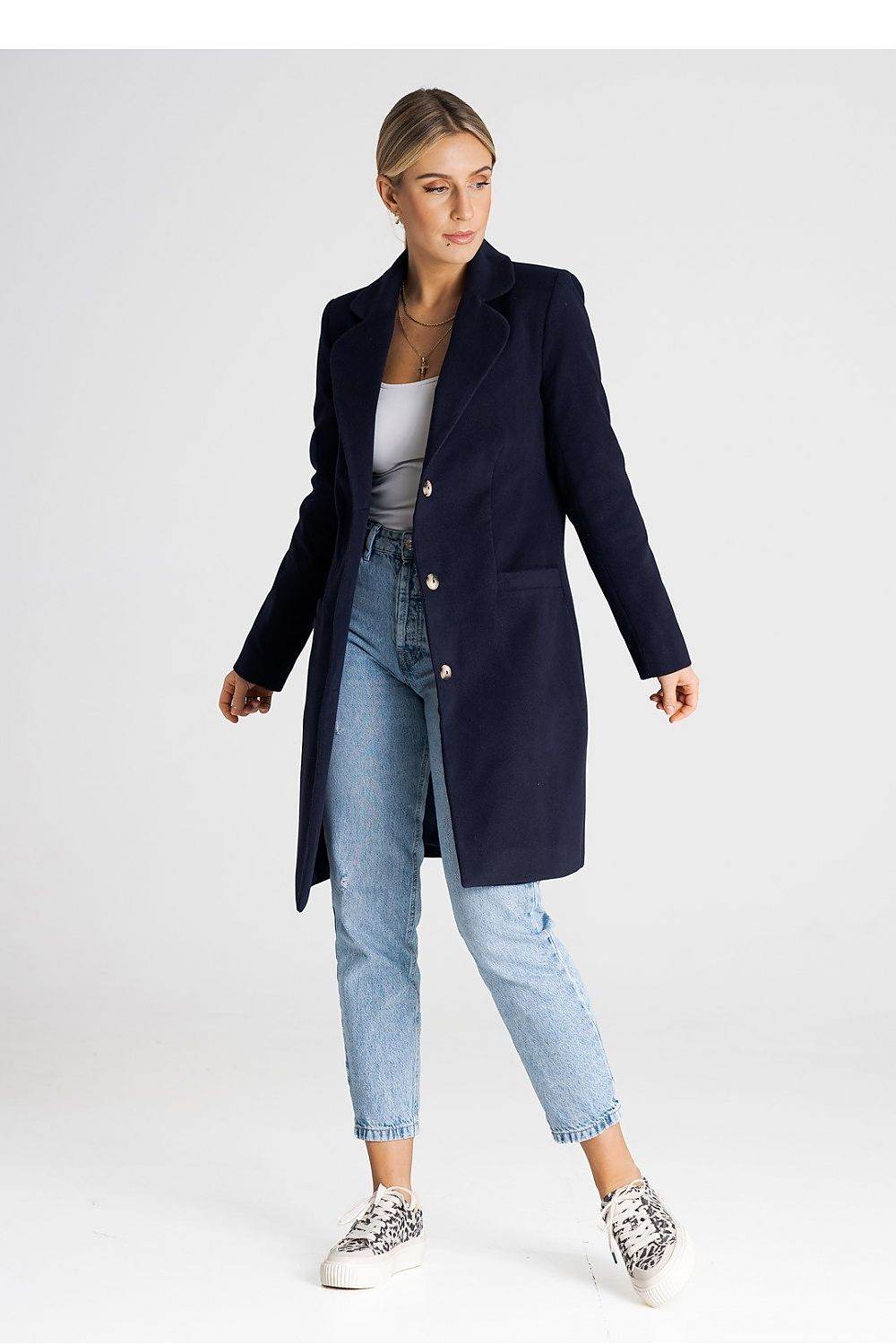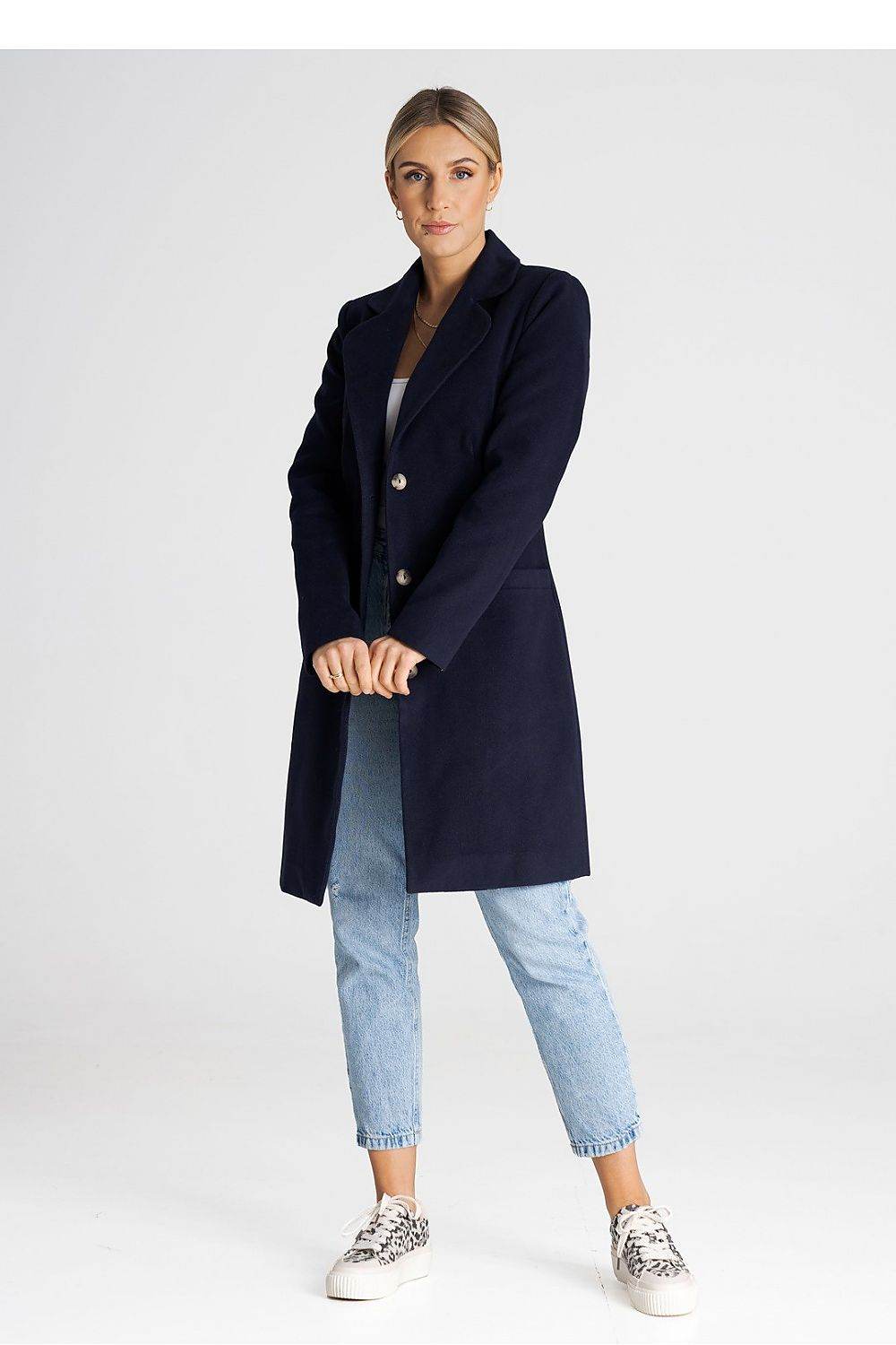 Classic coat with a padded collar, buttoned. In the front, straight, slip pockets. The coat has a lining. The length... Read more