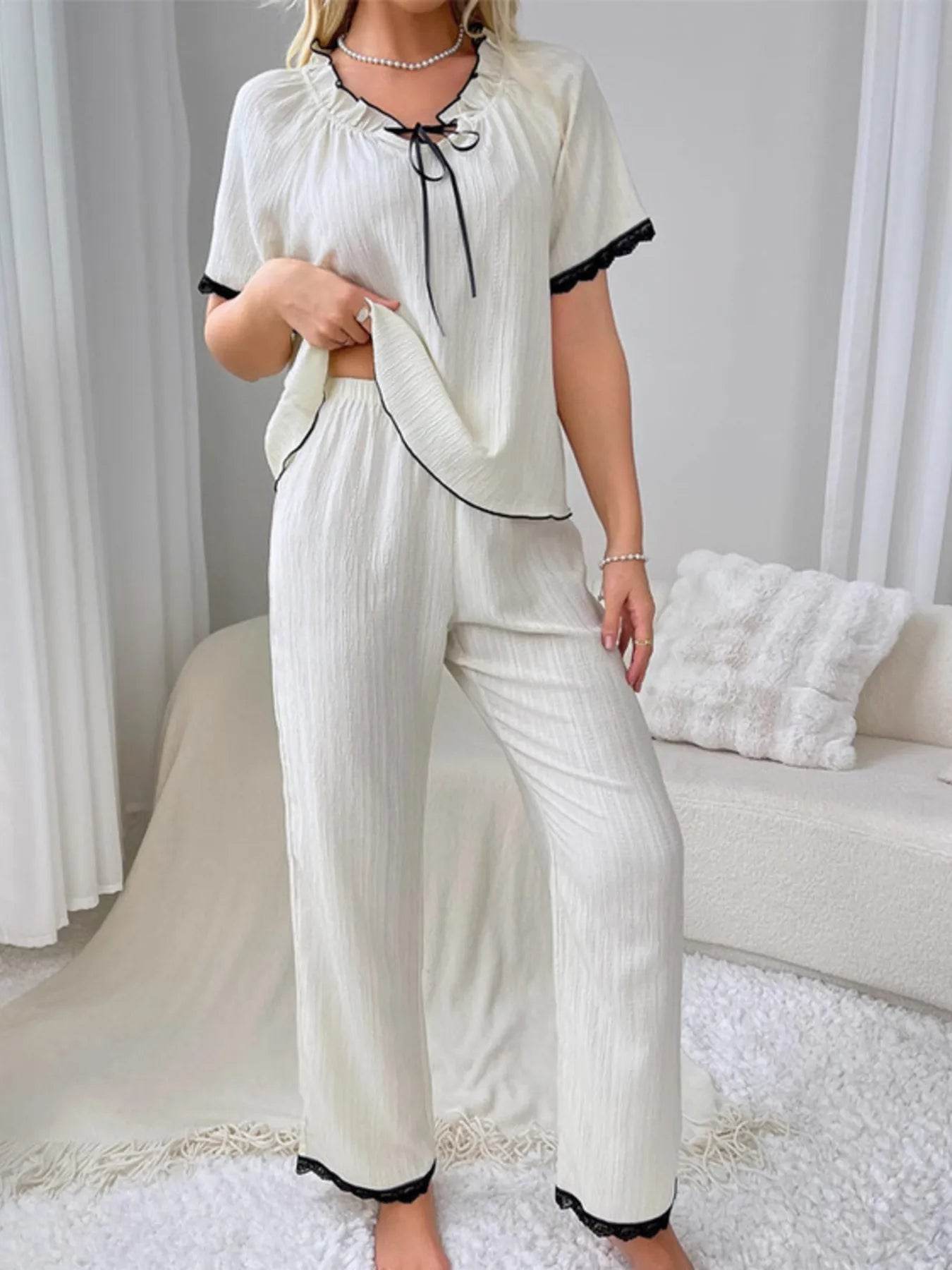 Contrast Trim Short Sleeve Top and Pants Set