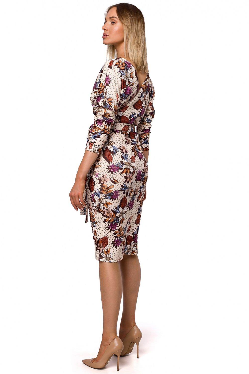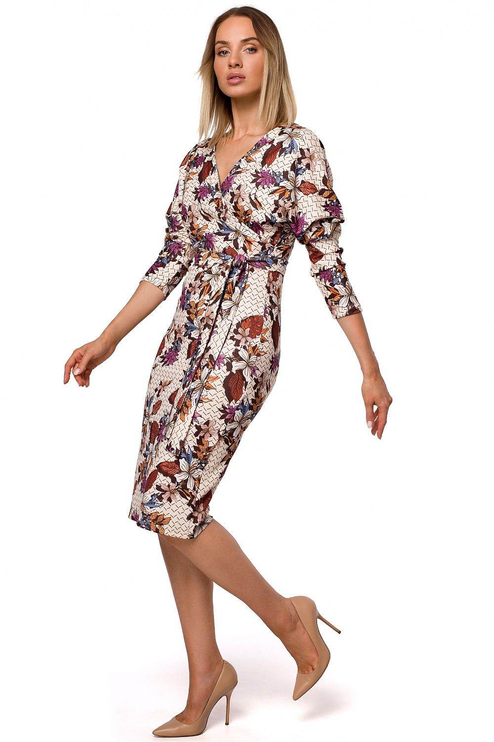 Printed Knit Wrap Dress with Belted Waist and Fitted Skirt