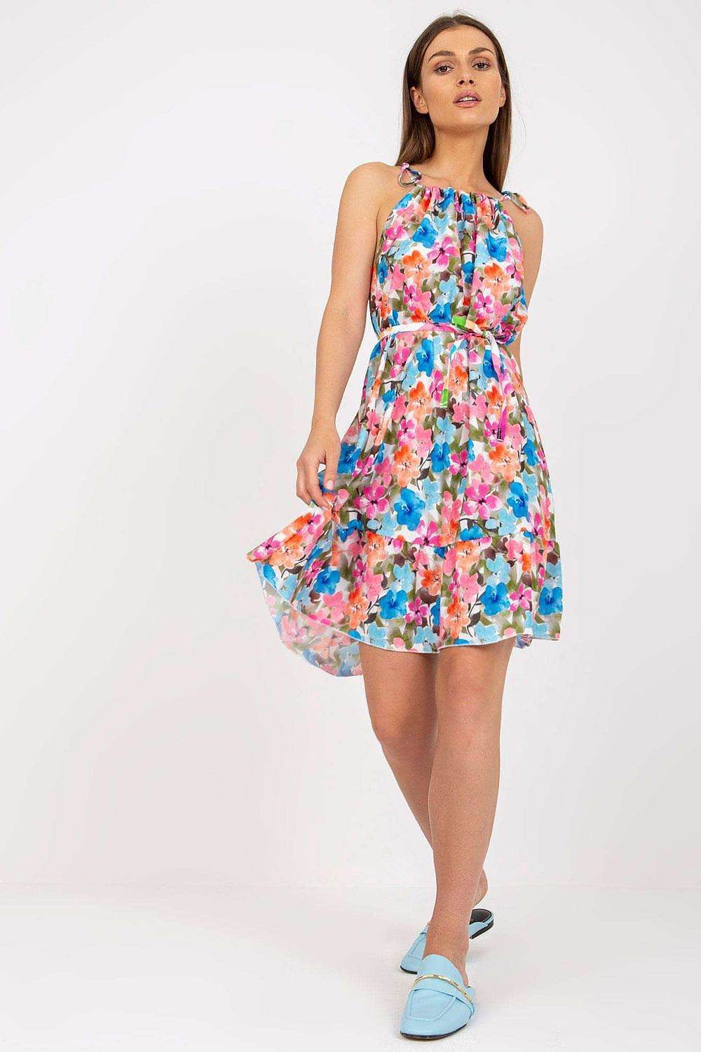 Summer dress made of fabric with a colorful pattern. Dress with tied straps. Tie at the waist, ruffle at the... Read more
