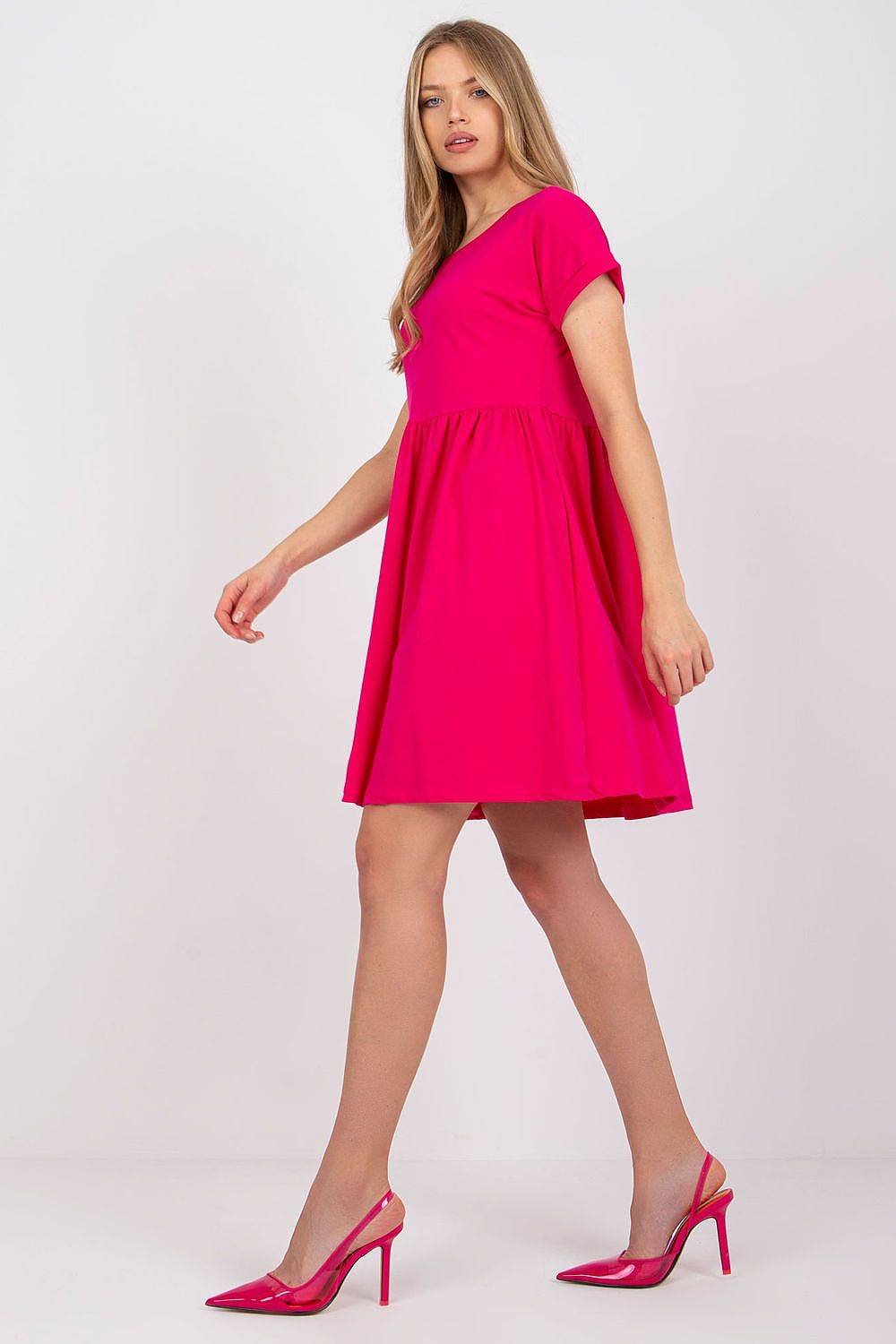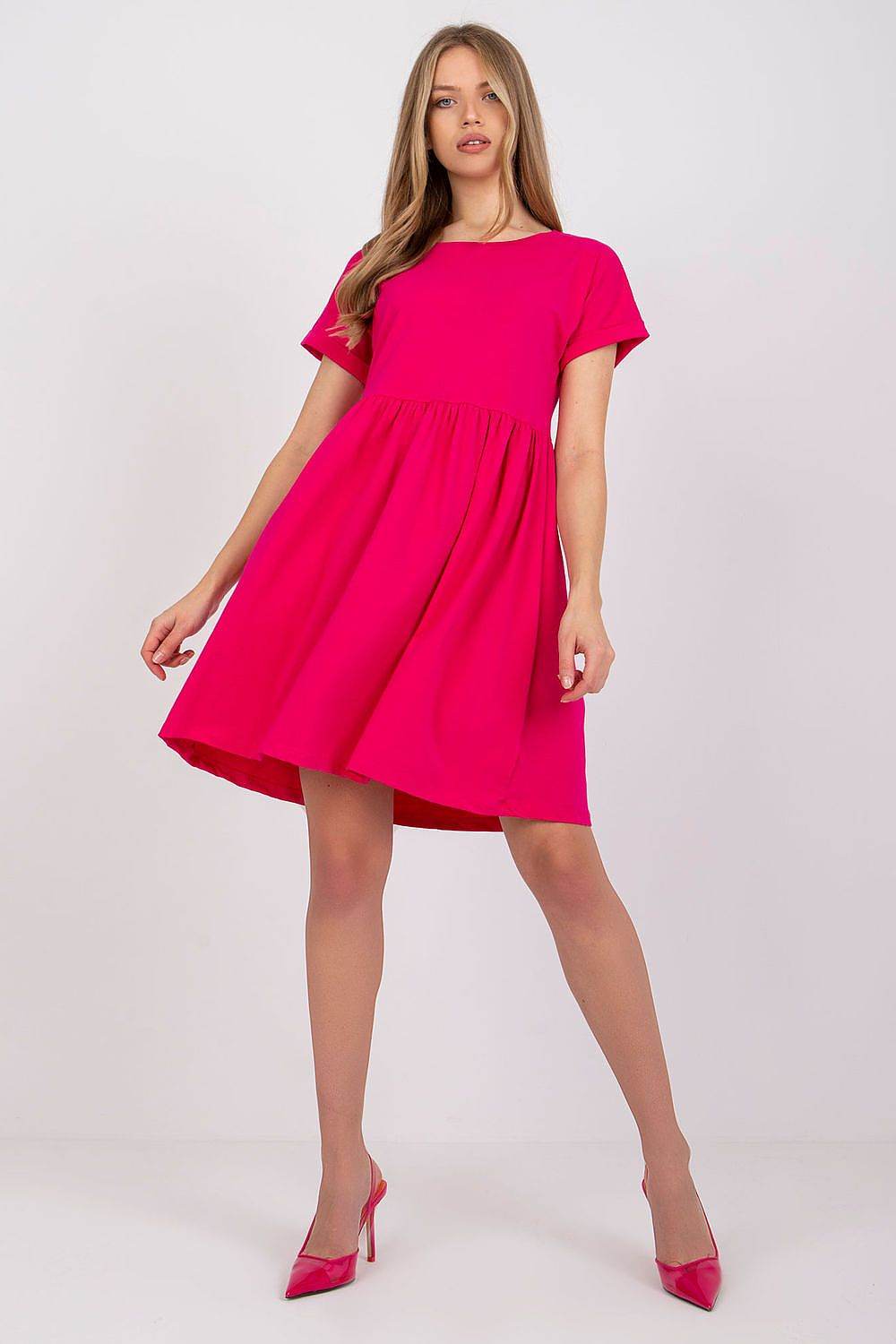This everyday dress, unbuttoned, is a charming and comfortable option for a variety of everyday occasions, perfect for both daytime and work. Its flared cut gives the dress lightness and girlish charm, making it not only comfortable, but also very stylish. With no fastening, this dress provides easy dressing and comfortable wearing, making it practical for everyday use. The dominant pattern is a plain material, making the dress versatile and easy to match with different accessories or shoes. The dominant material is cotton, which means that the dress is kind to the skin, breathable and pleasant to wear, ideal especially on warm days. The dress's pre-knee length makes it suitable for a wide variety of occasions, both more casual and work-related. Short sleeves and a round neckline add subtle charm to the dress and make it suitable for many figures. This flared dress is an excellent option for women who appreciate comfort and lightness in one. Its simple yet charming cut makes it an ideal option for everyday styling that combines casualness and girlish grace.