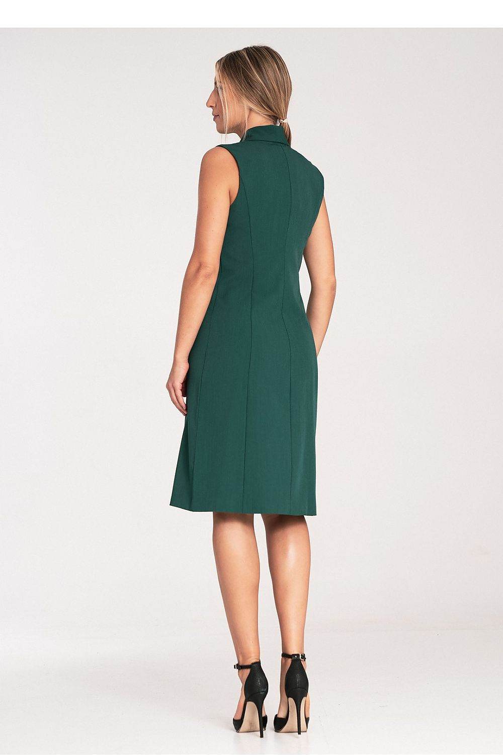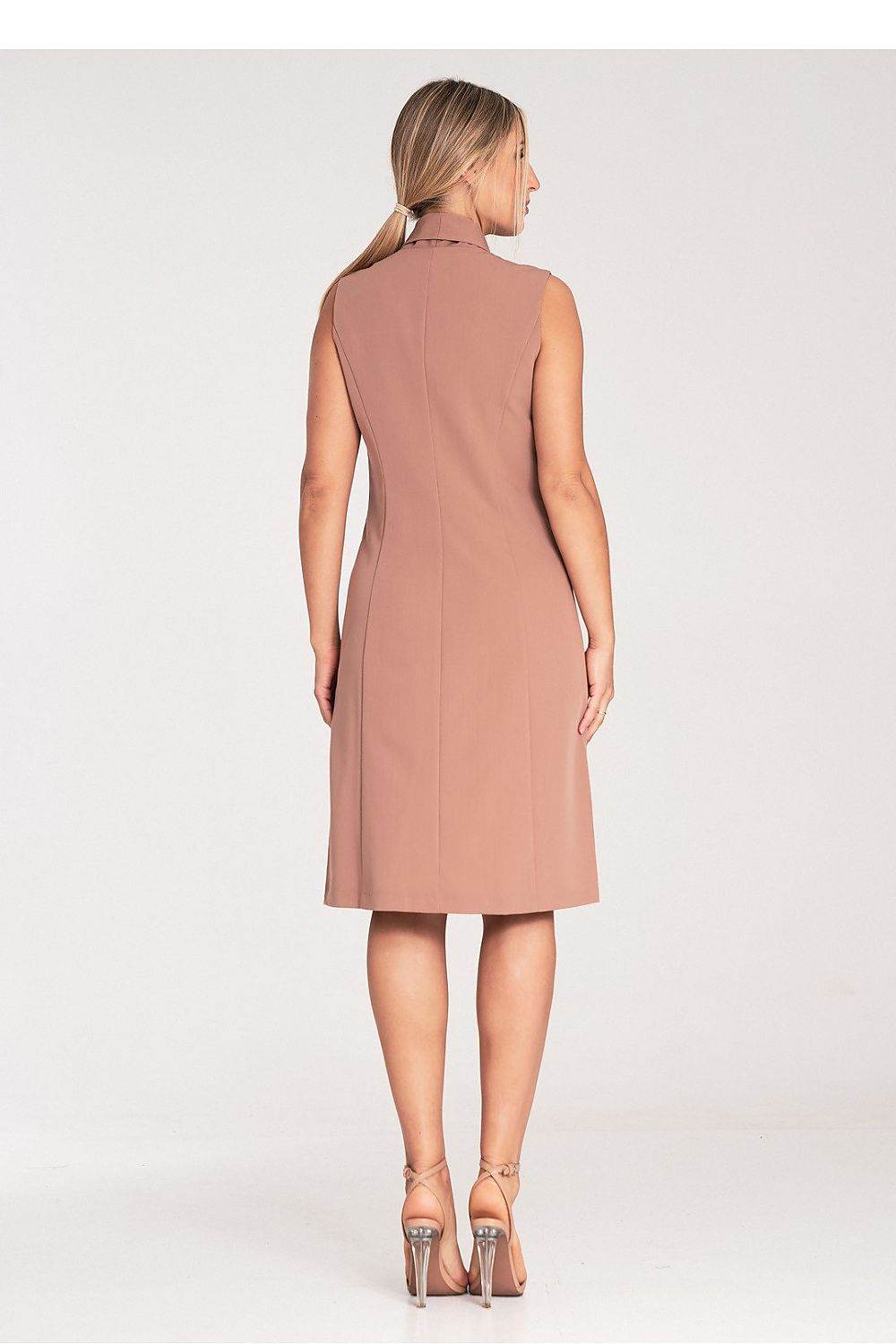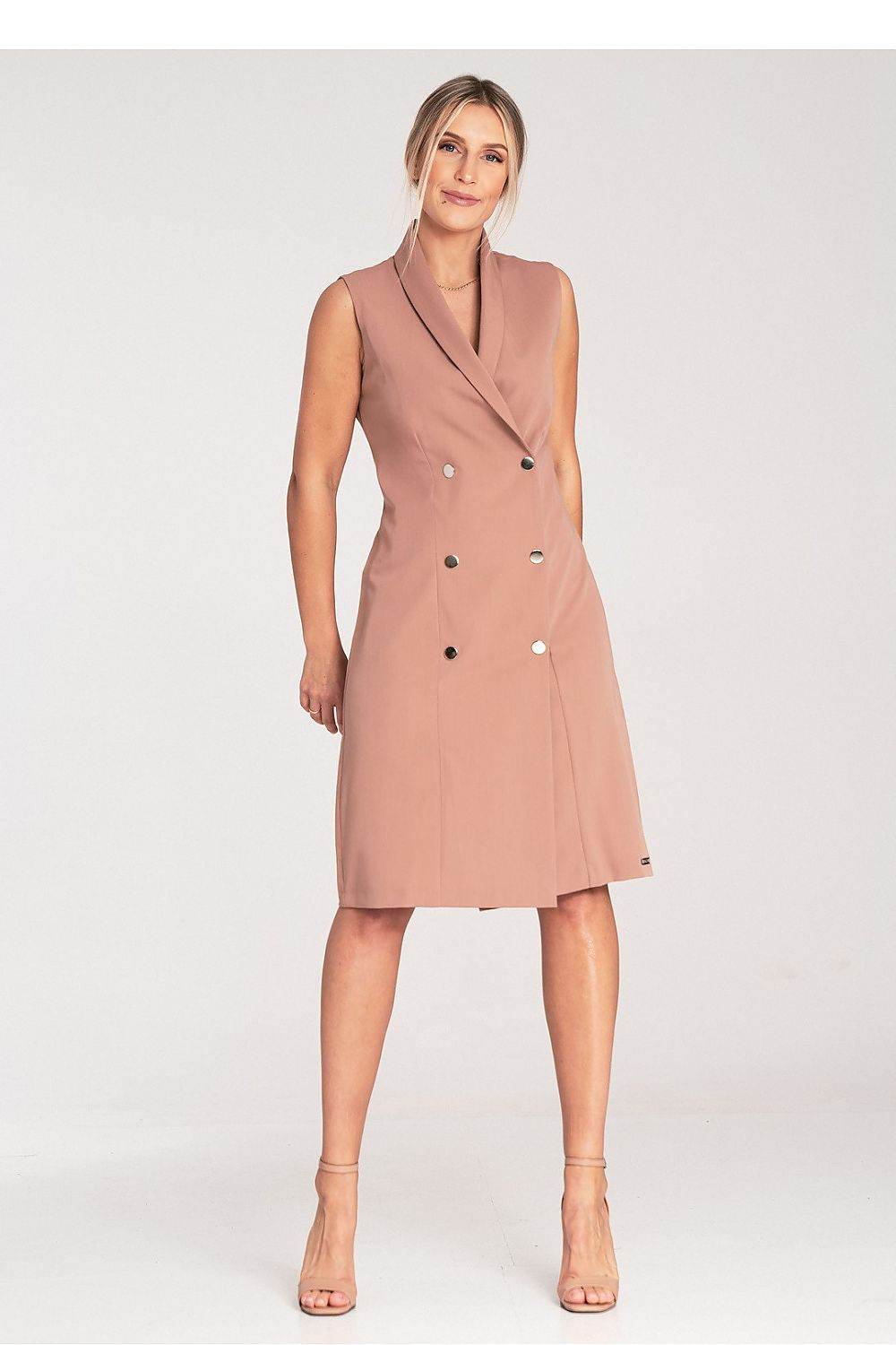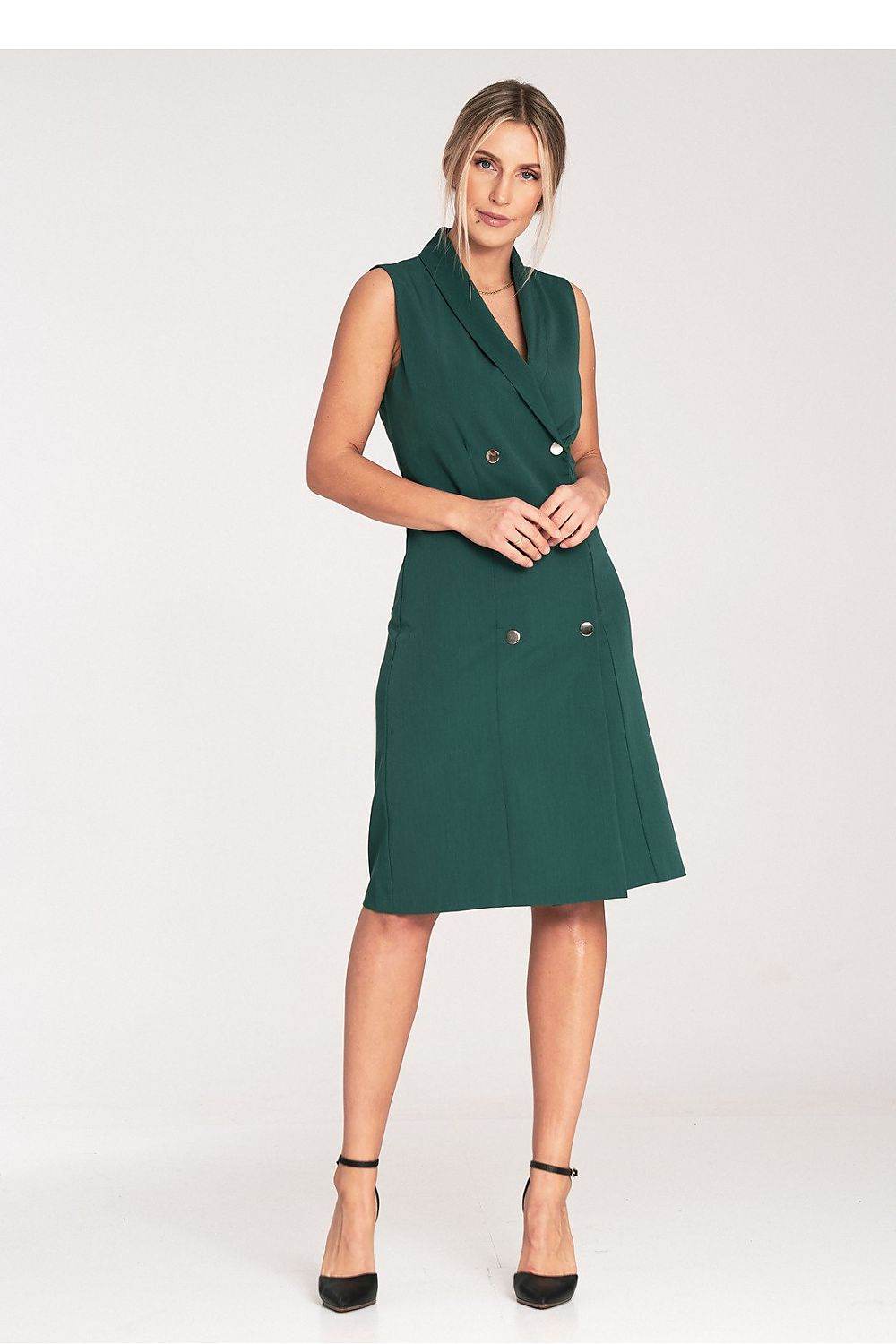 Elegant sleeveless midi dress. Narrow lapels at the front, envelope neckline, double-breasted closure with large decorative snaps. The dress is... Read more