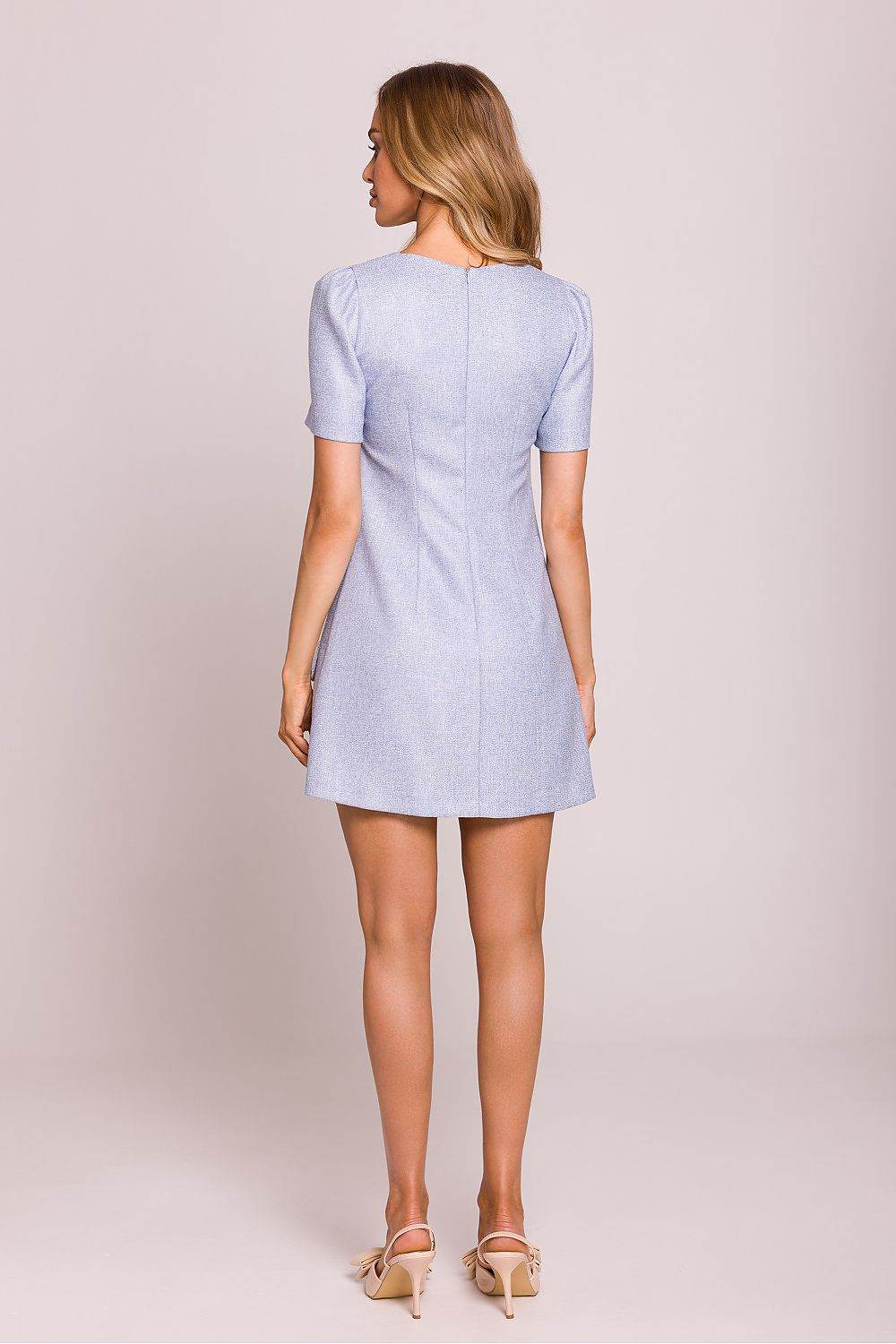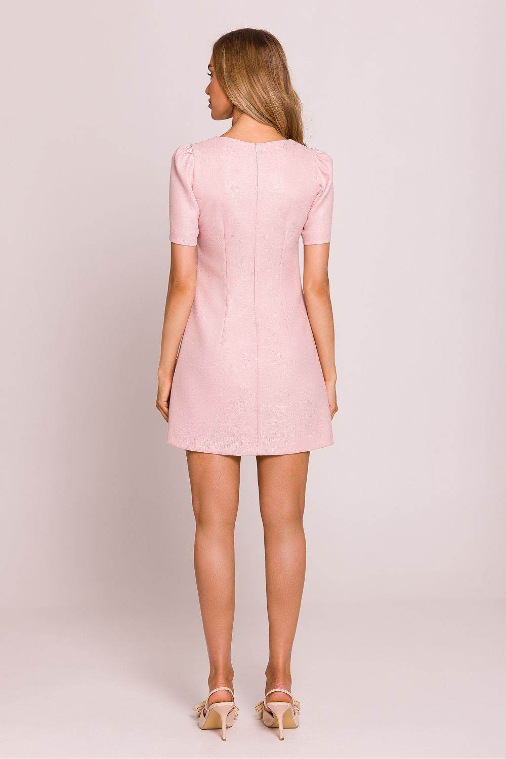 Trapeze Mini Dress with Puffy Sleeves and Heart-Shaped Gold Buttons