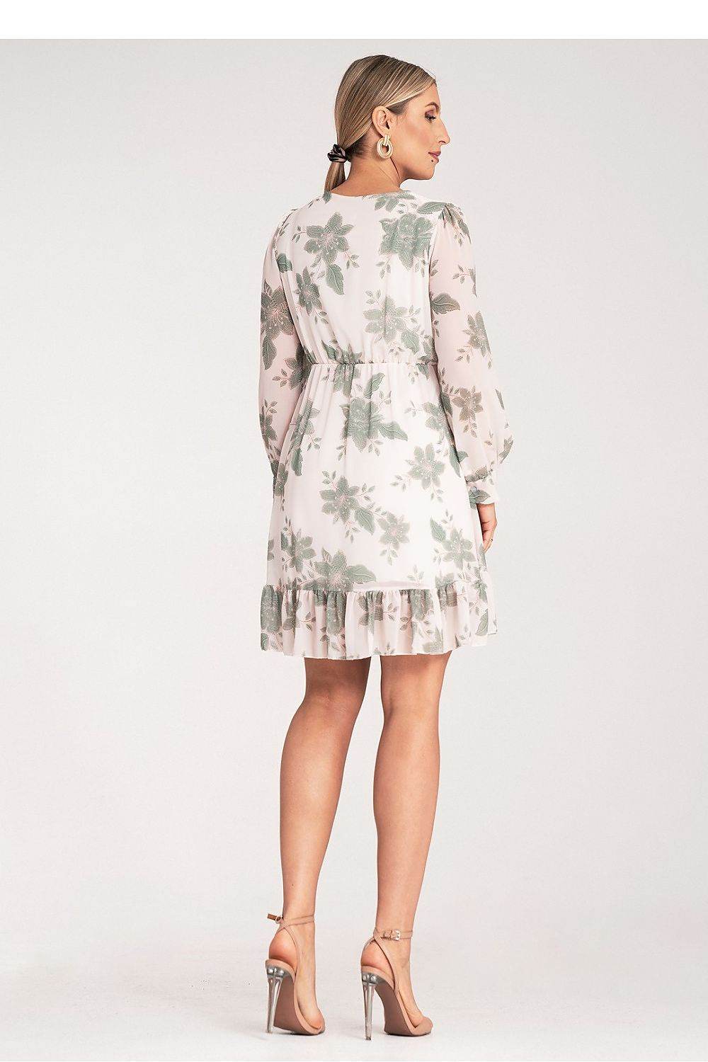 Floral Midi Dress with Wrap Neckline, Buttoned Long Sleeves & Elastic Waist