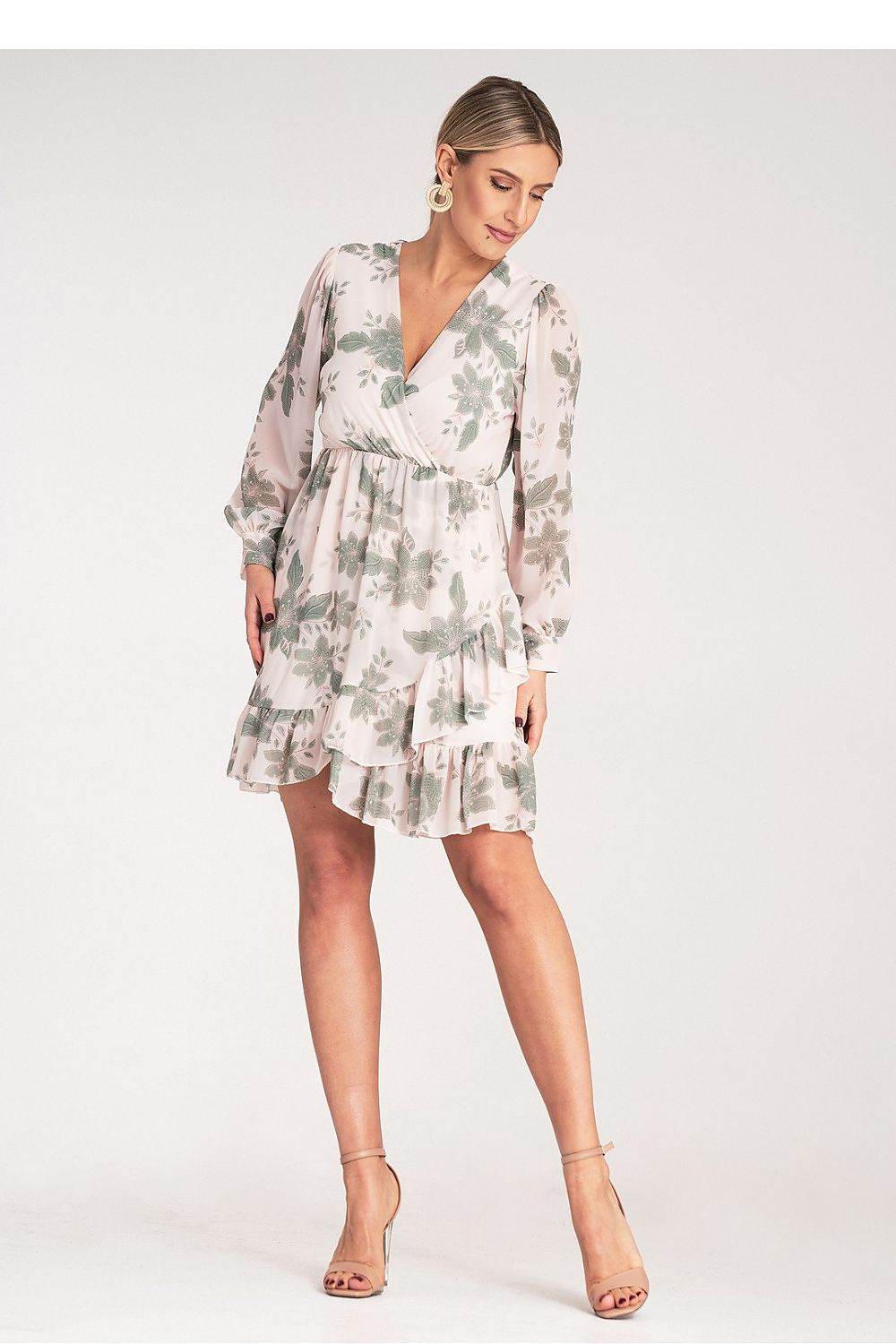 Airy midi dress in a floral pattern with a wrap neckline and long sleeves fastened with buttons. The elastic waist... Read more