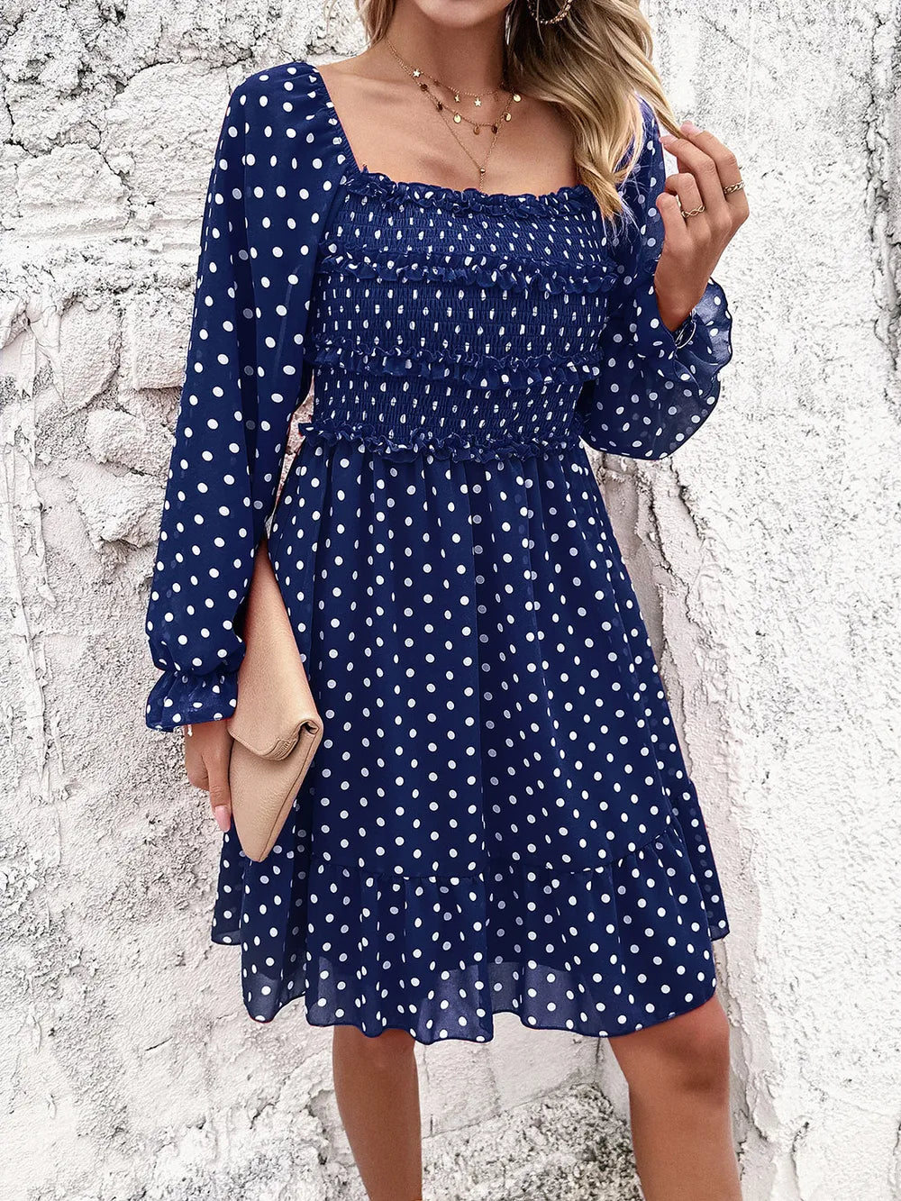 Features: Smocked Sheer: Opaque Stretch: Slightly stretchy Body: Not lined Material composition: 100% polyester Care instructions: Machine wash cold. Tumble... Read more