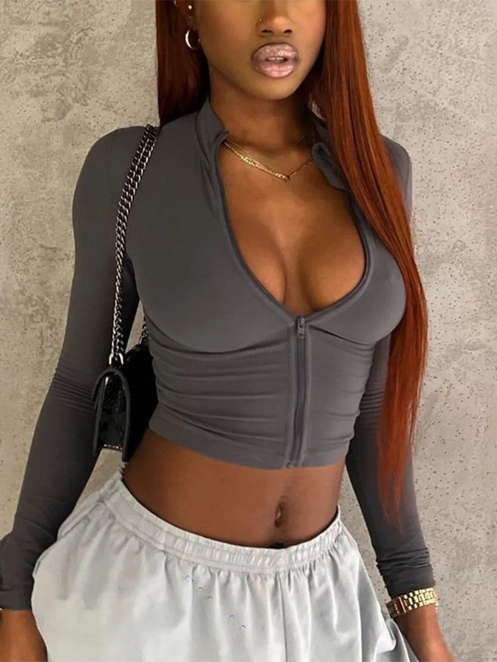 Devine Zip Up Long Sleeve Cropped Top