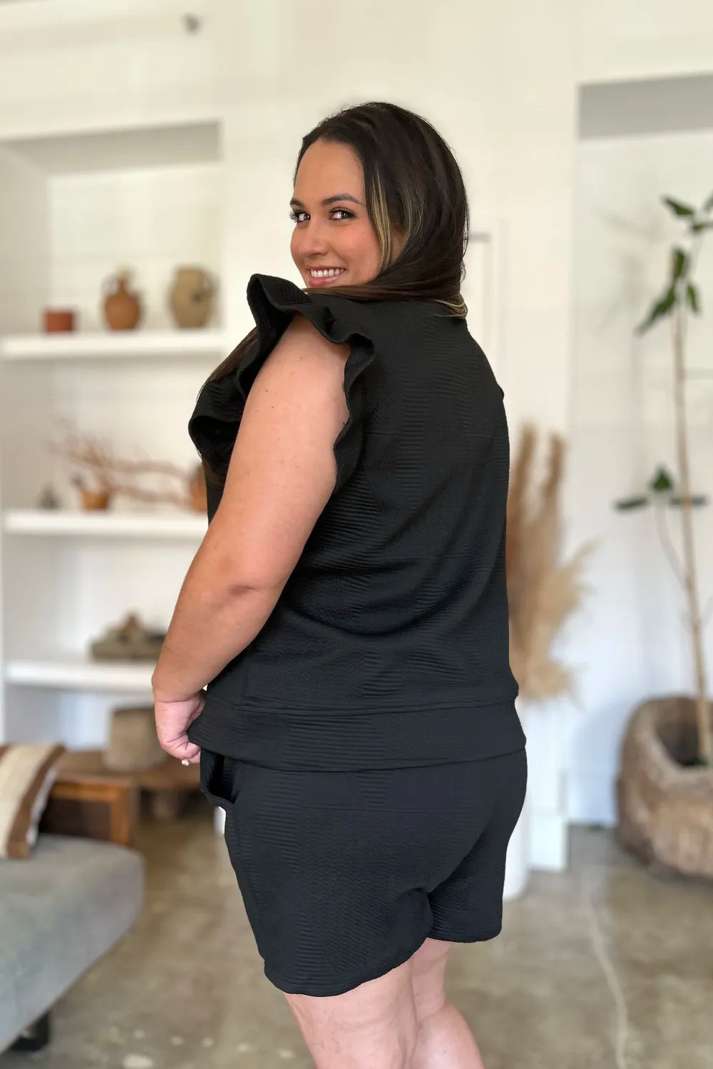 Double Take Full Size Texture Flounce Sleeve Top and Shorts Set