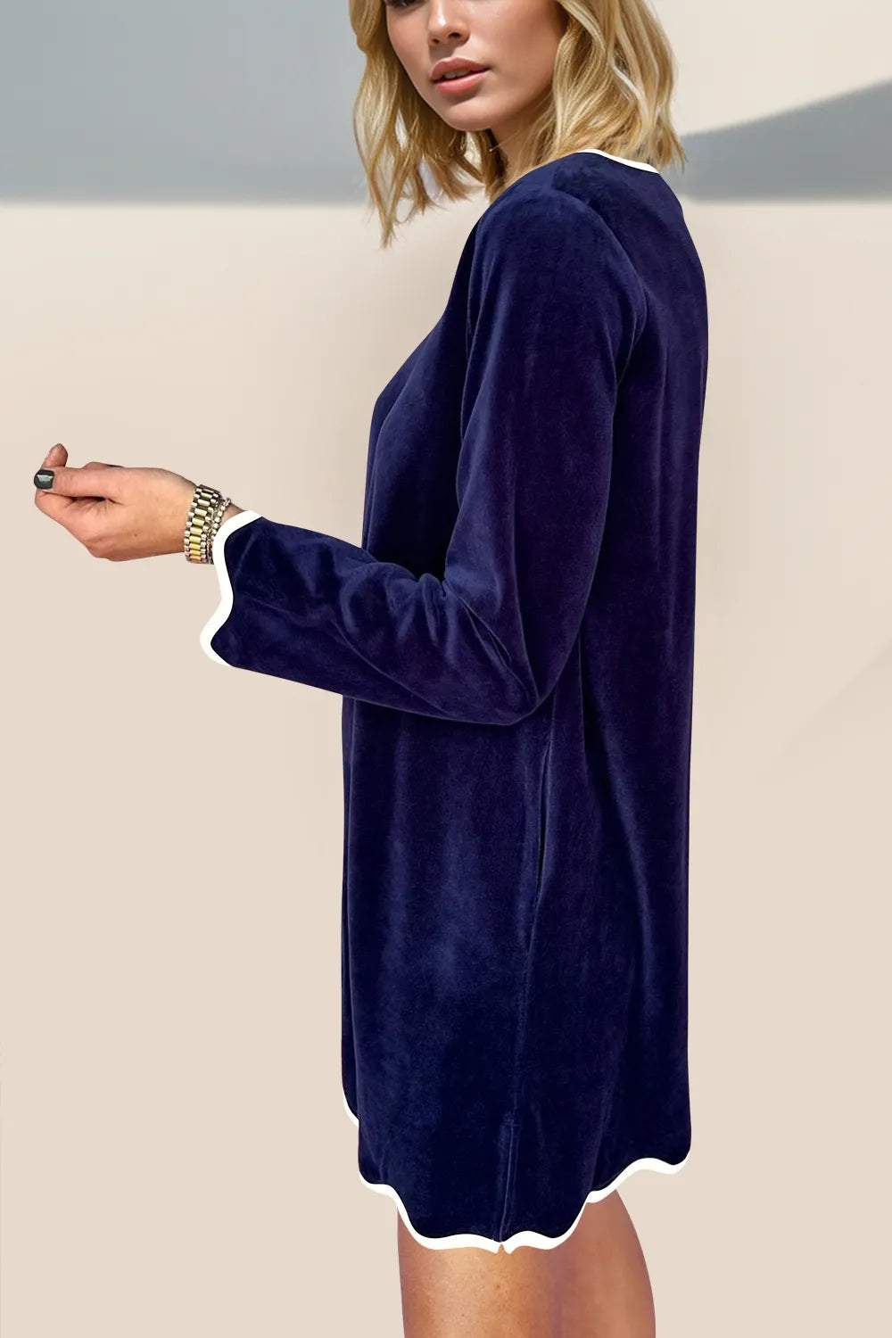 Double Take Wave Contrast Trim V-Neck Zip Up Long Sleeve Mini Dress