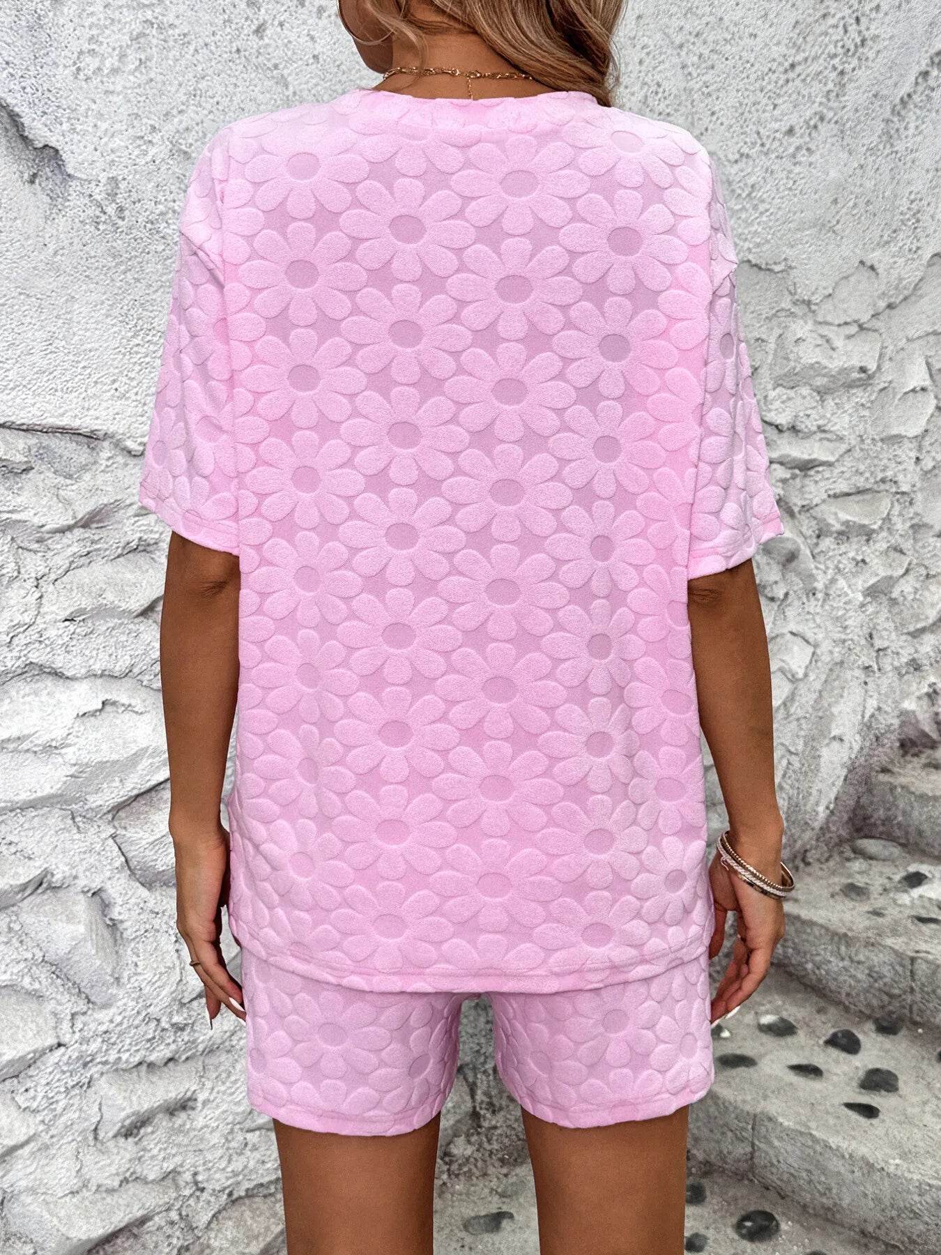 Flower Round Neck Top and Shorts Lounge Set